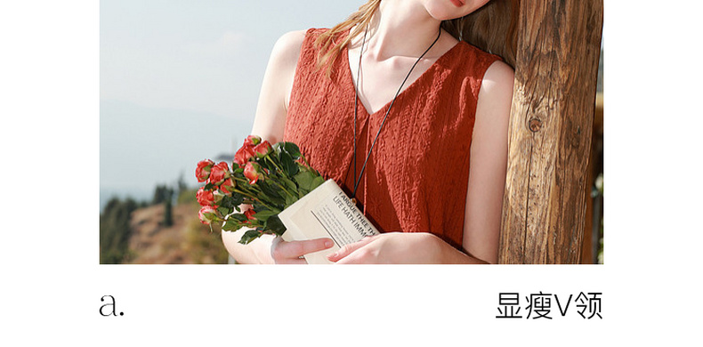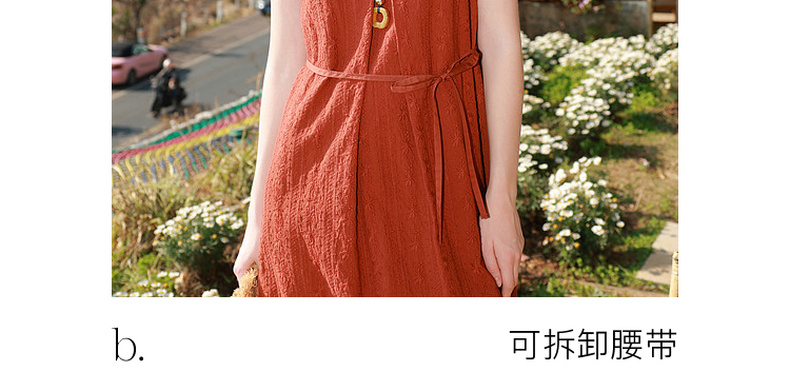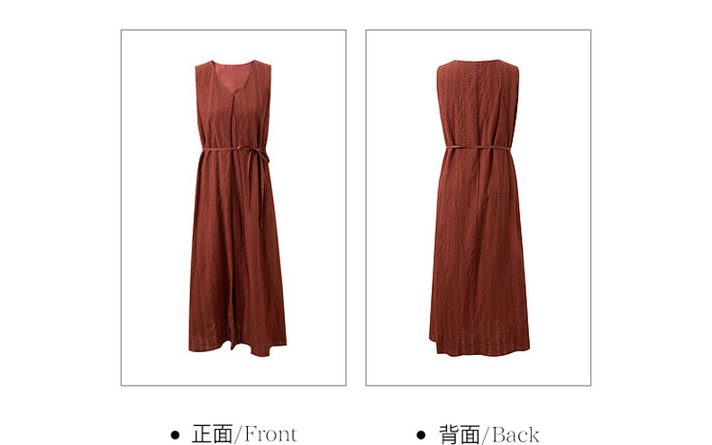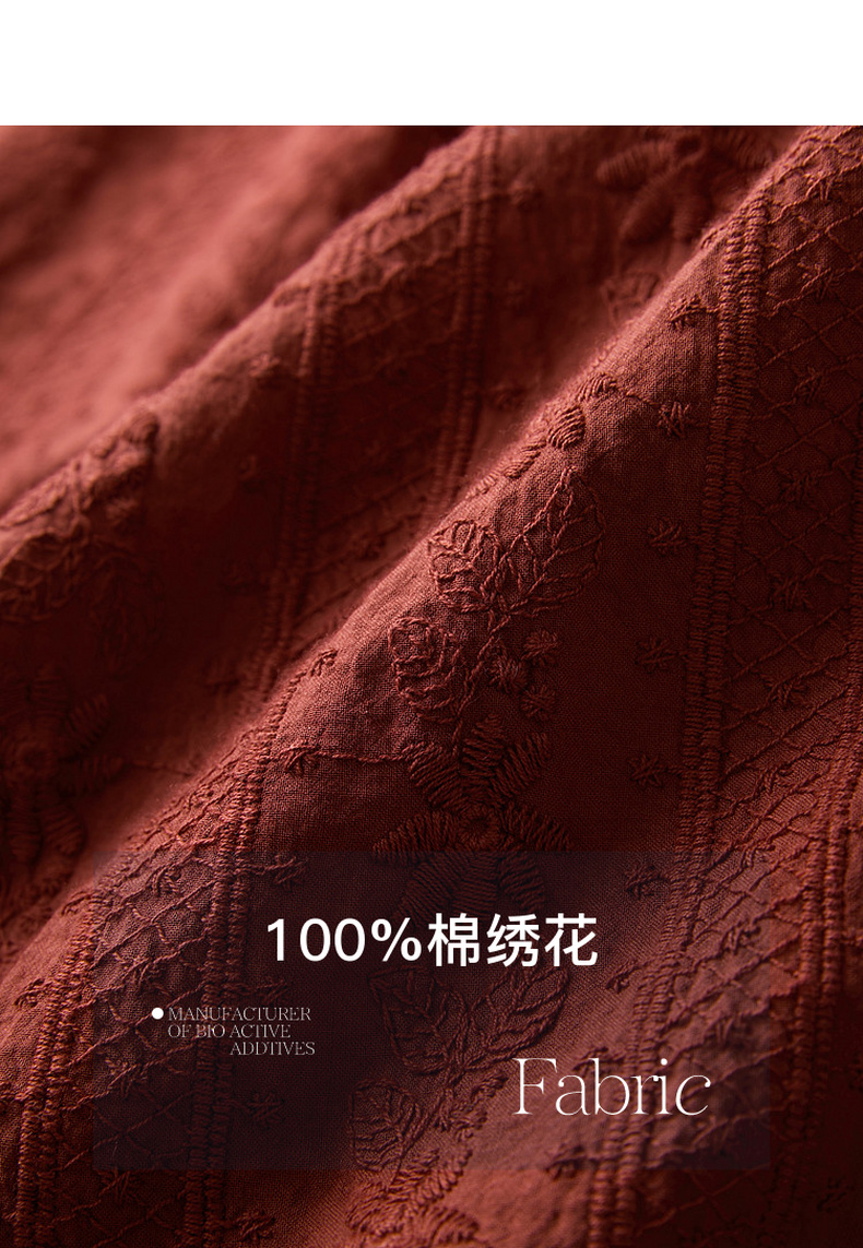 【100棉】三彩2026夏季新款绣花连衣裙无袖V领宽松A字裙长裙M