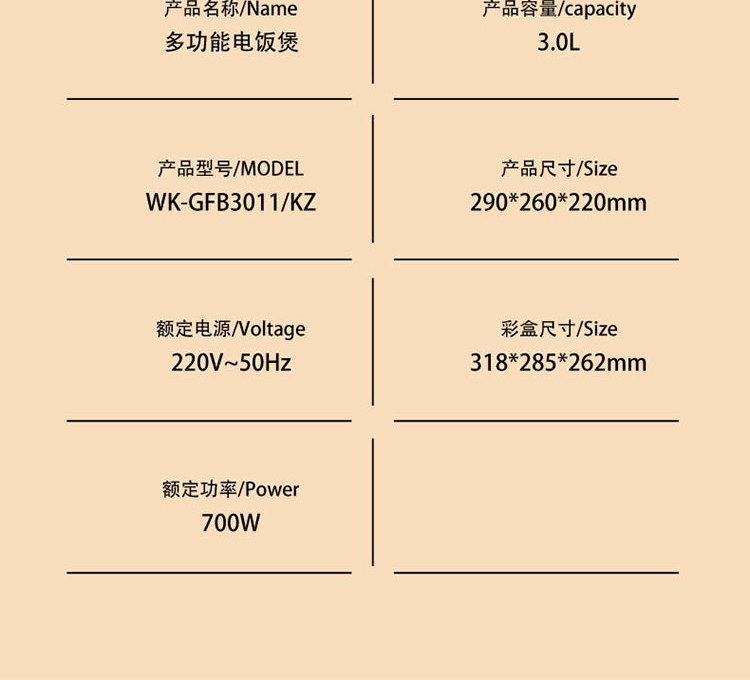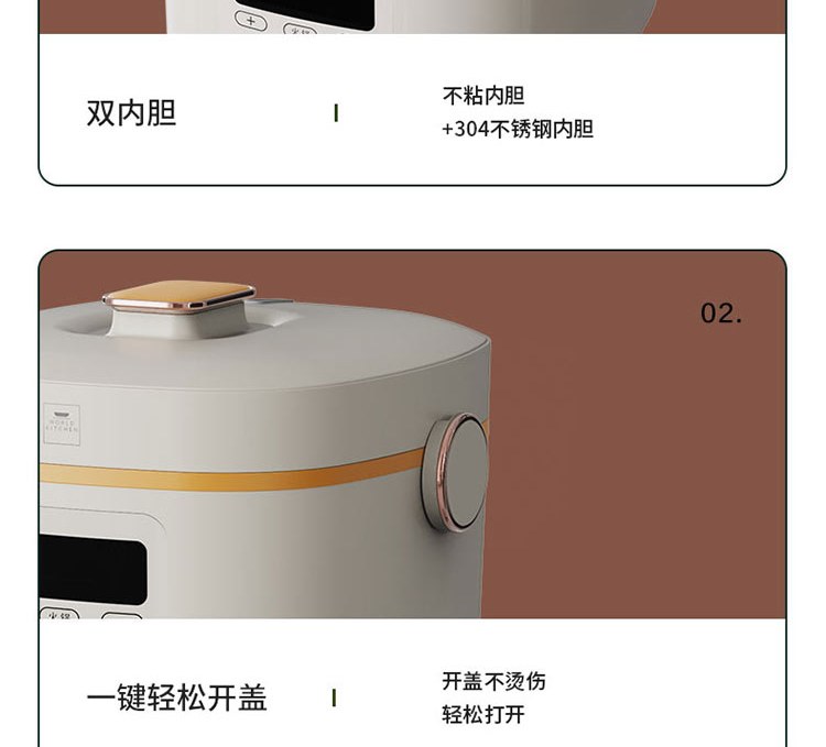 World Kitchen 多功能智能电饭煲电饭锅家用3L米饭锅4H预约蒸煮 电饭煲 WK-GFB3011/KZ