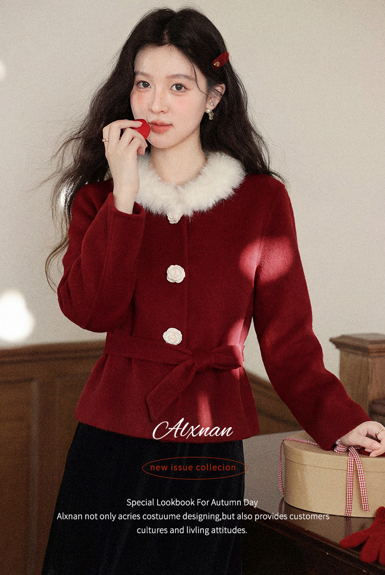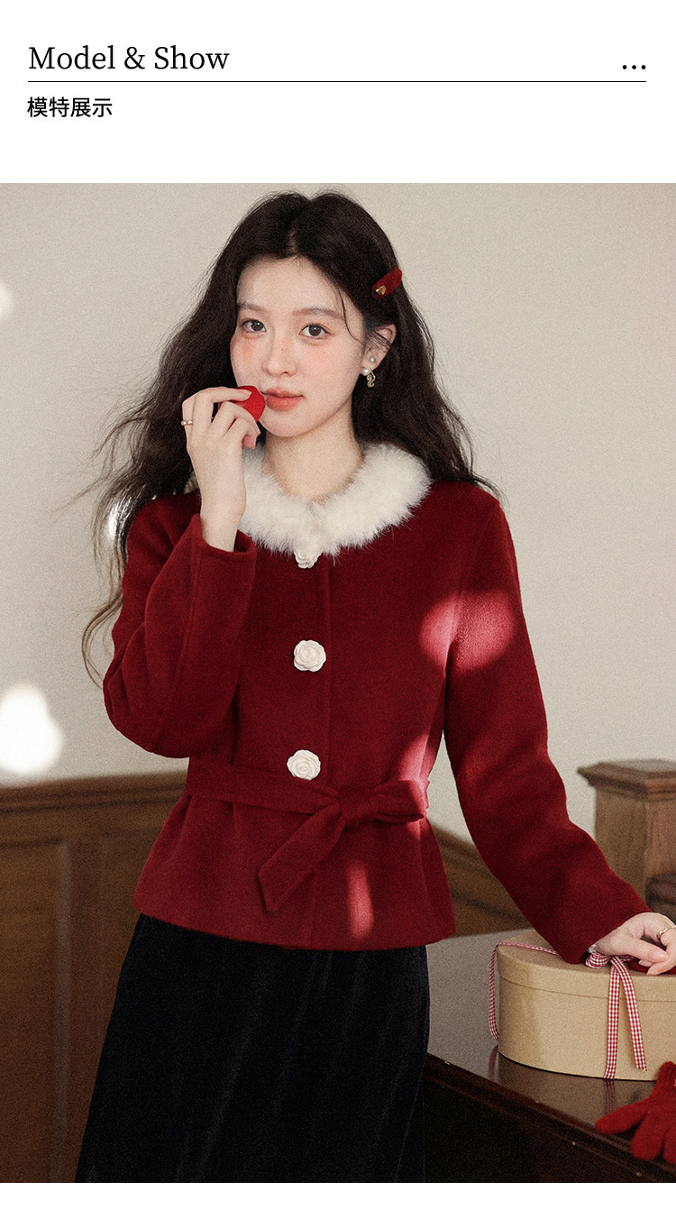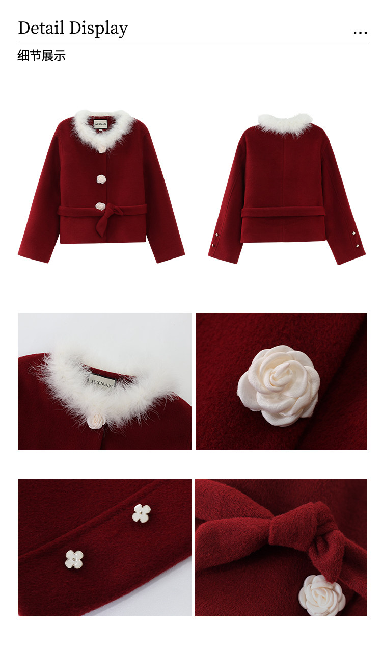 鹿向南「落日玫瑰」红色夹棉短款外套女春季新款小众设计感上衣