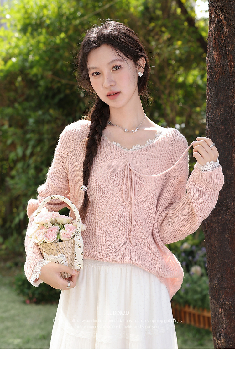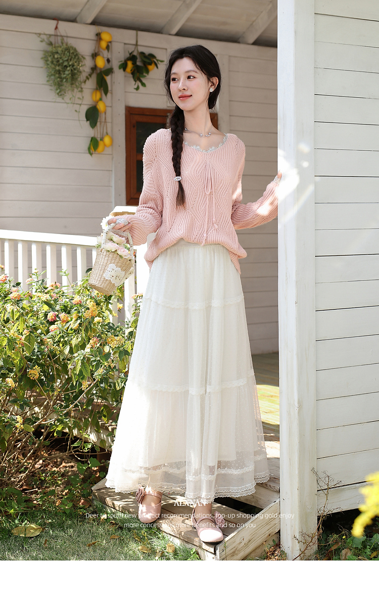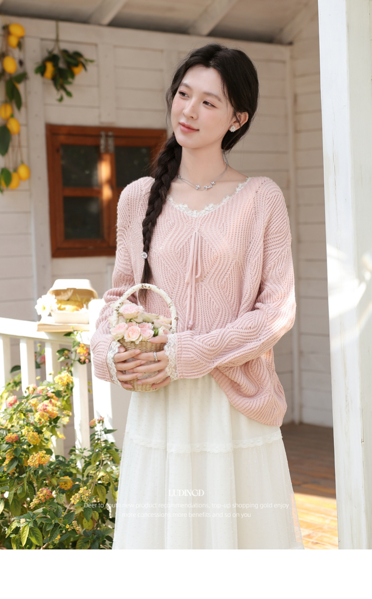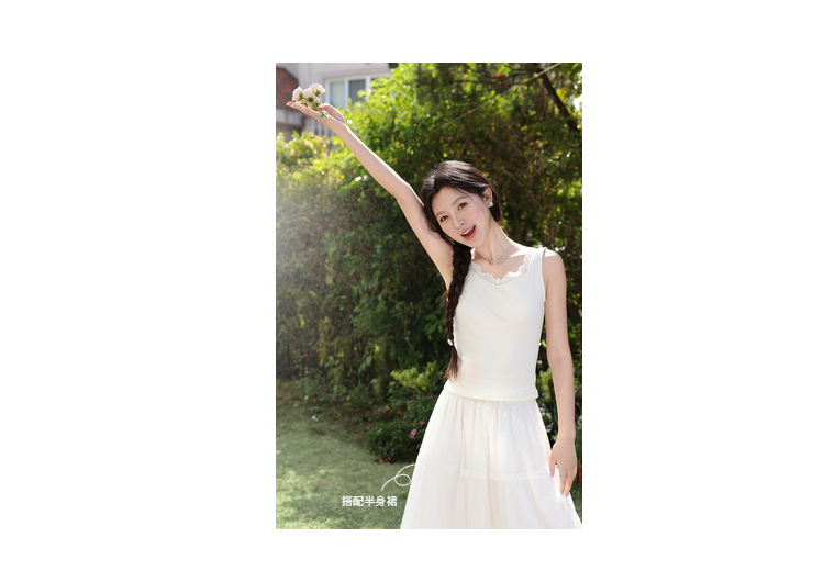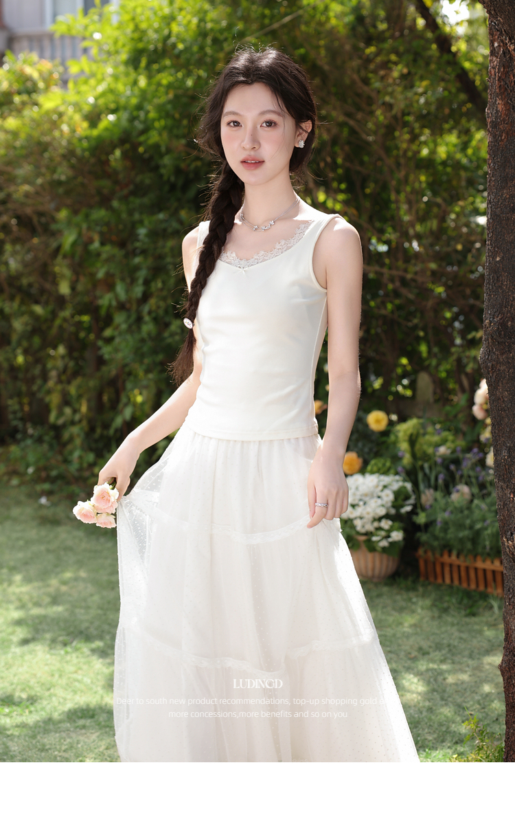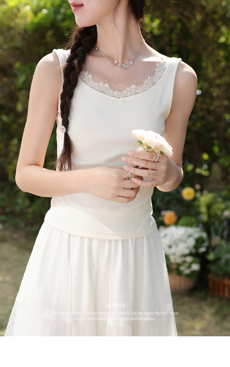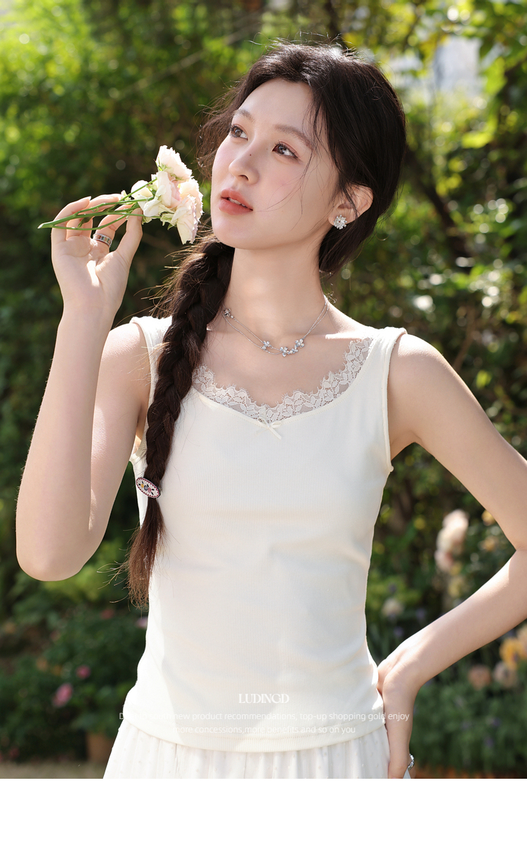 鹿向南「晴肩织夏」杏色蕾丝拼接吊带背心女夏季修身无袖内搭上衣