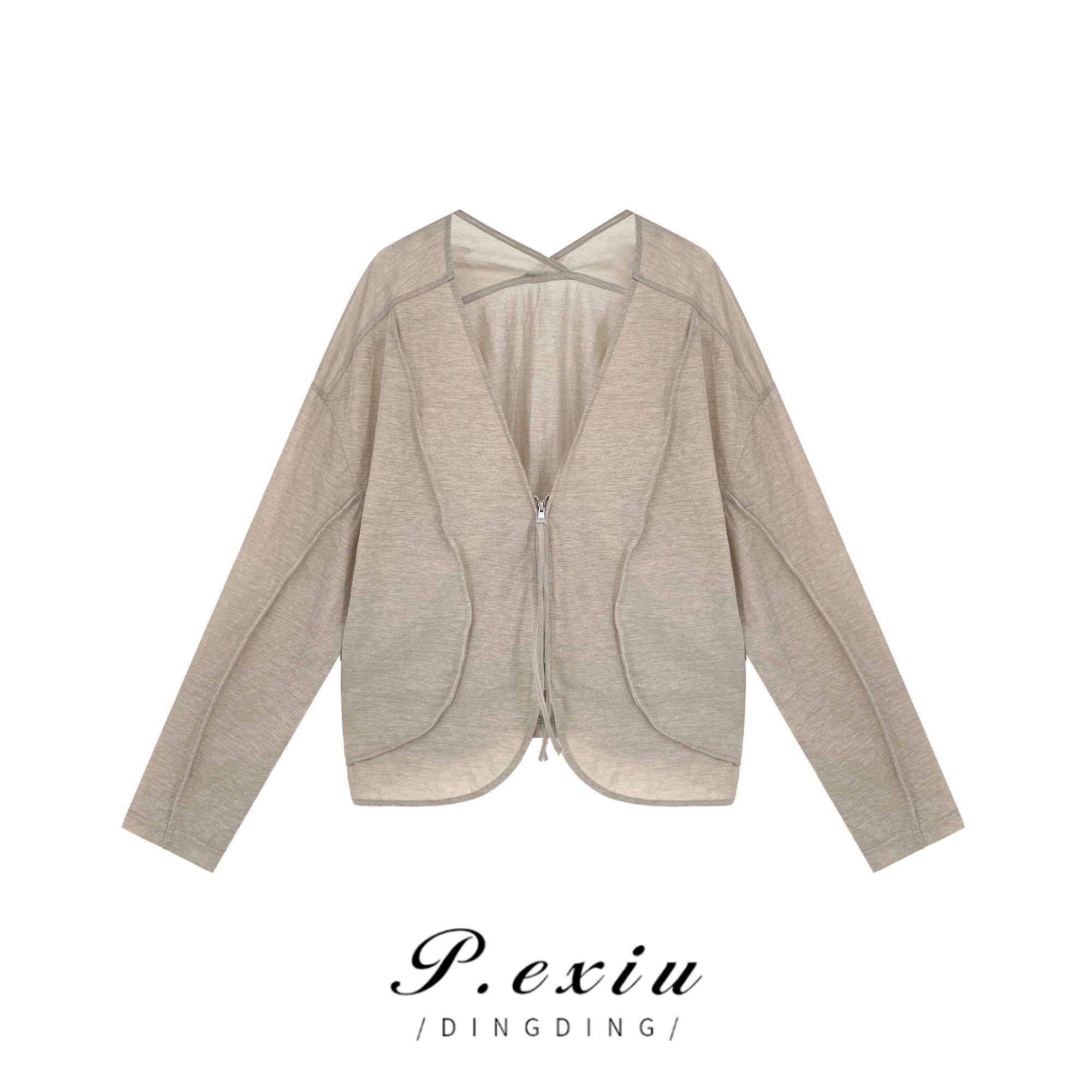 潘依绣设计感V领时尚百搭气质线上长袖外套 K0723