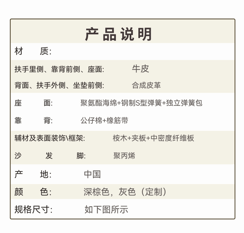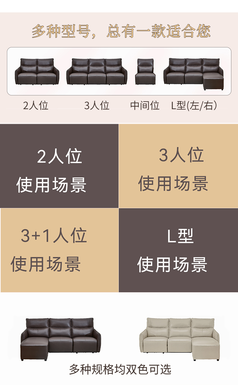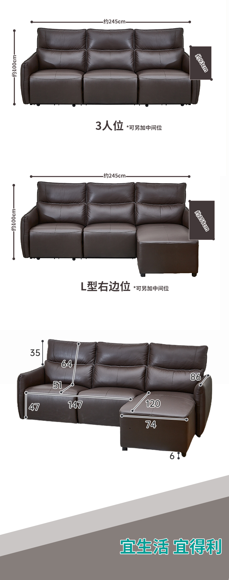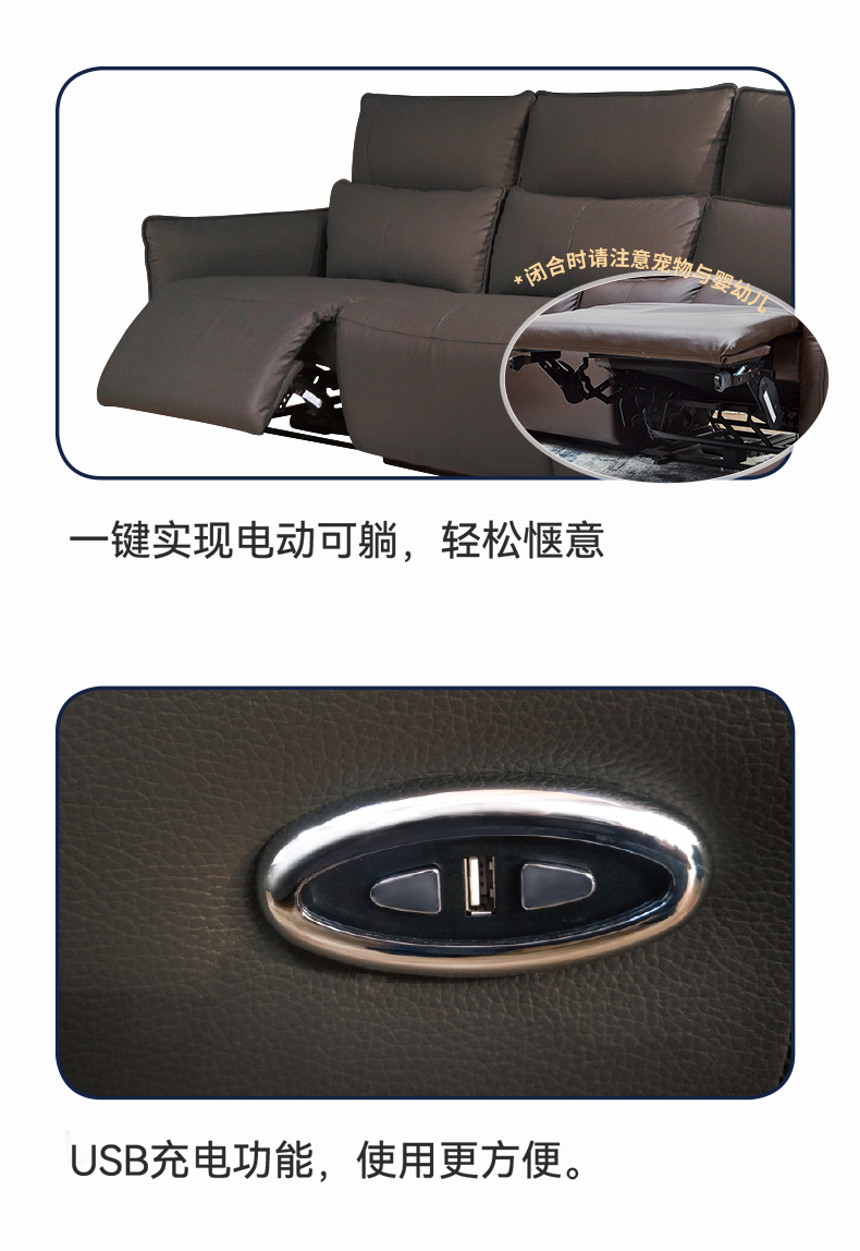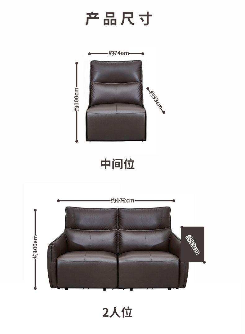 【家具】2人位电动皮沙发 沃夫特2 深棕色/灰色