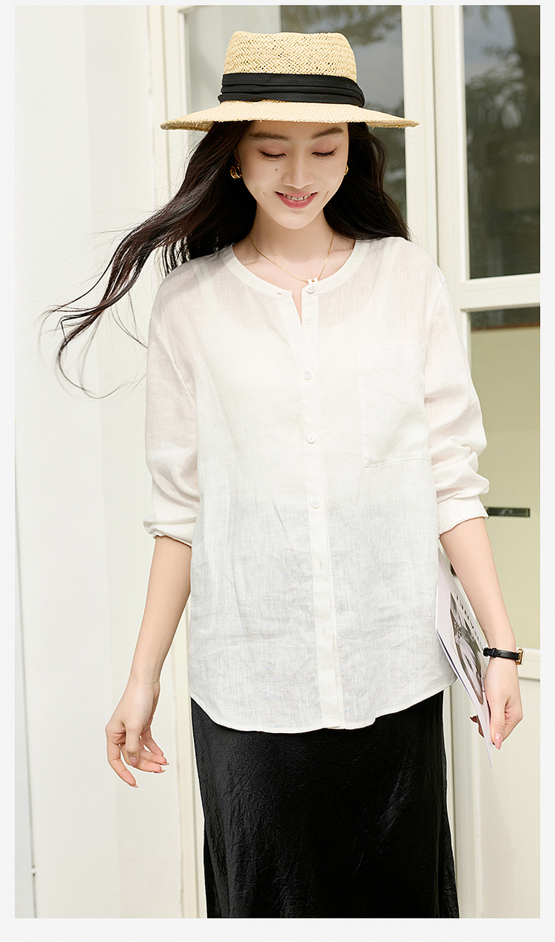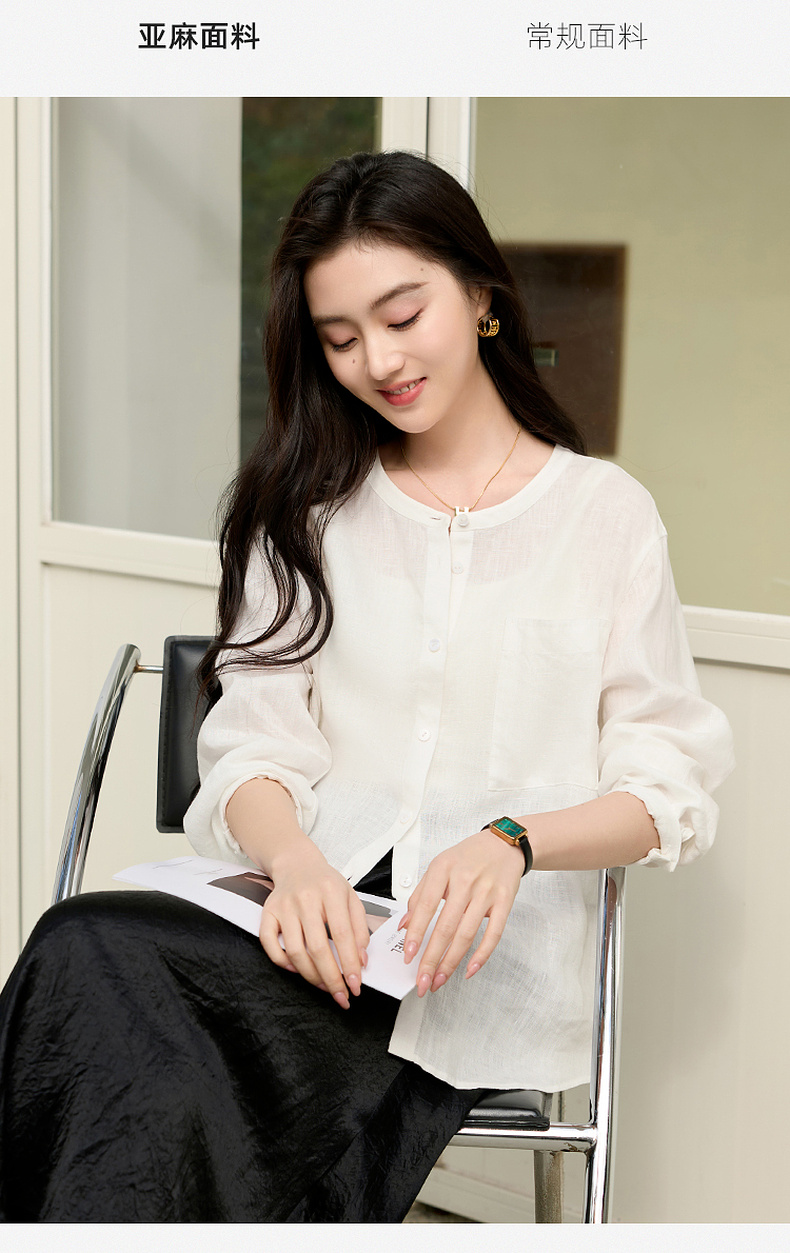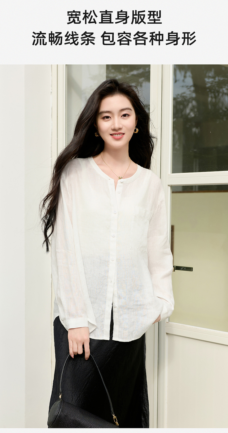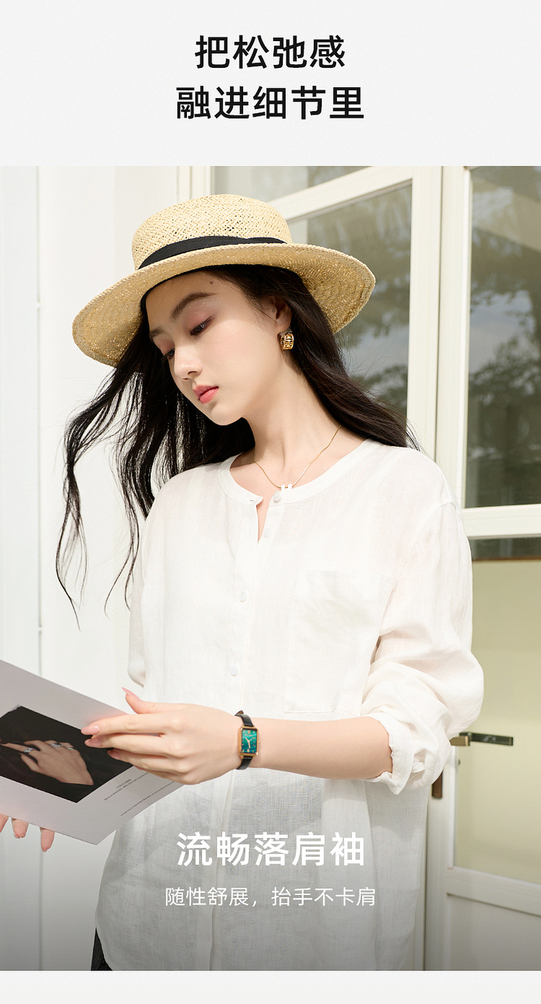 【100亚麻】三彩2026春季新款长袖衬衫衬衣宽松气质小衫通勤简约S