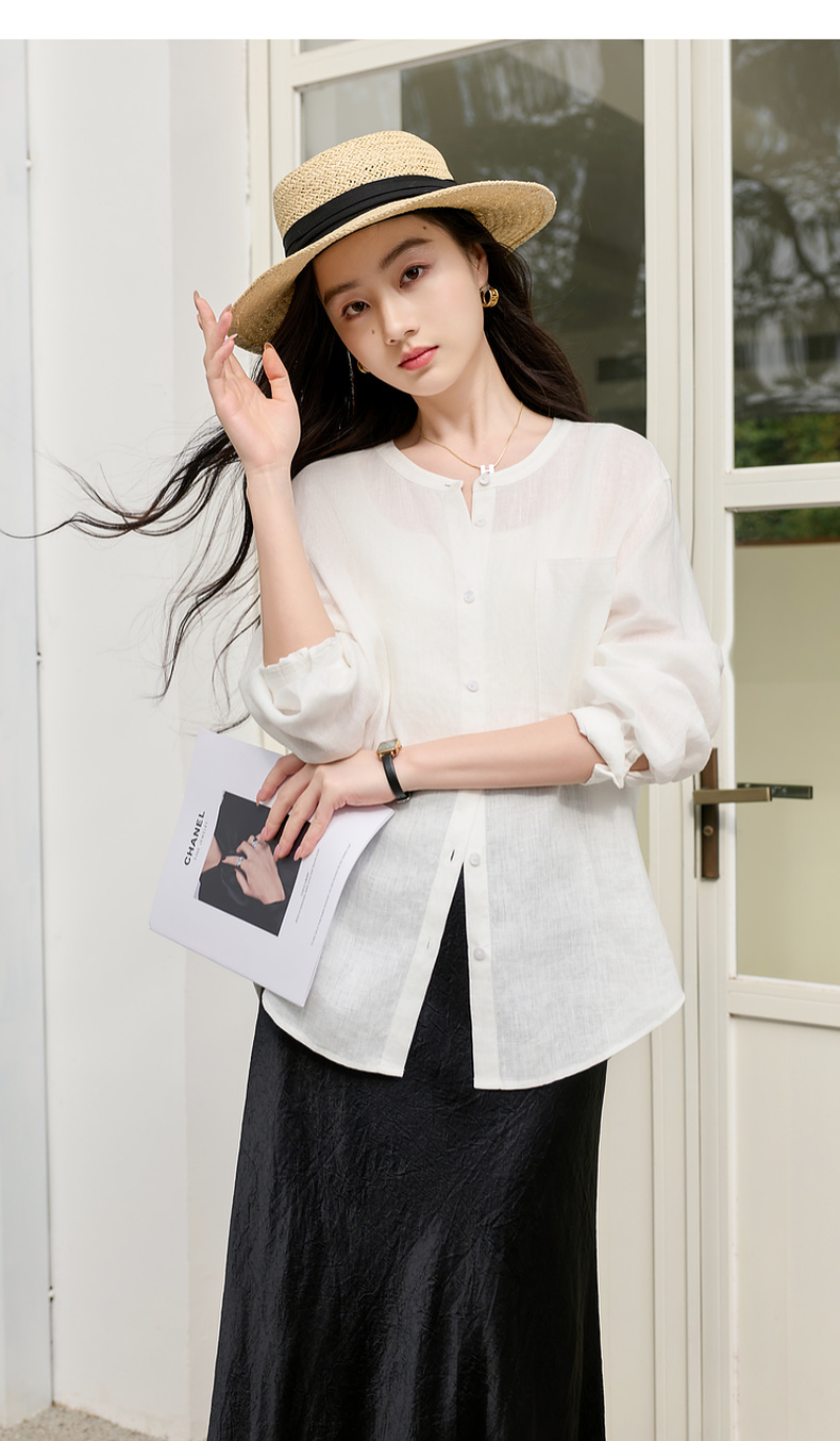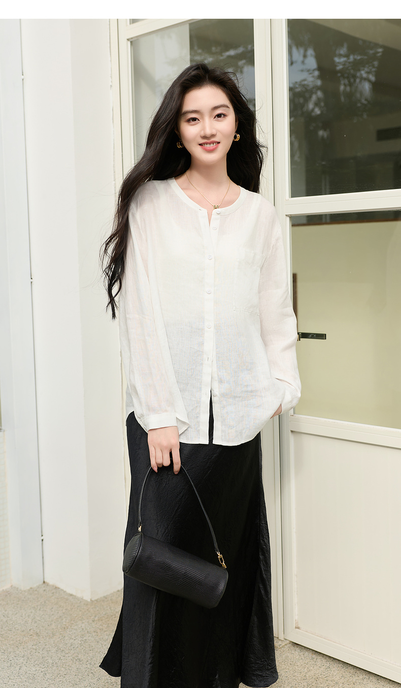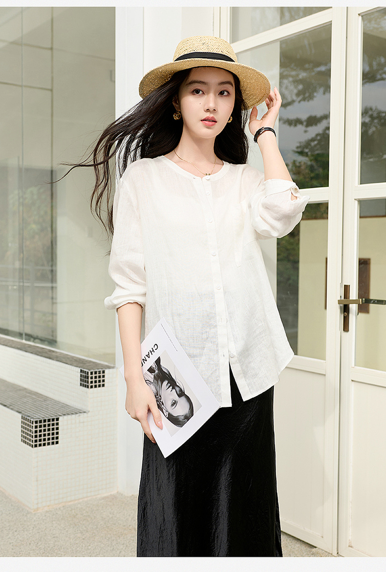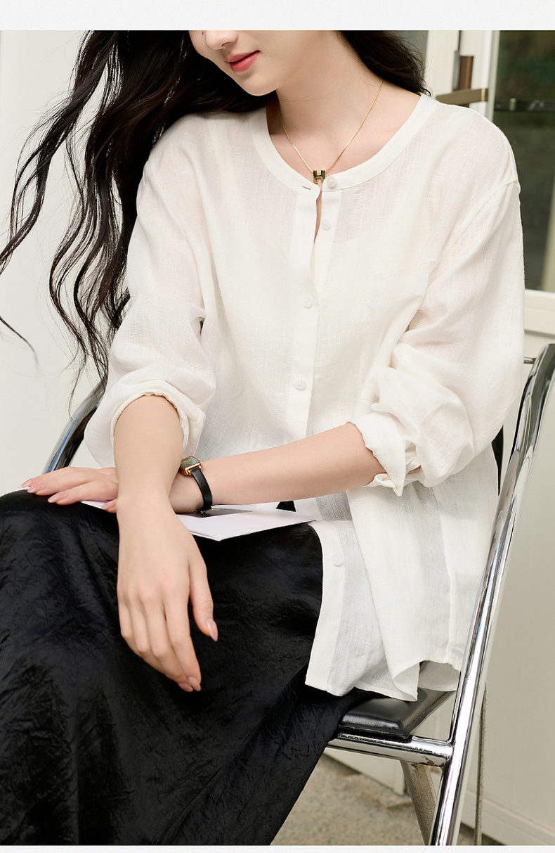【100亚麻】三彩2026春季新款长袖衬衫衬衣宽松气质小衫通勤简约S