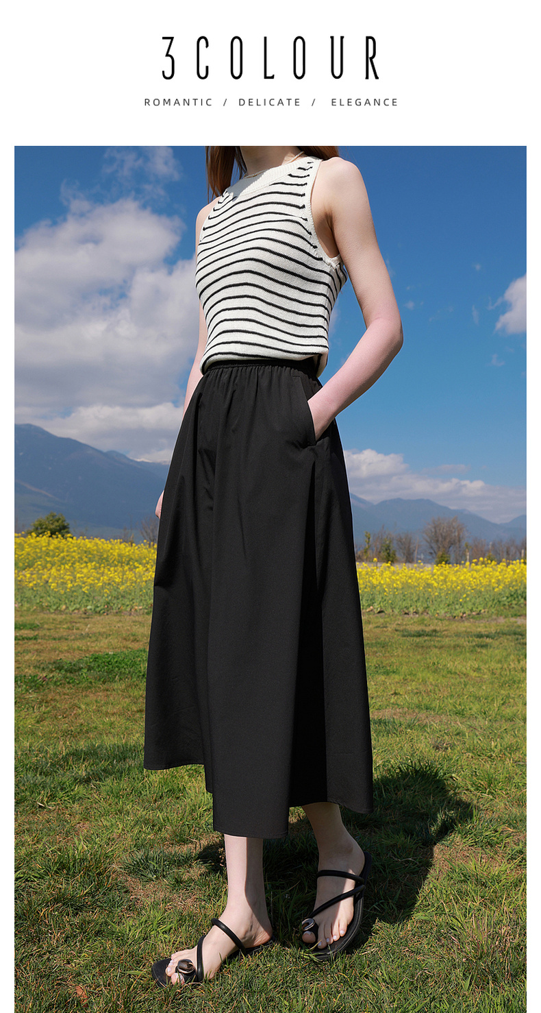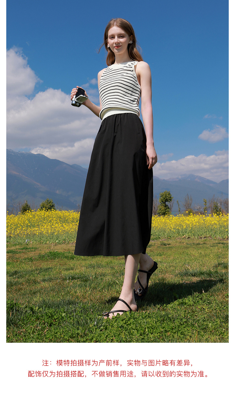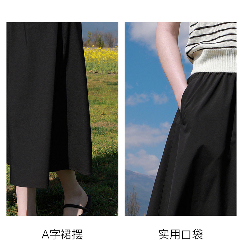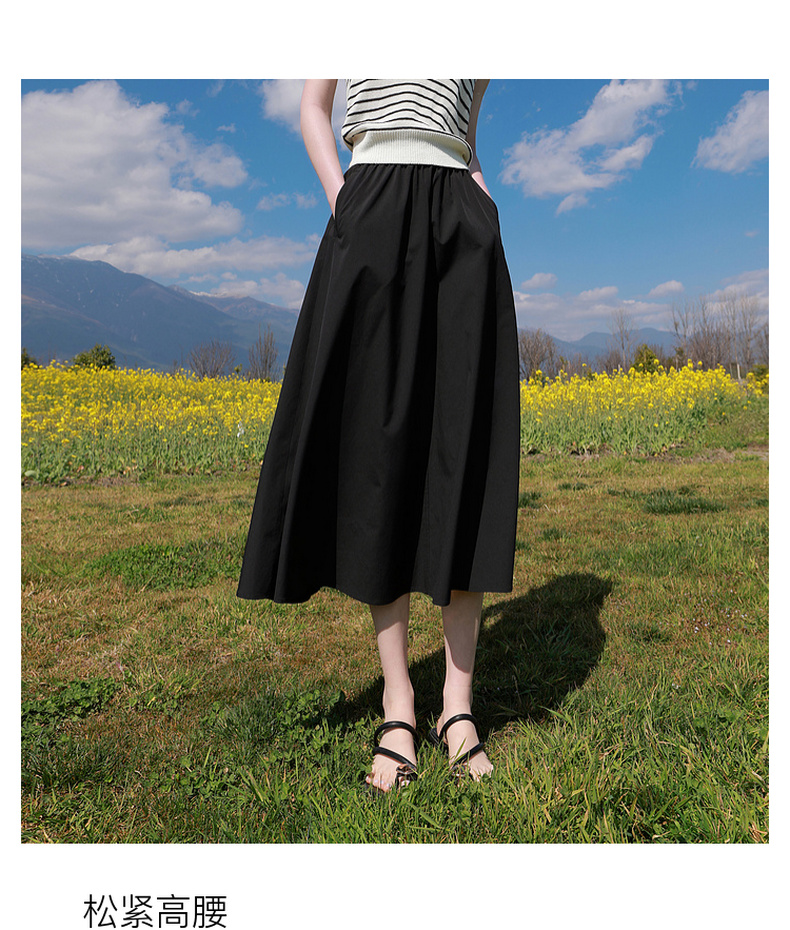 三彩2026夏季新款高腰A字裙半身裙长裙梨形显瘦裙子气质M
