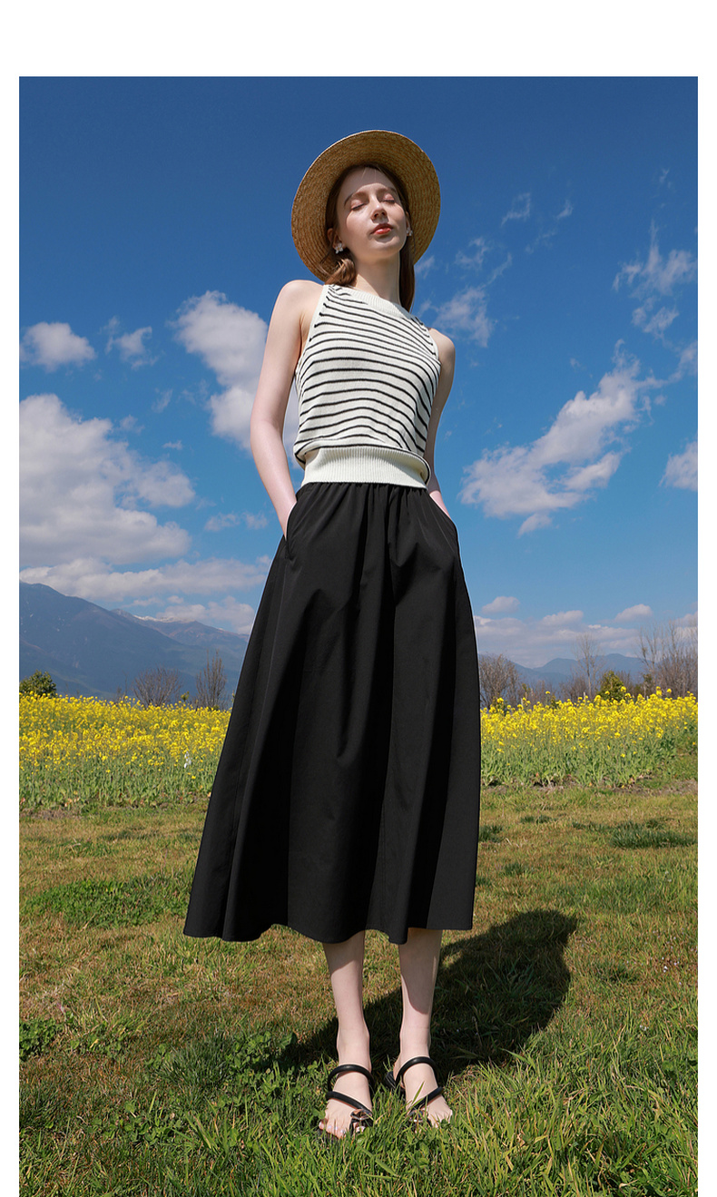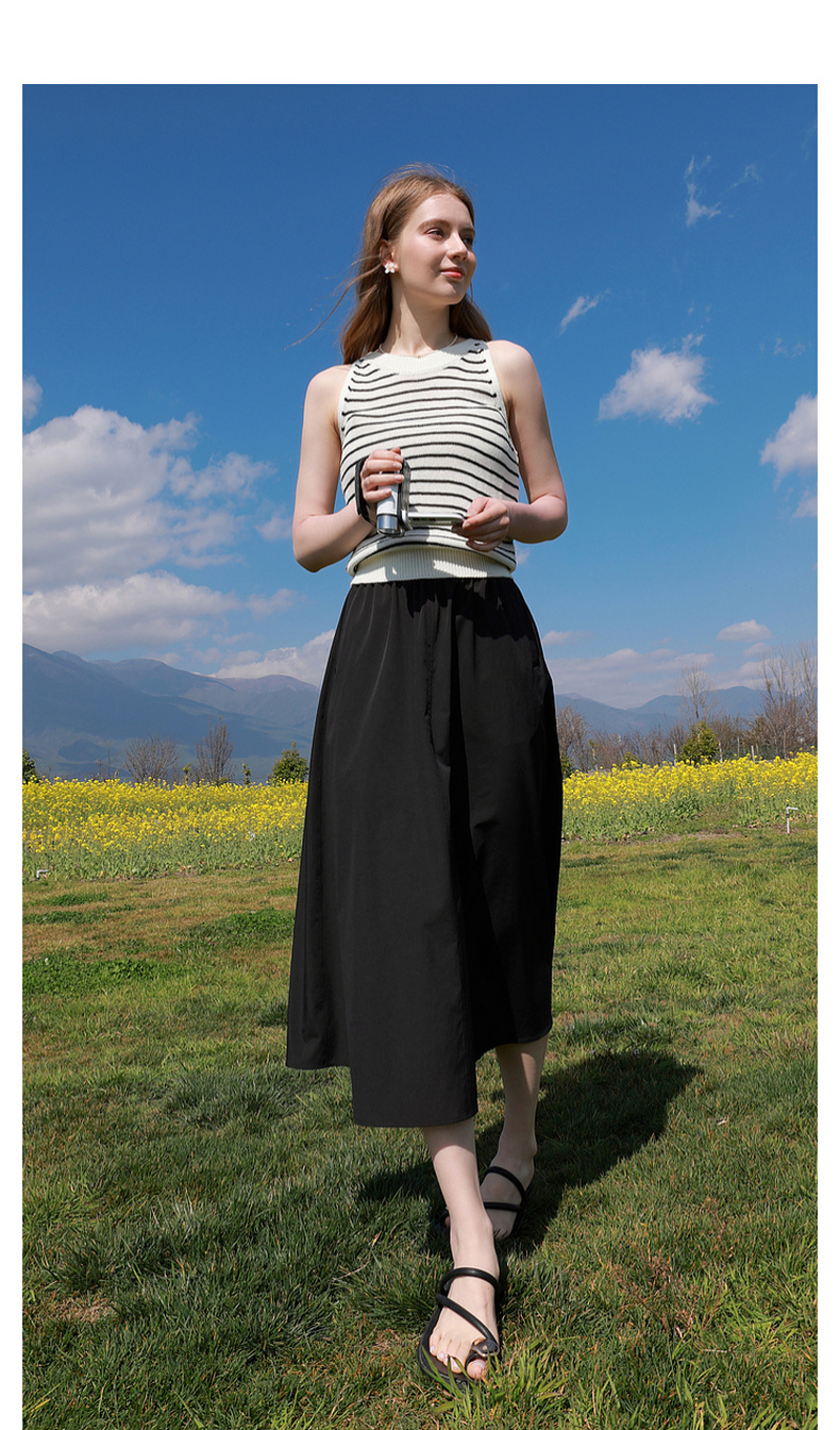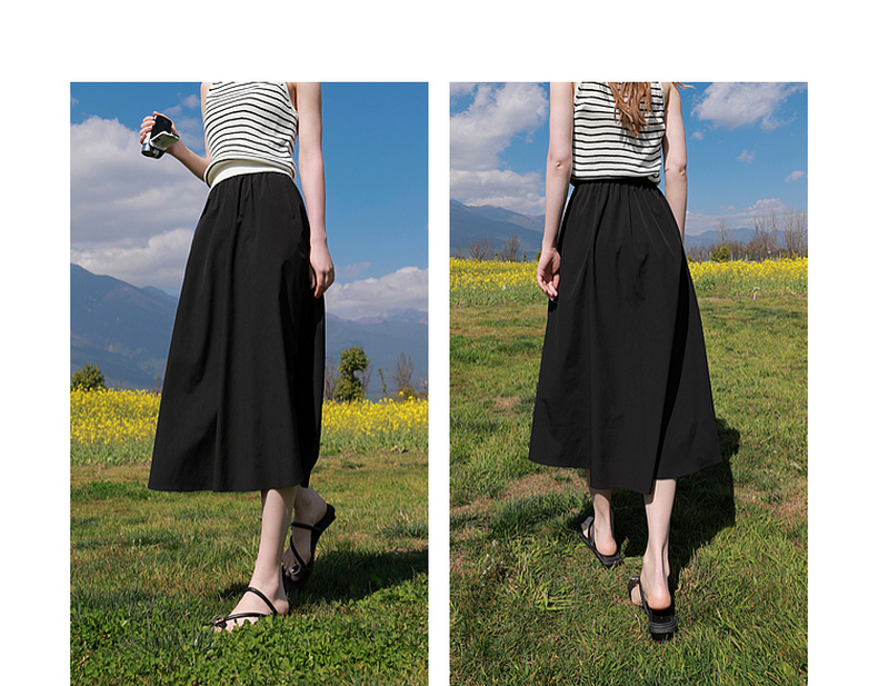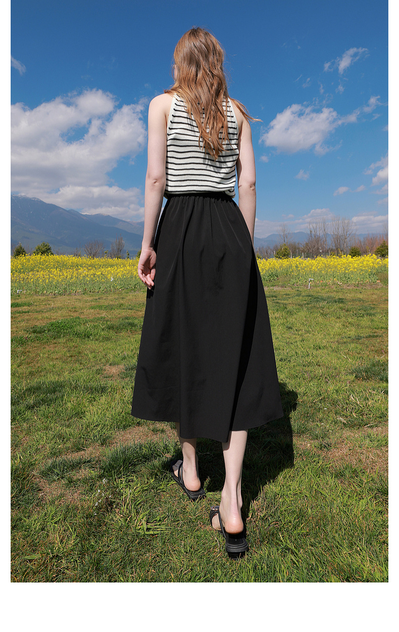 三彩2026夏季新款高腰A字裙半身裙长裙梨形显瘦裙子气质M