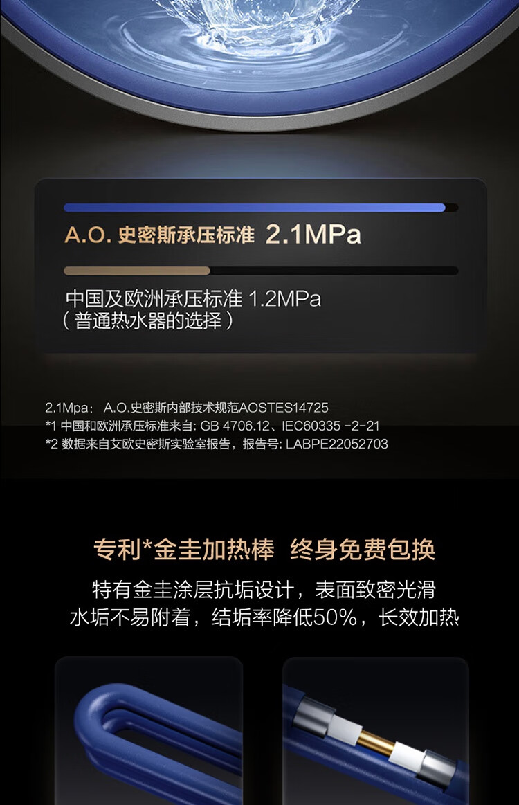 史密斯/电热水器/EWH-60HGM/金圭内胆3000W功率电热水器