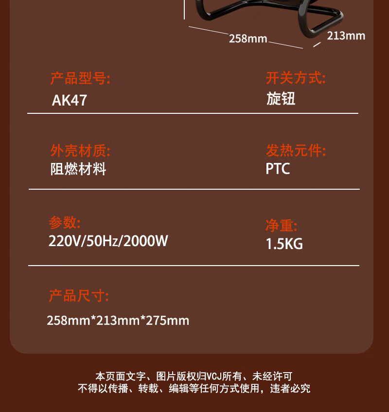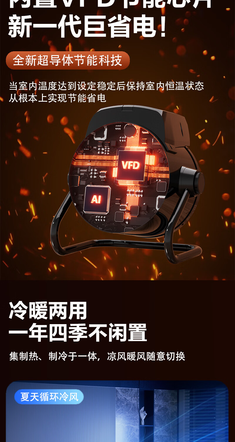 VCJ暖风机工业取暖器家用节能小钢炮大功率热风机速热省电暖器2000W