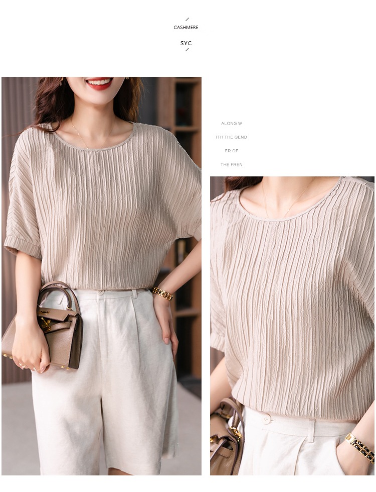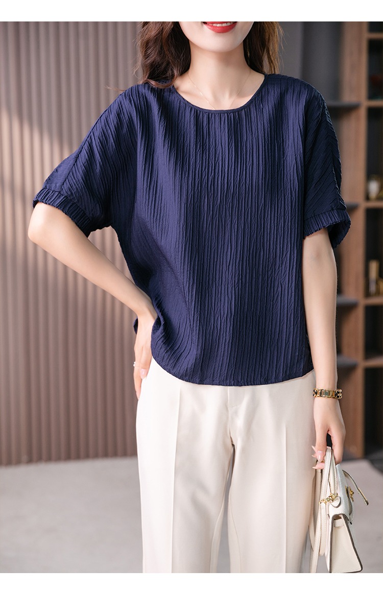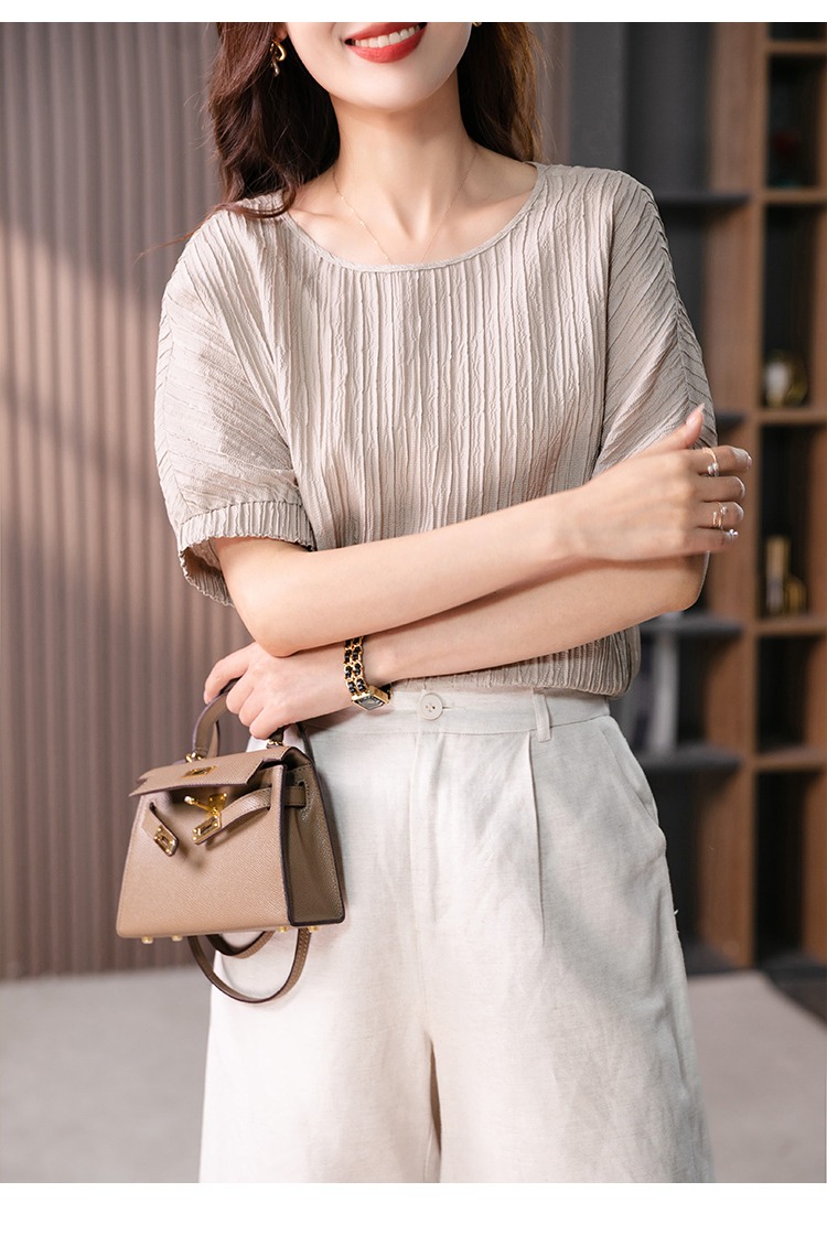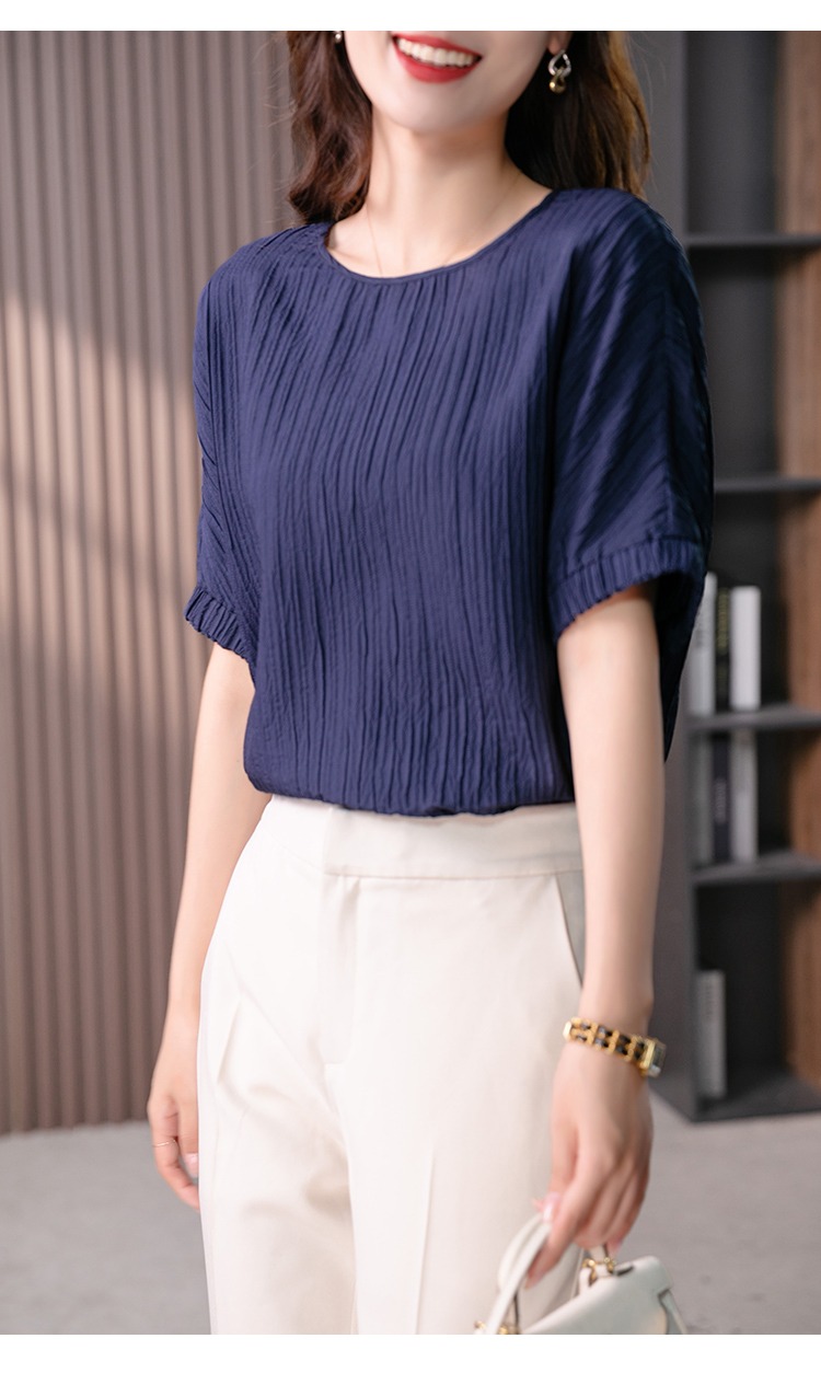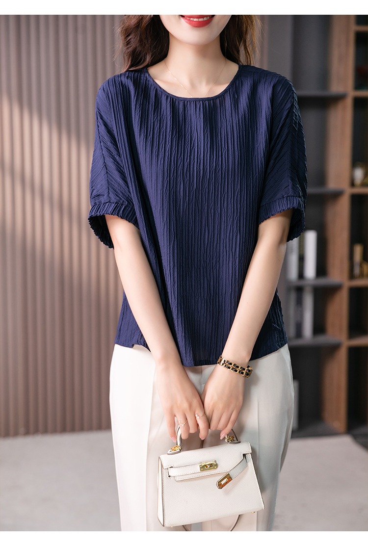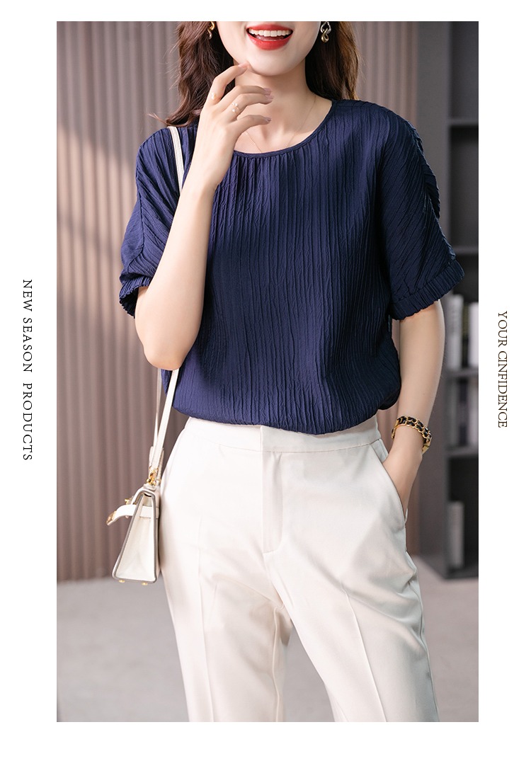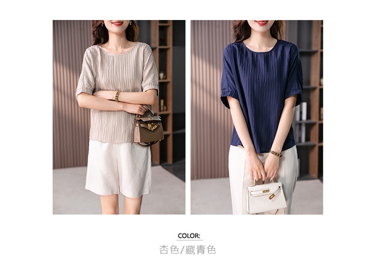 YX【定制15天】FSW时尚褶皱薄款短袖T恤宽松真丝桑蚕丝上衣