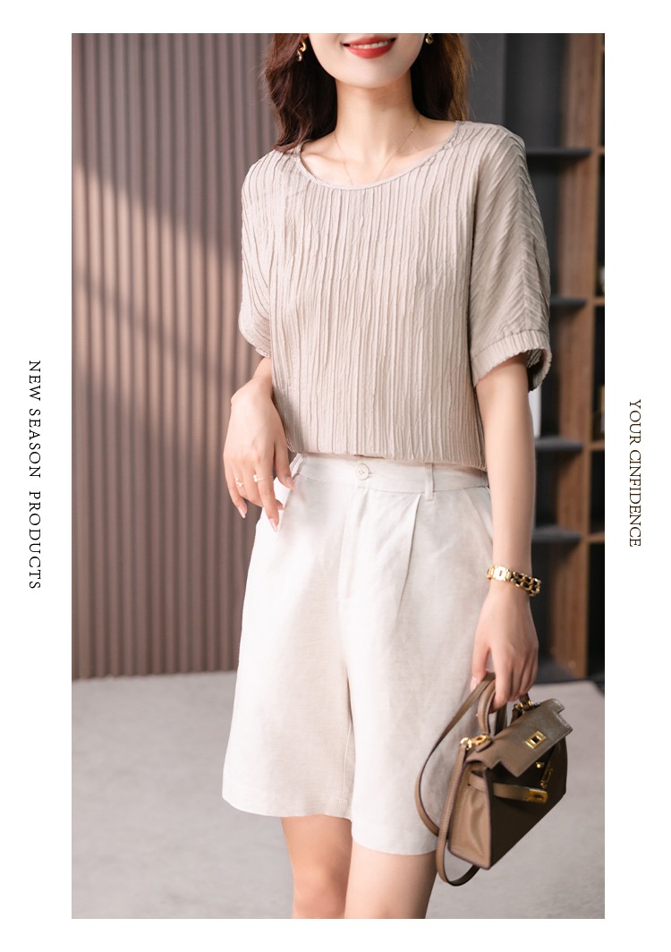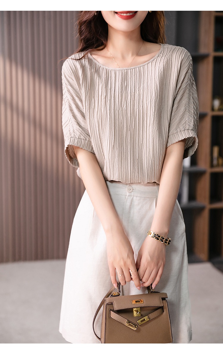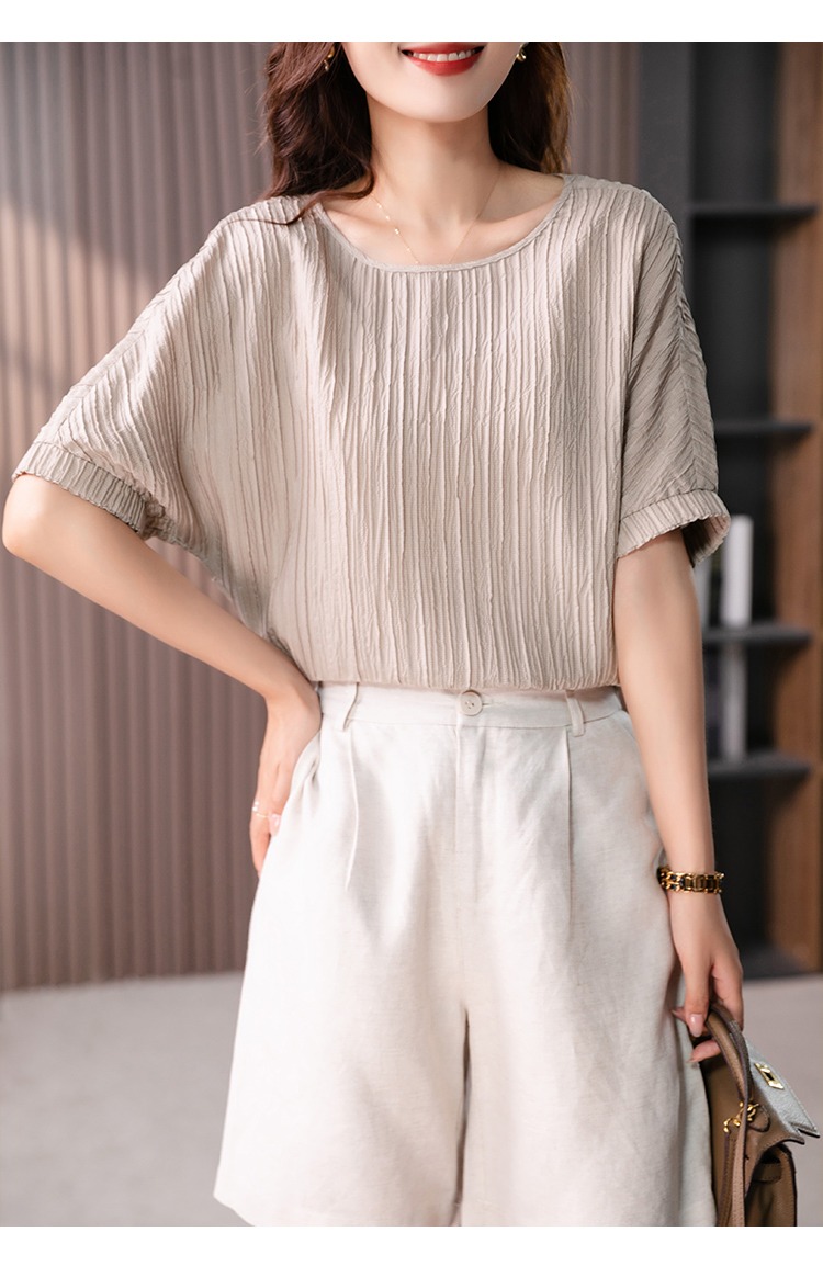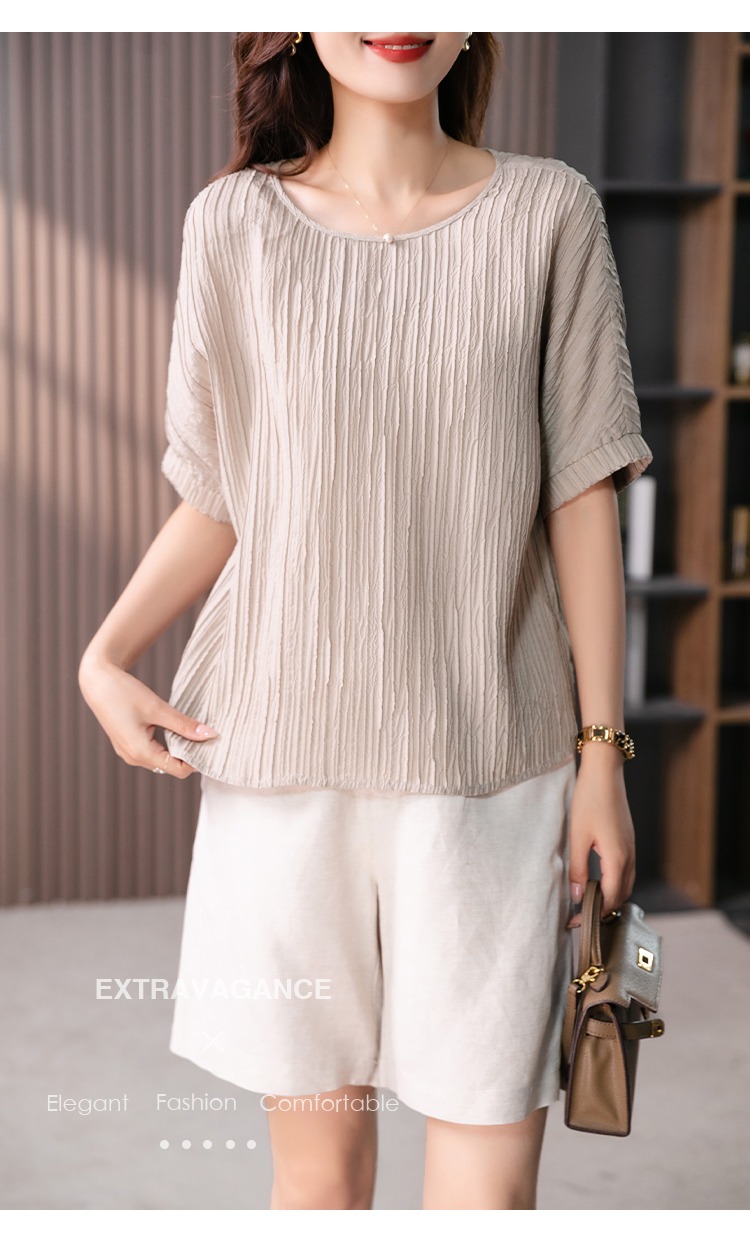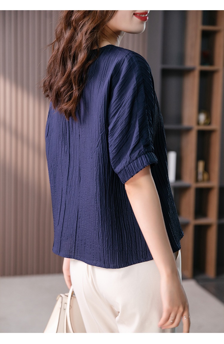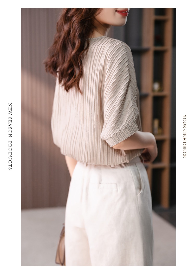 YX【定制15天】FSW时尚褶皱薄款短袖T恤宽松真丝桑蚕丝上衣