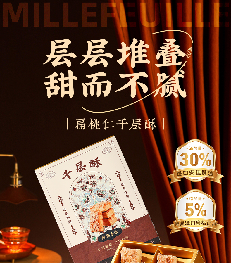 【千层酥】悠享时扁桃仁千层酥饼干礼盒装办公休闲解馋网红零食糕点下午茶点心小吃112g
