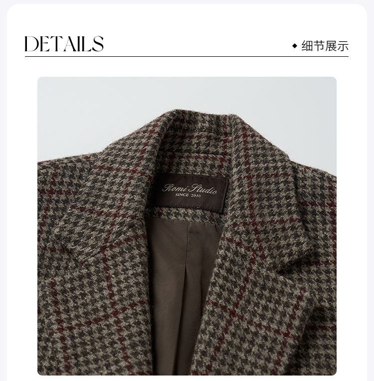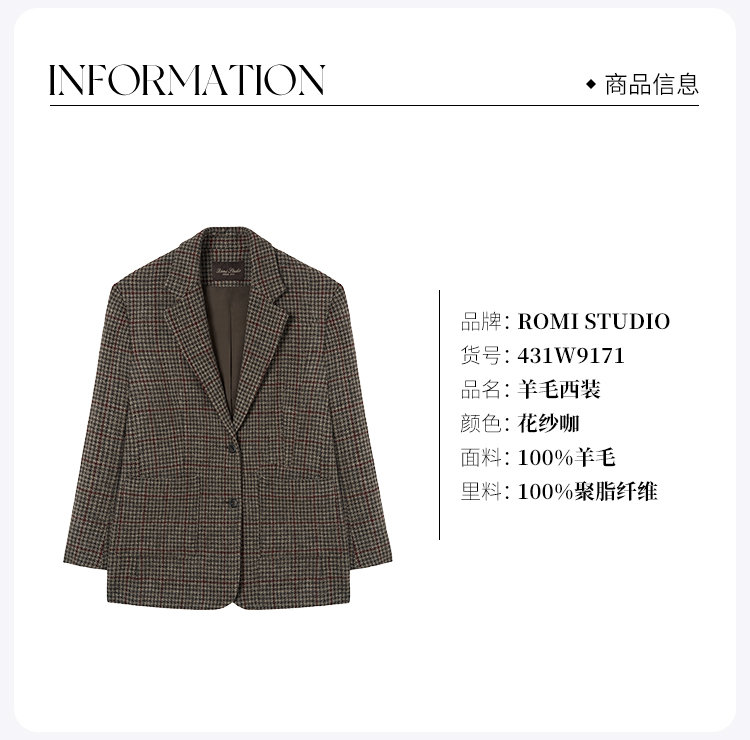 ROMI STUDIO“自我格调”*绵羊毛复古格纹宽松西装外套 431W9171