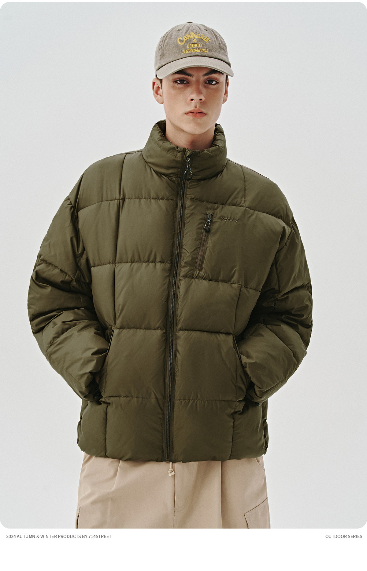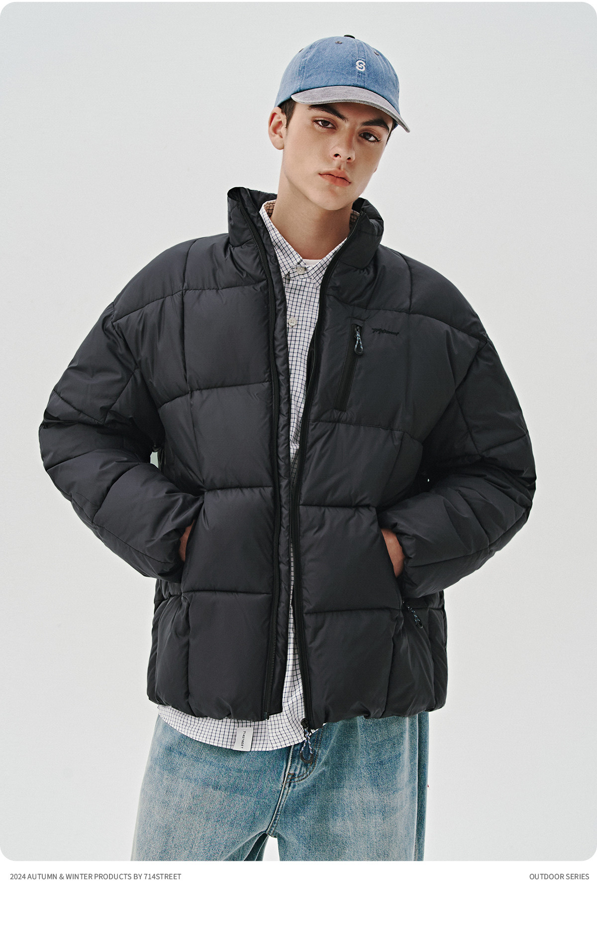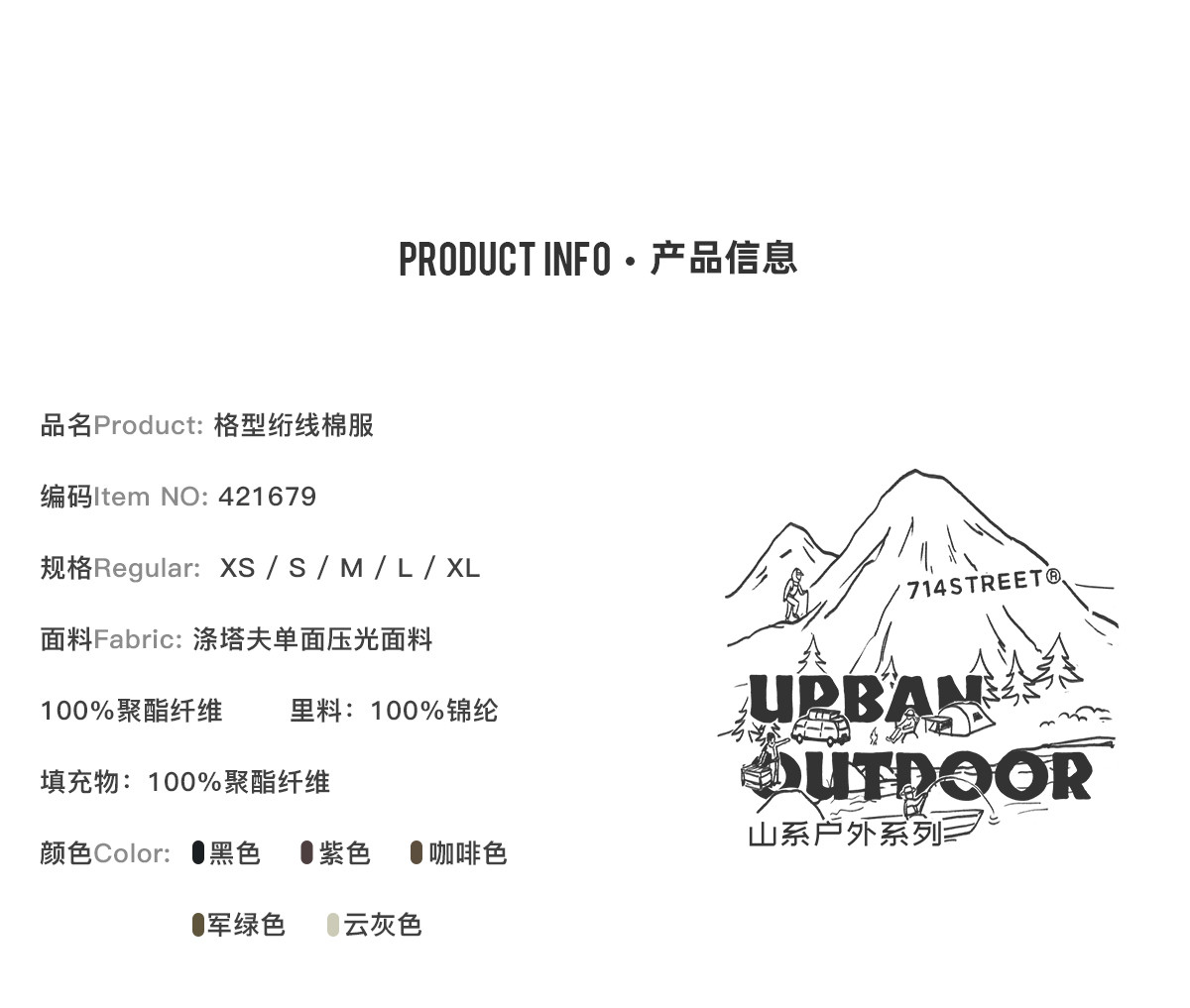 714street山系户外防风徒步登山棉服男士秋冬季新款宽松短阔外套