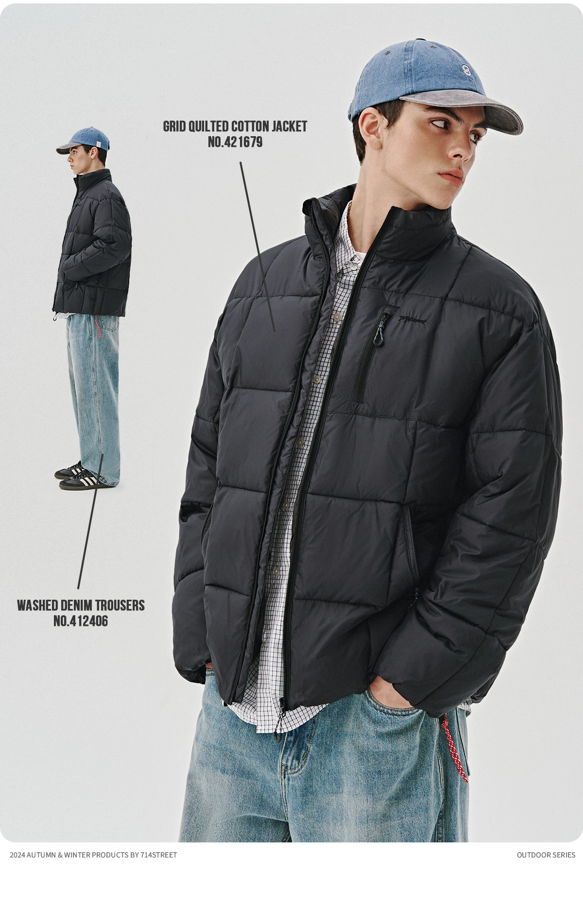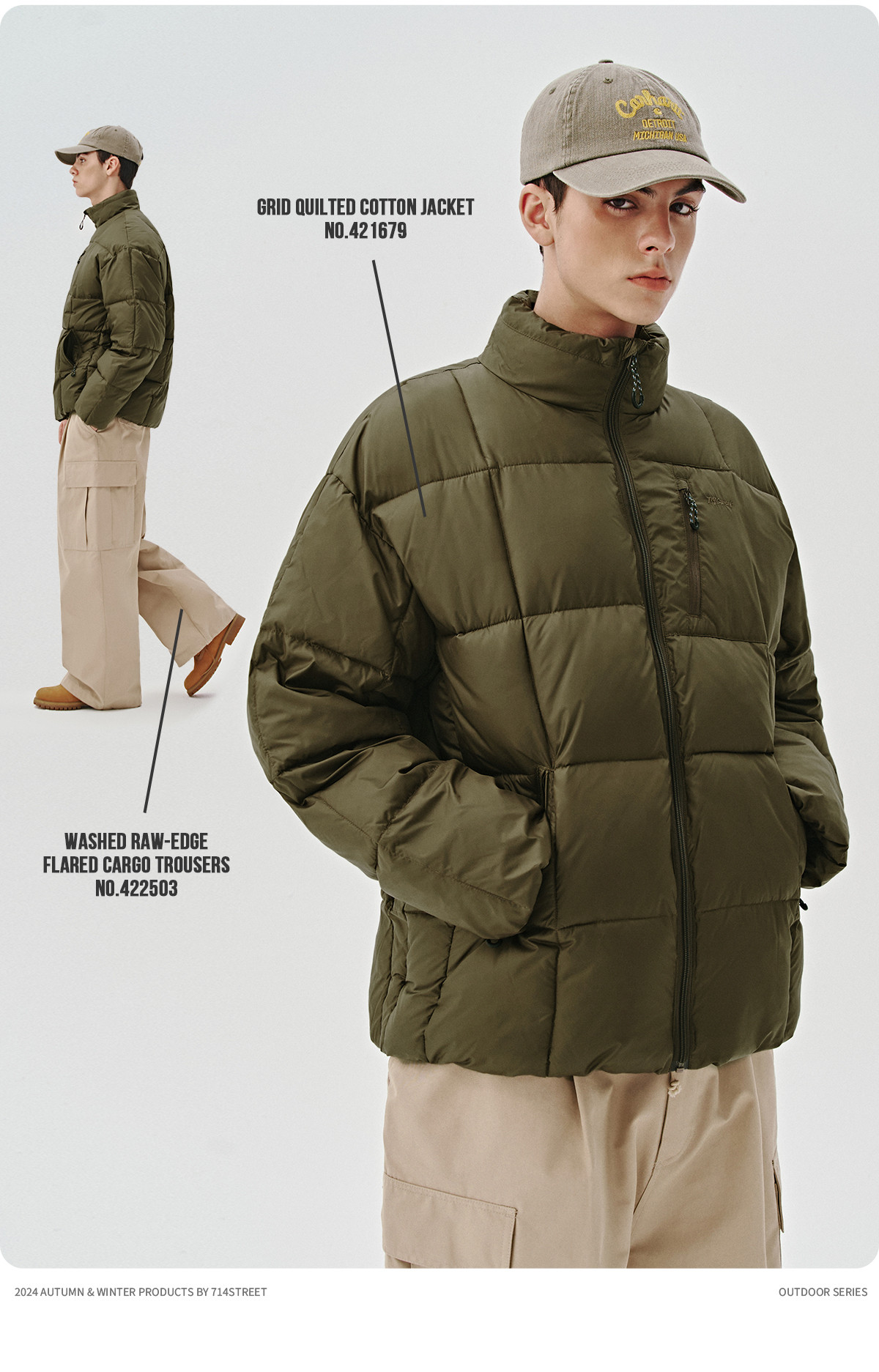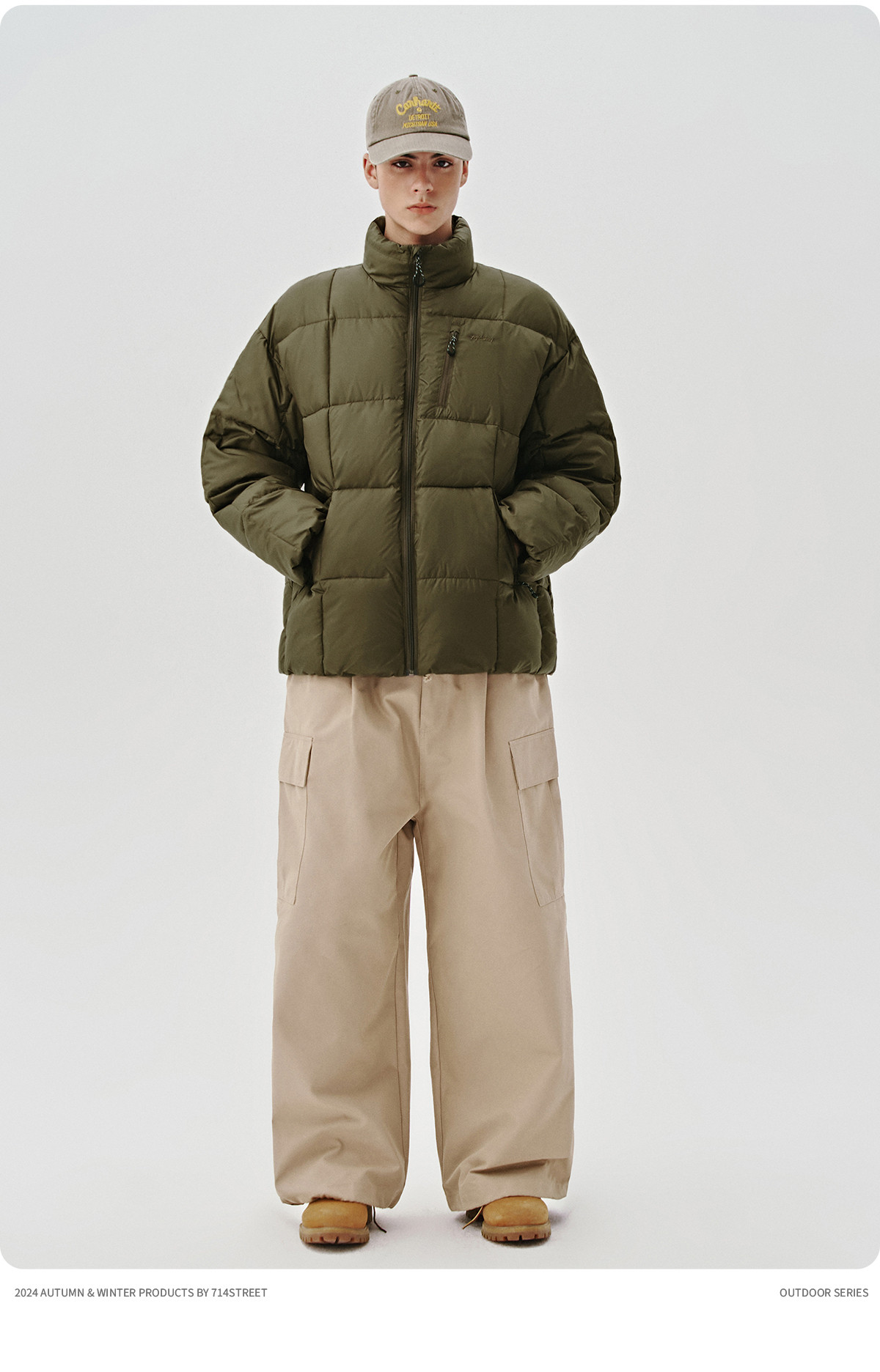714street山系户外防风徒步登山棉服男士秋冬季新款宽松短阔外套
