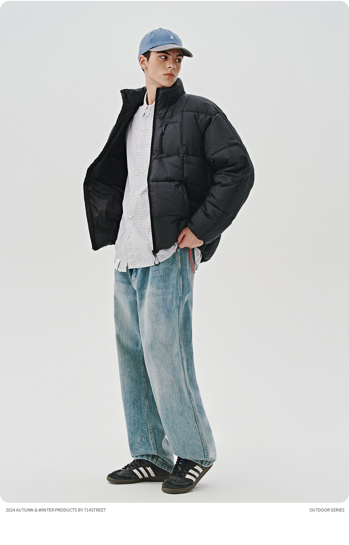 714street水洗纯棉宽松休闲裤男2025秋季新款弯刀裤cleanfit长裤