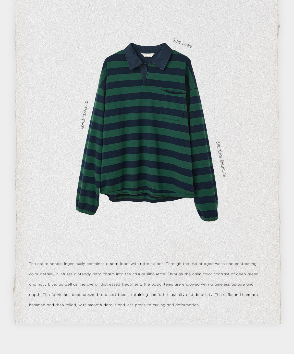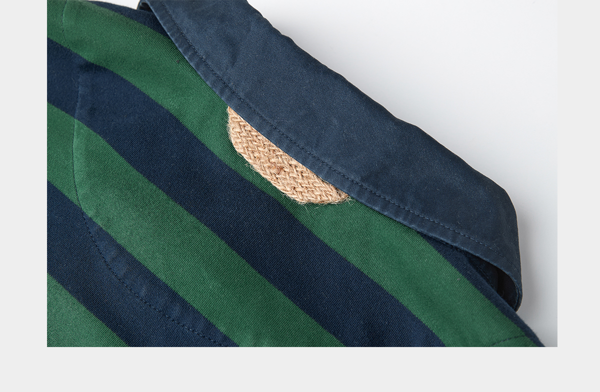 ROMI STUDIO“美式复古”磨毛棉感弹力色织条纹翻领长袖RWCASY6390