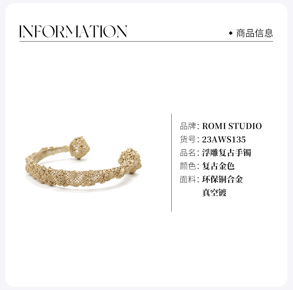 ROMI STUDIO古典优雅3D立体浮雕复古金手镯23AWS135