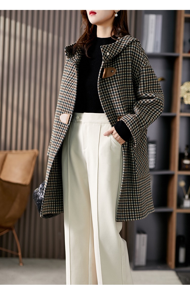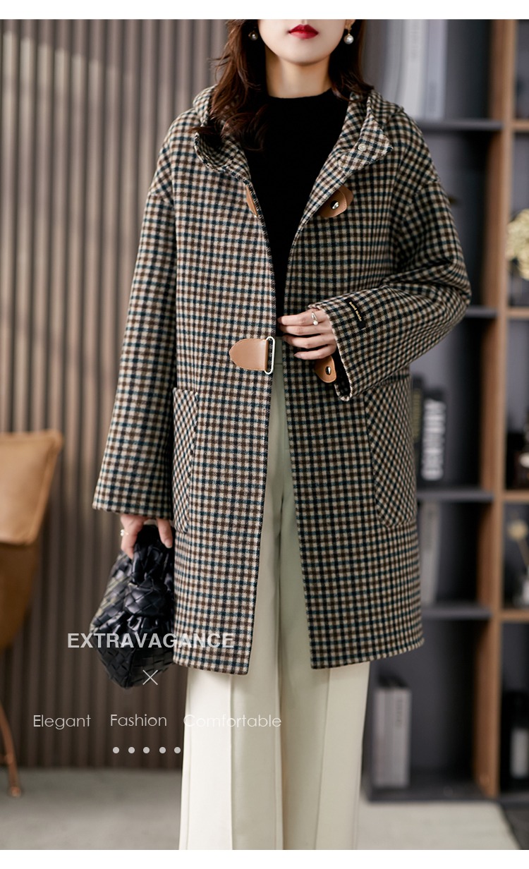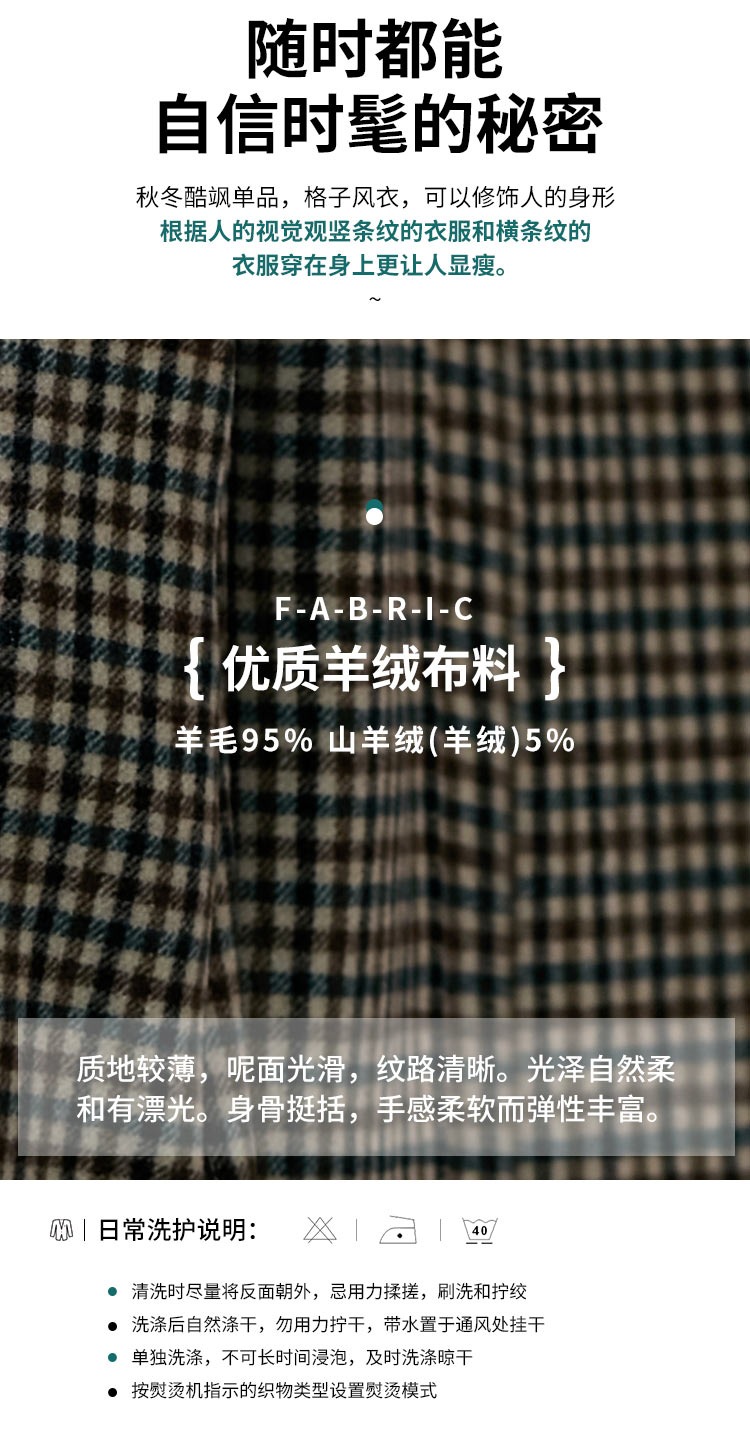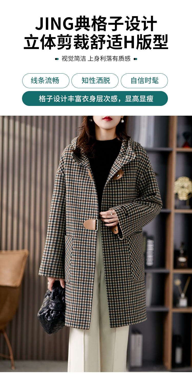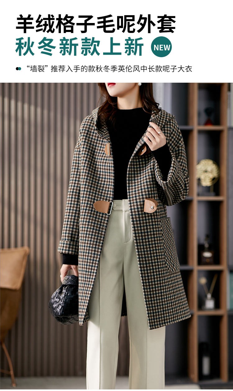 【2023新款】格子羊绒羊毛双面毛呢外套女2023新款秋冬英伦风中长款呢大衣