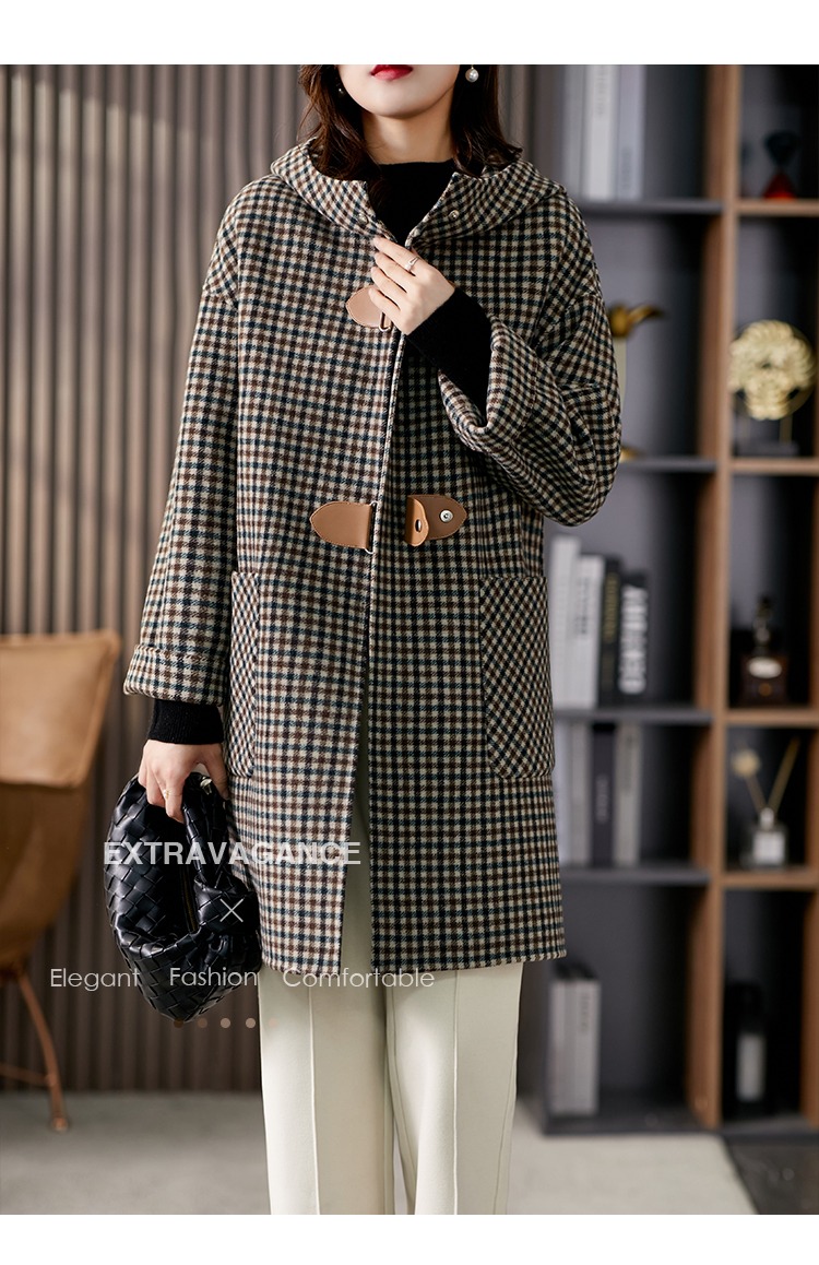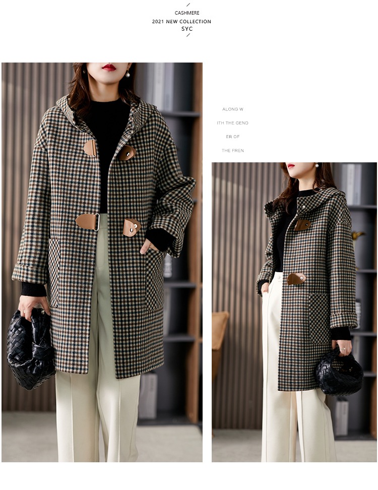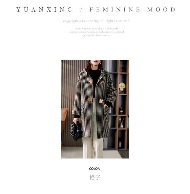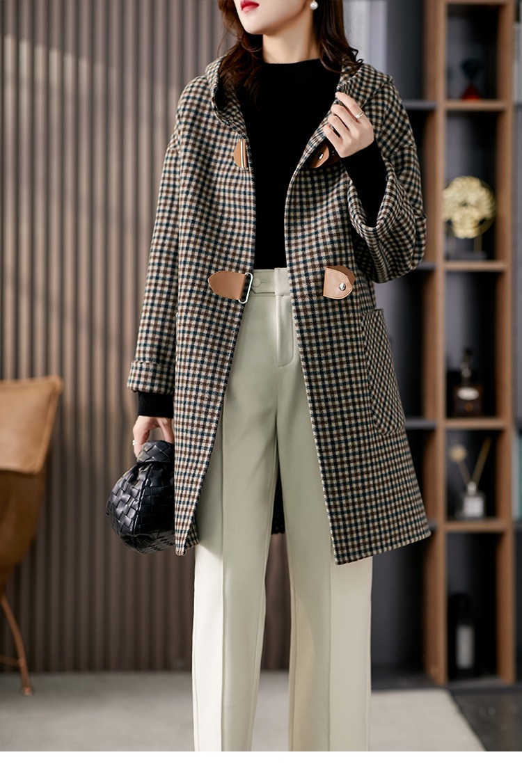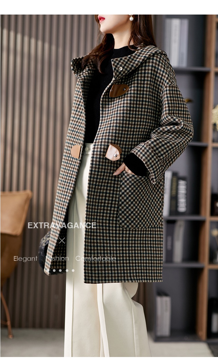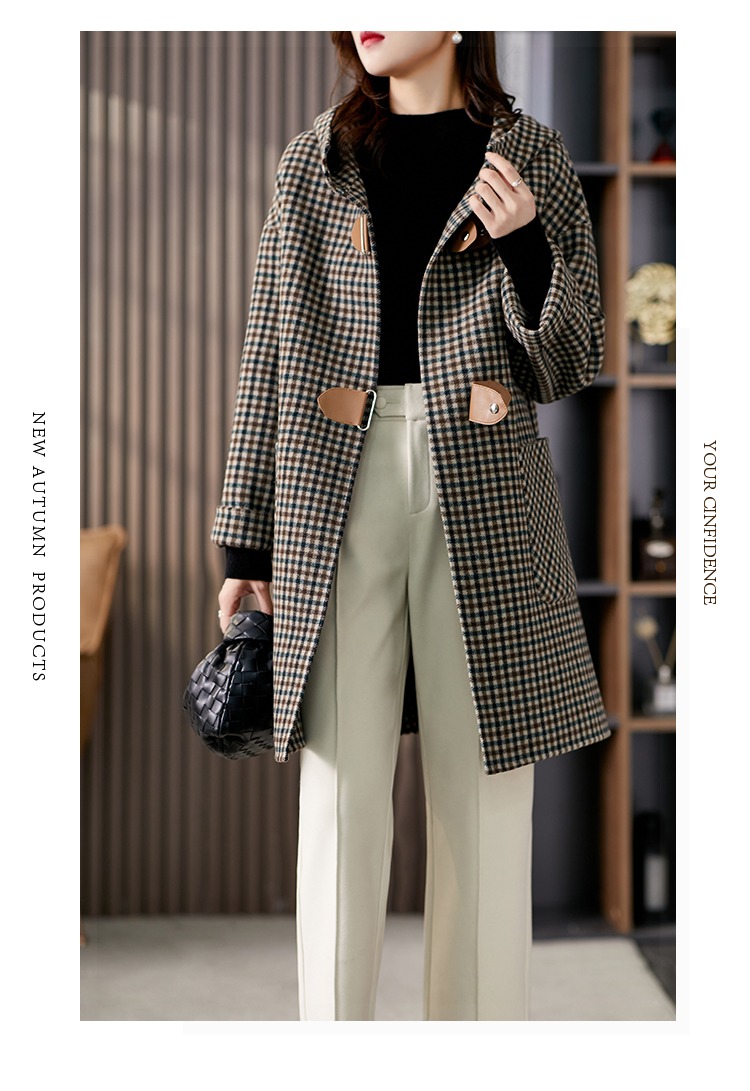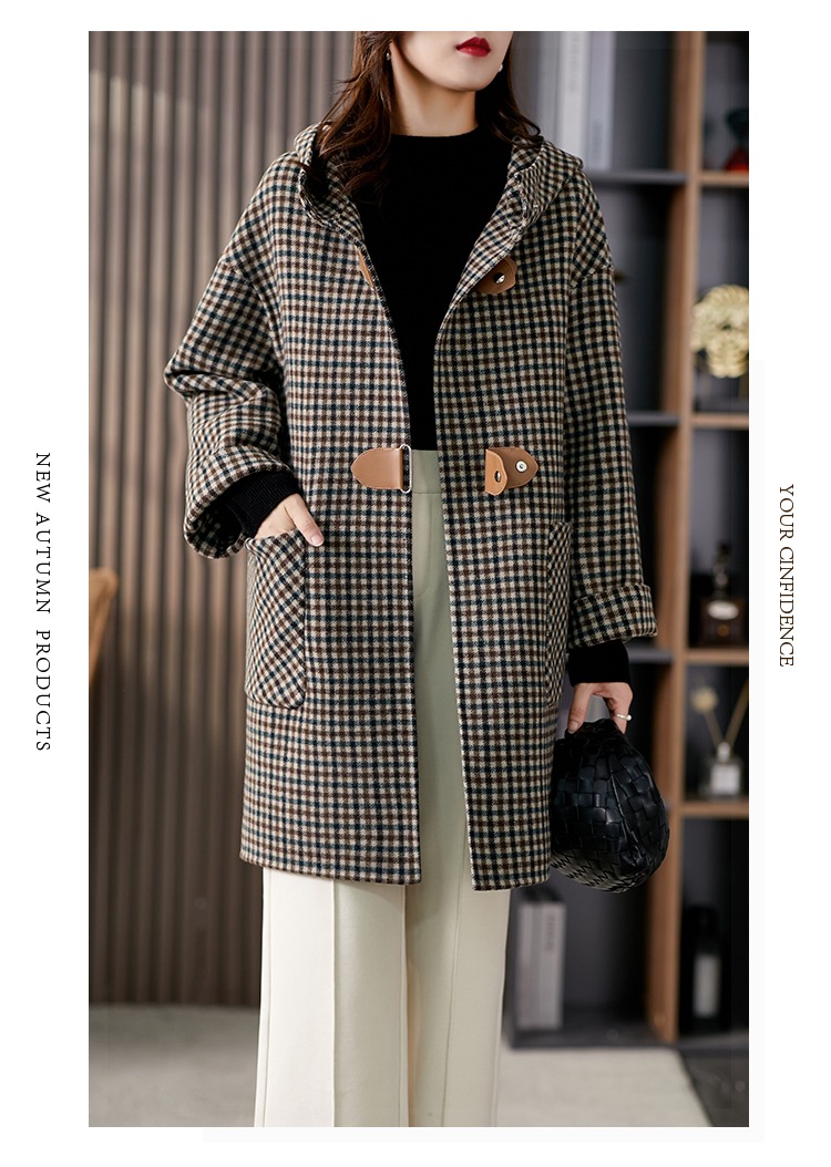 【2023新款】格子羊绒羊毛双面毛呢外套女2023新款秋冬英伦风中长款呢大衣