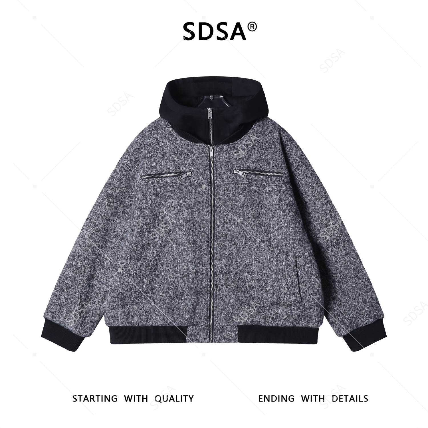 25051SDSA男士秋冬新款痞帅男装美式潮牌撞色假两件羊毛外套百搭时尚