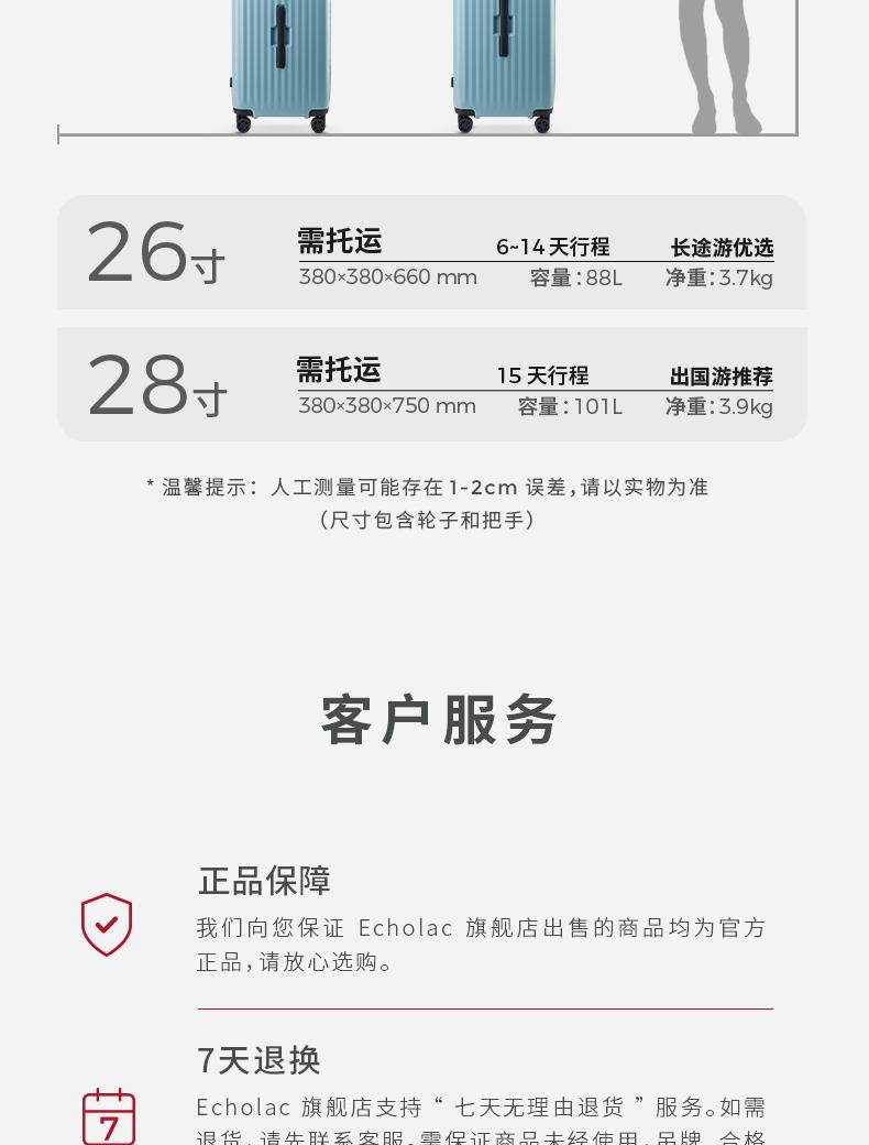 Echolac/爱可乐大容量旅行箱潮流Trunk行李箱纯PC拉杆箱26寸/28寸PC183K