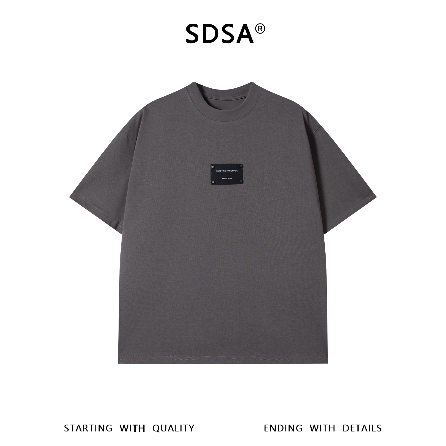 SDSA男装2026新款高贵轻奢潮牌简约皮标装饰圆领短袖百搭宽松上衣
