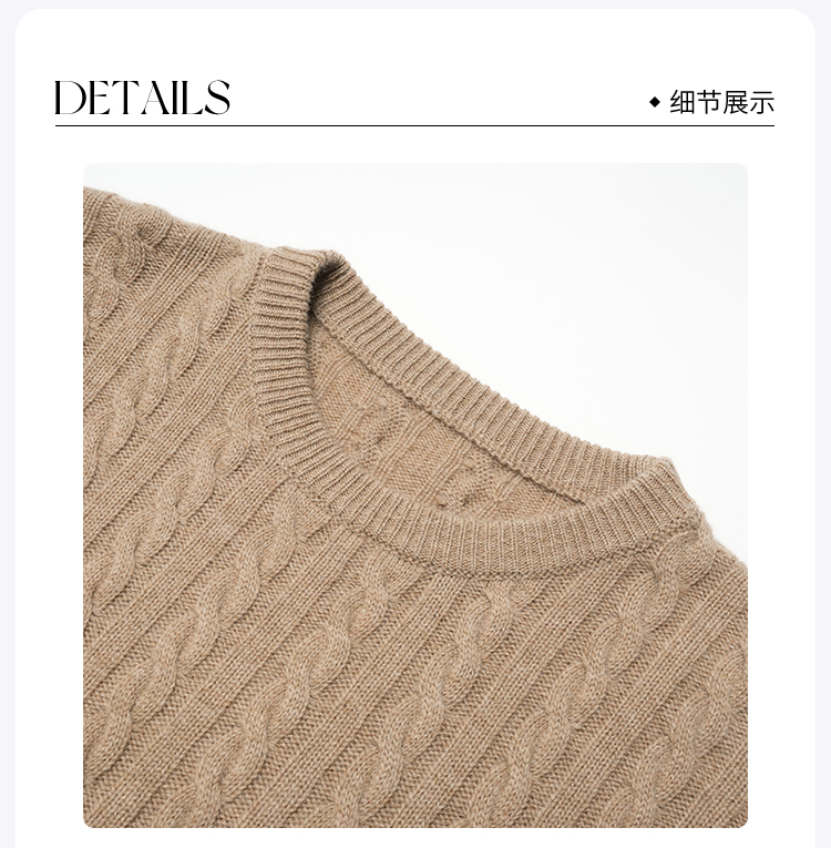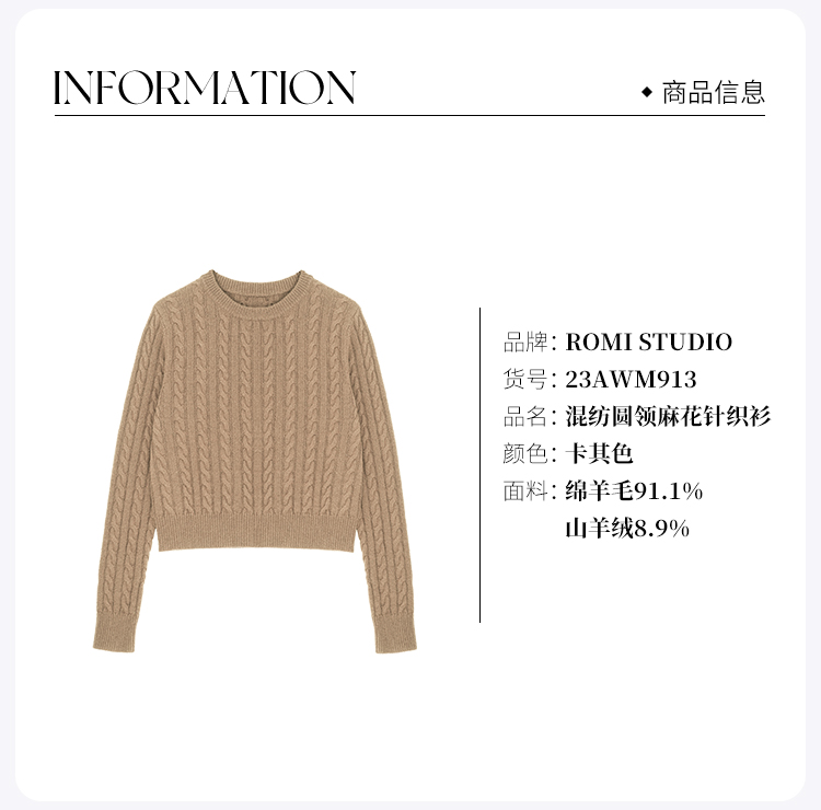 ROMI STUDIO随性优雅'腔调穿搭混纺圆领麻花针织长袖毛衣23AWM913