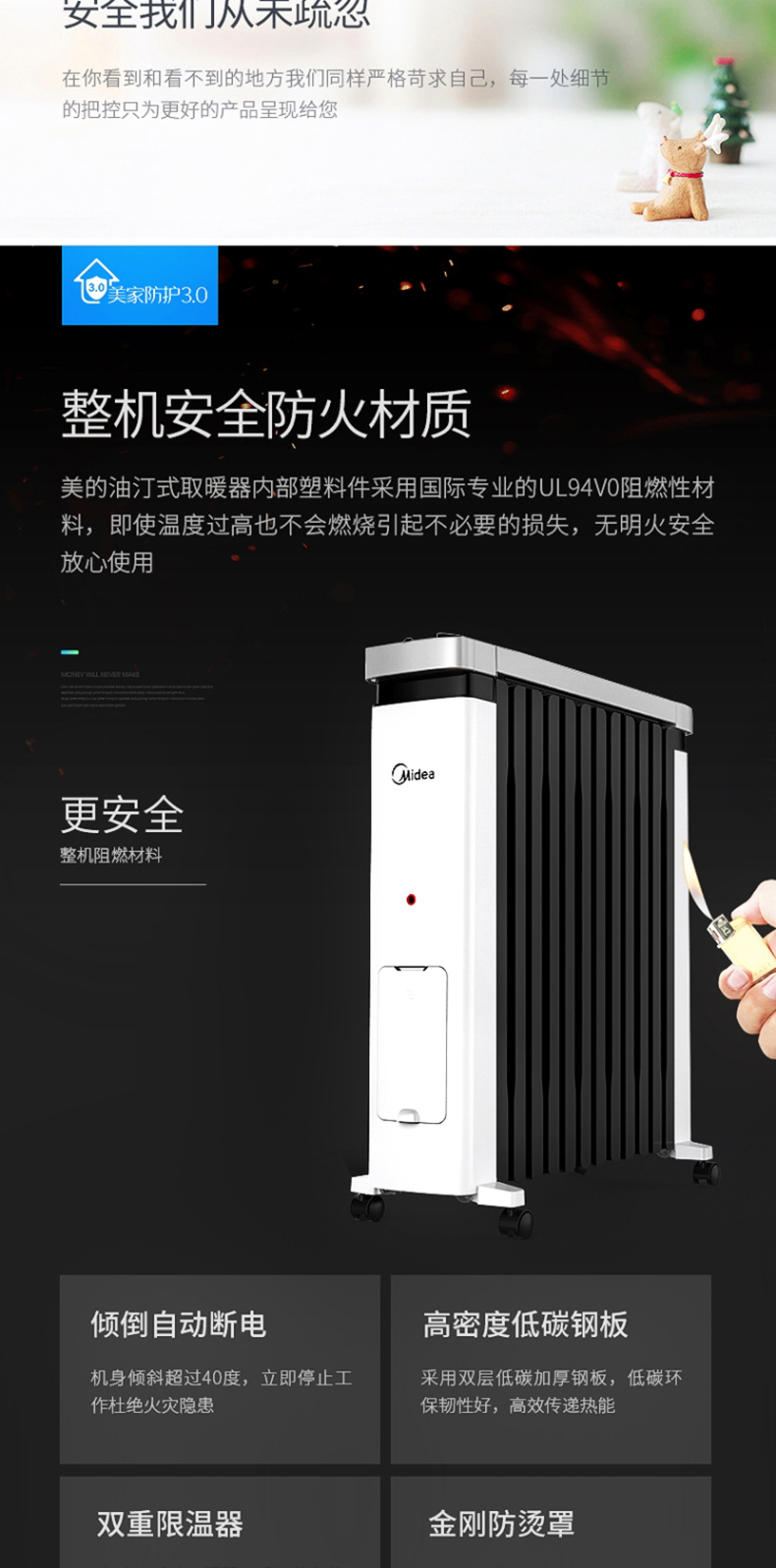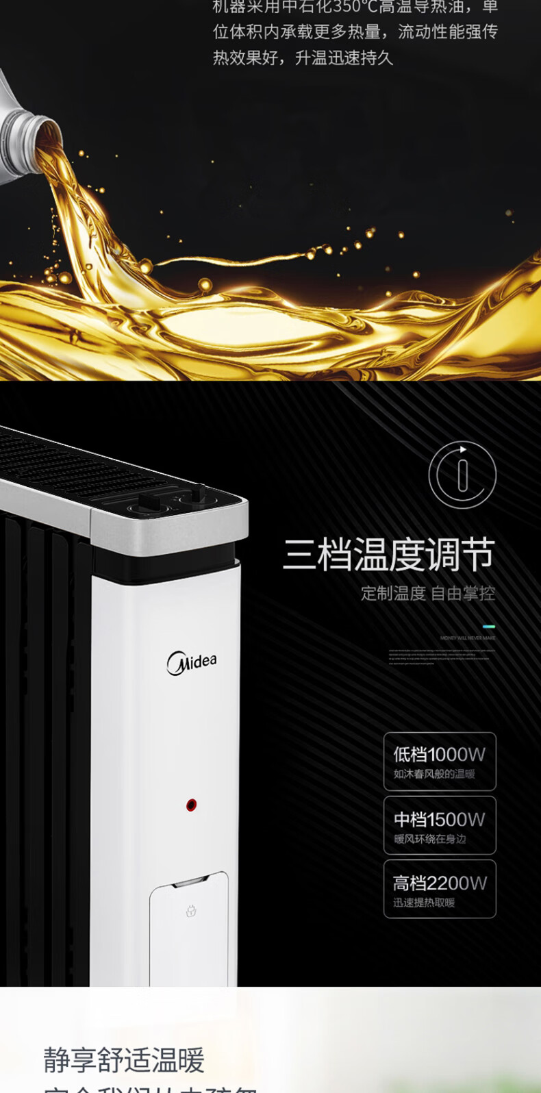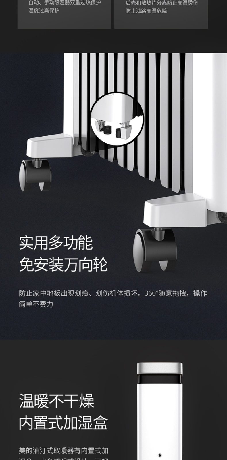 美的(Midea) NY2212-18C油汀电暖取暖器加湿盒烤火炉办公室卧室加宽暖气片电暖器儿童防烫2200W(线下同款)