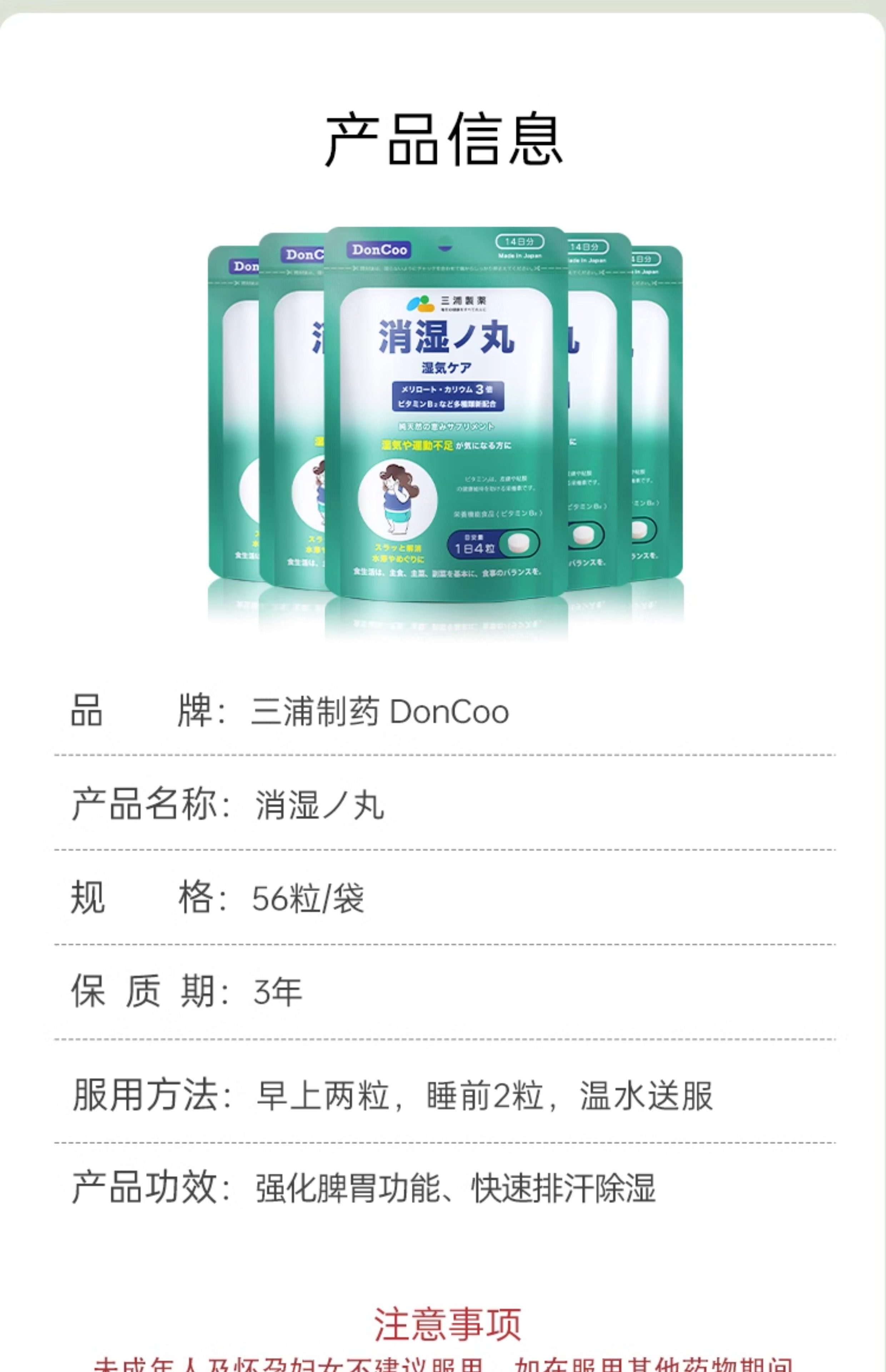 三浦制药DonCoo进口消湿丸调理脾胃去湿气排体内湿寒消水肿祛湿丸