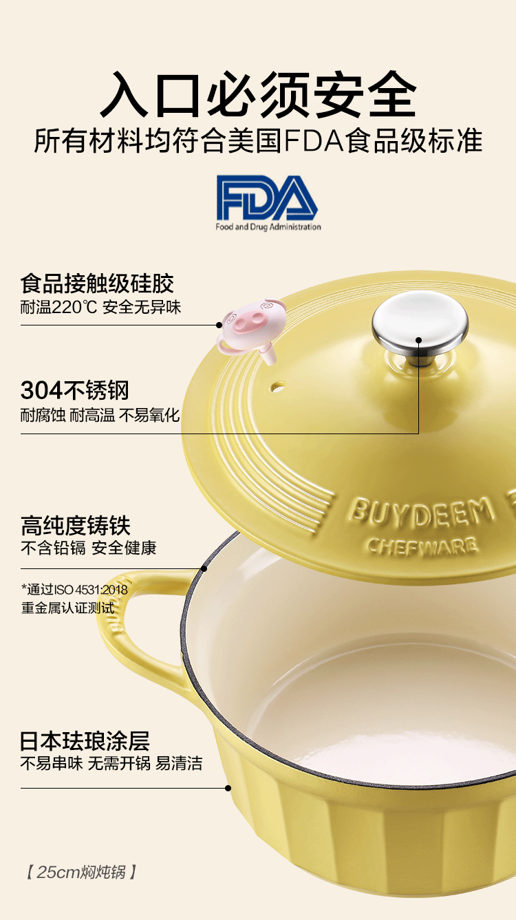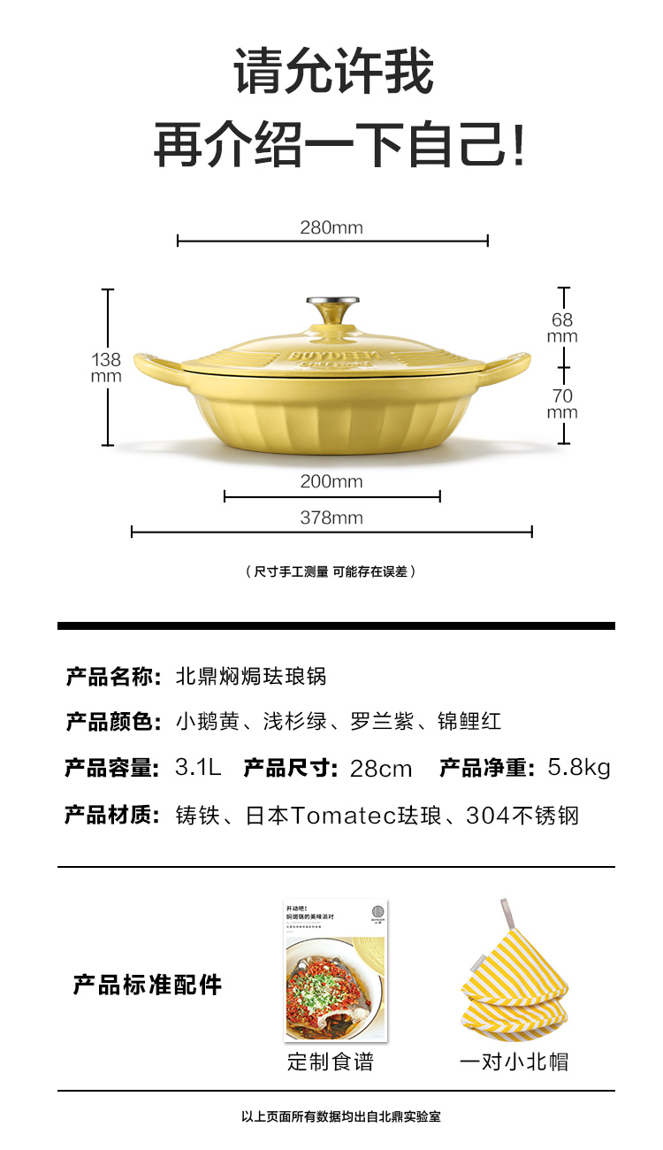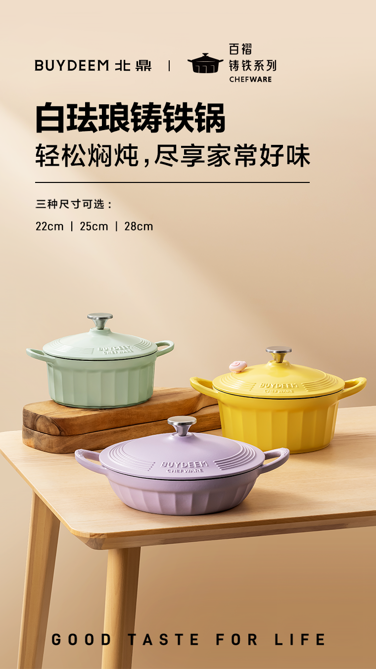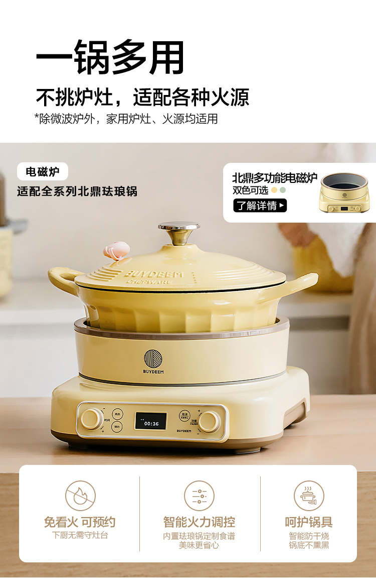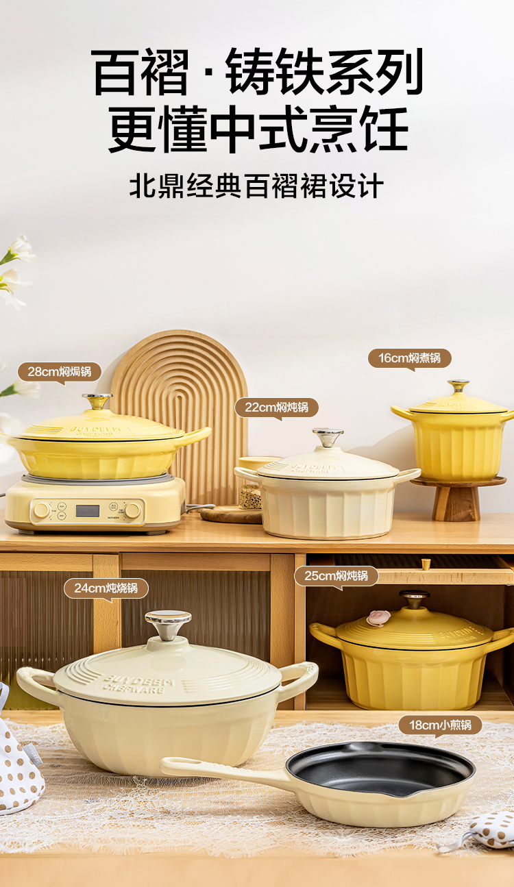 北鼎珐琅锅铸铁煲汤家用焖炖锅多功能砂锅进口平底锅具煮锅 CP521