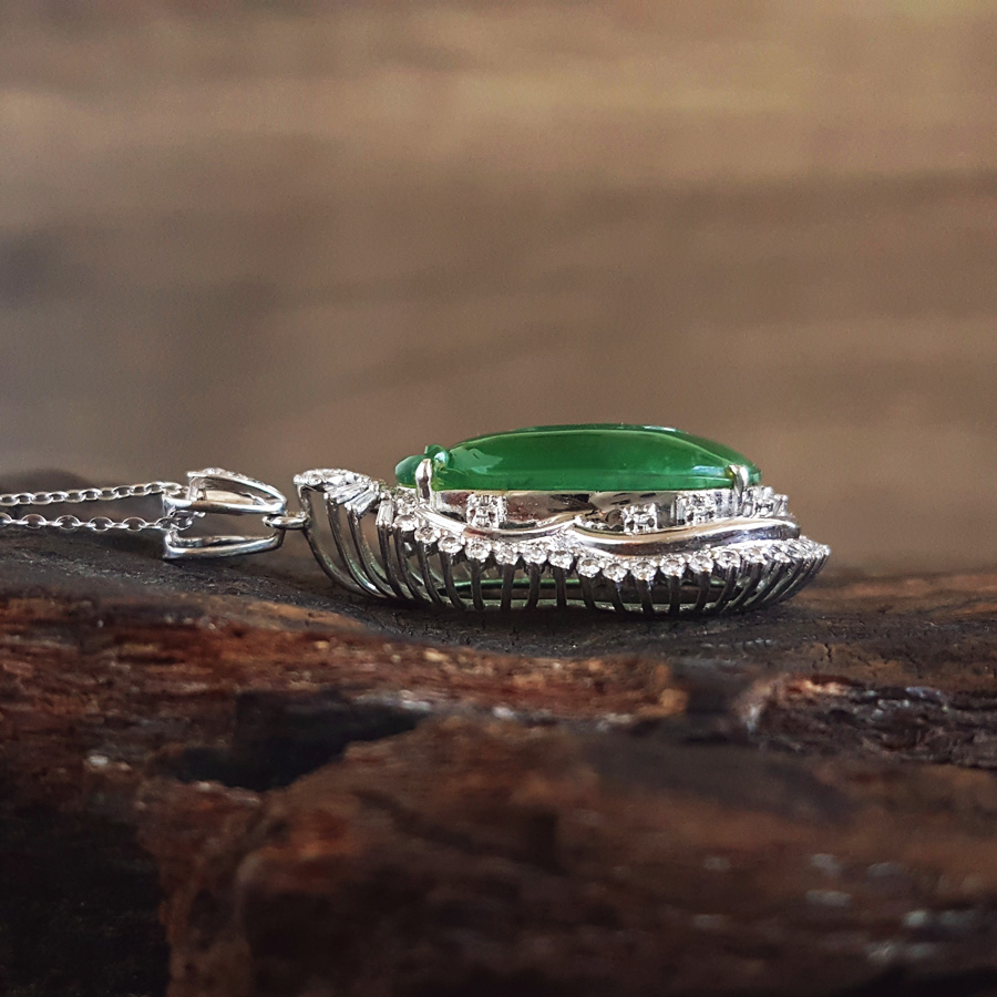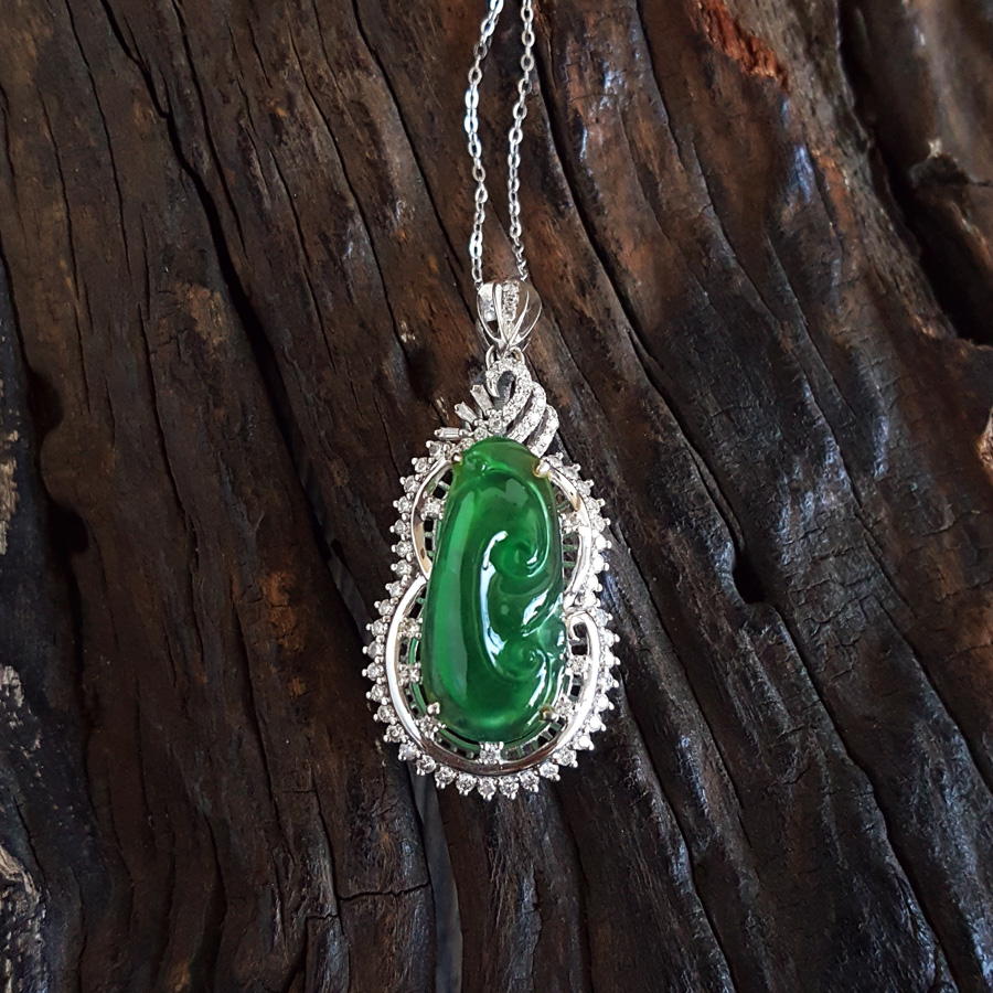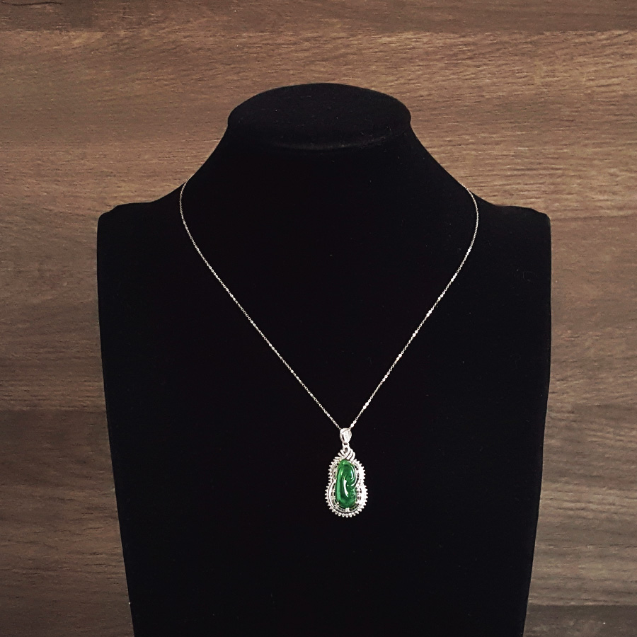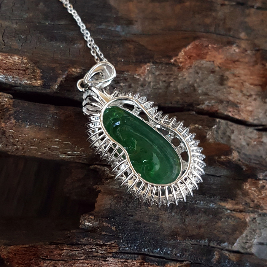名称 | AU750白金豪镶钻镶天然细腻冰种满绿如意(万事如意)翡翠吊坠项链 |