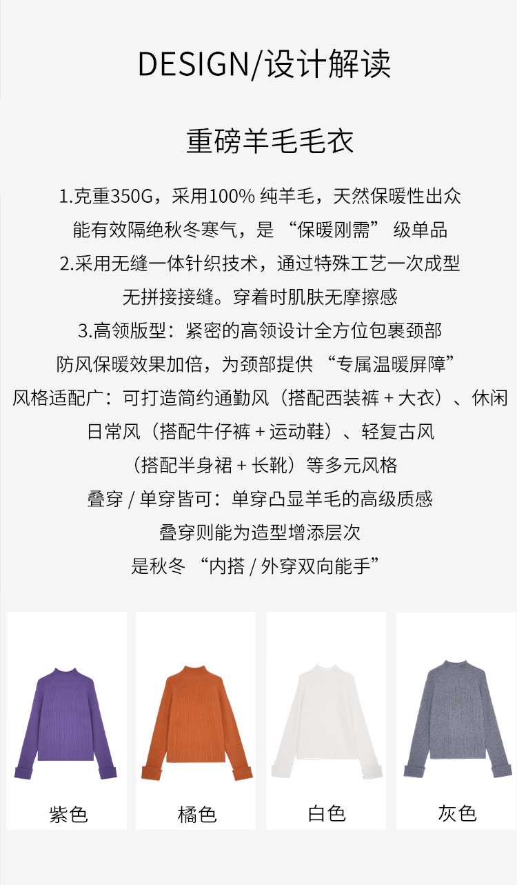 NORNS LADY诺恩 冬季新款毛针织衫纯色半高领毛衣 H25SS06817