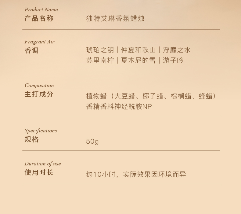 独特艾琳 调香师定制香薰蜡烛 礼盒高级家用卧室内放松高级精油香氛