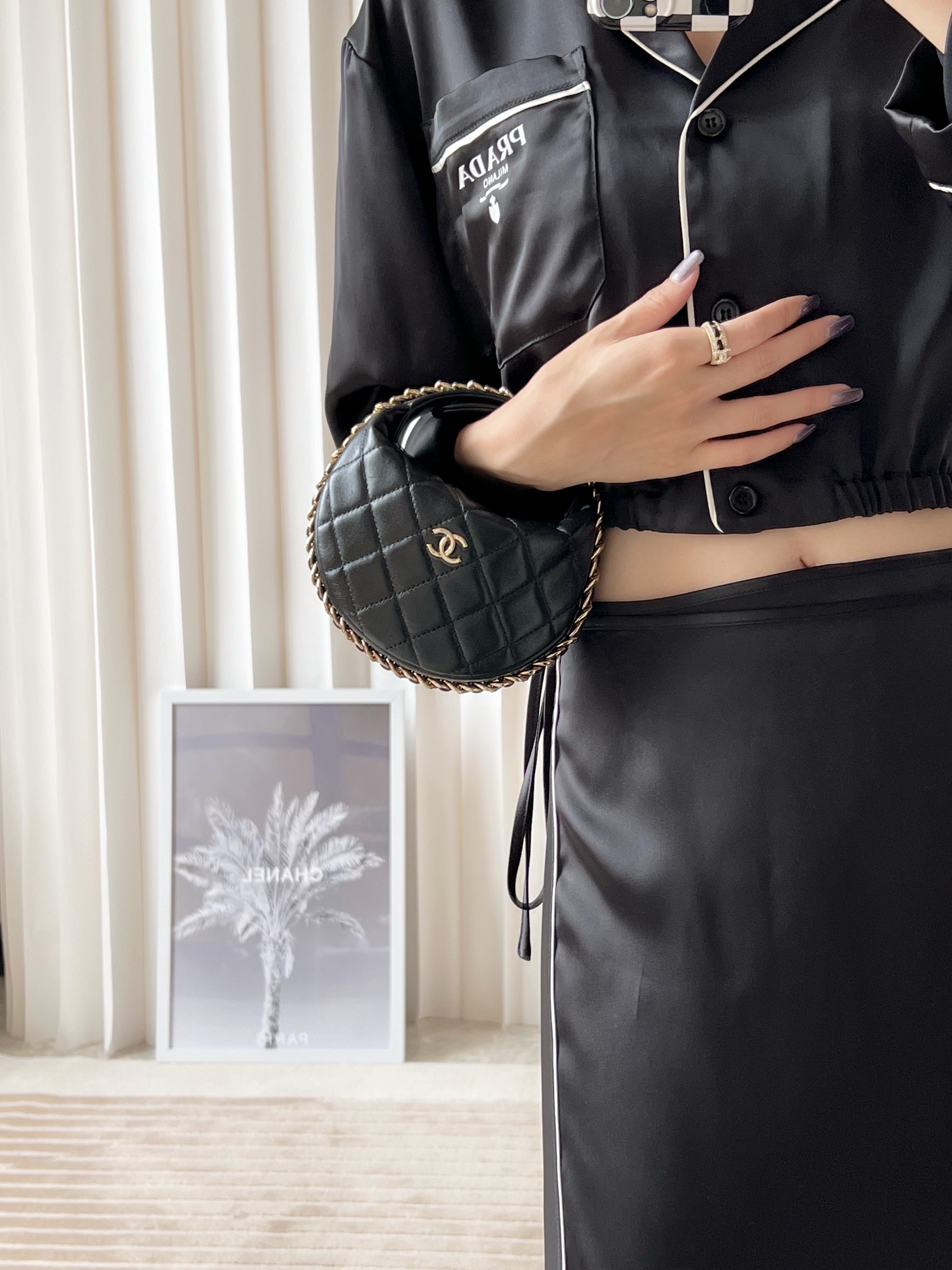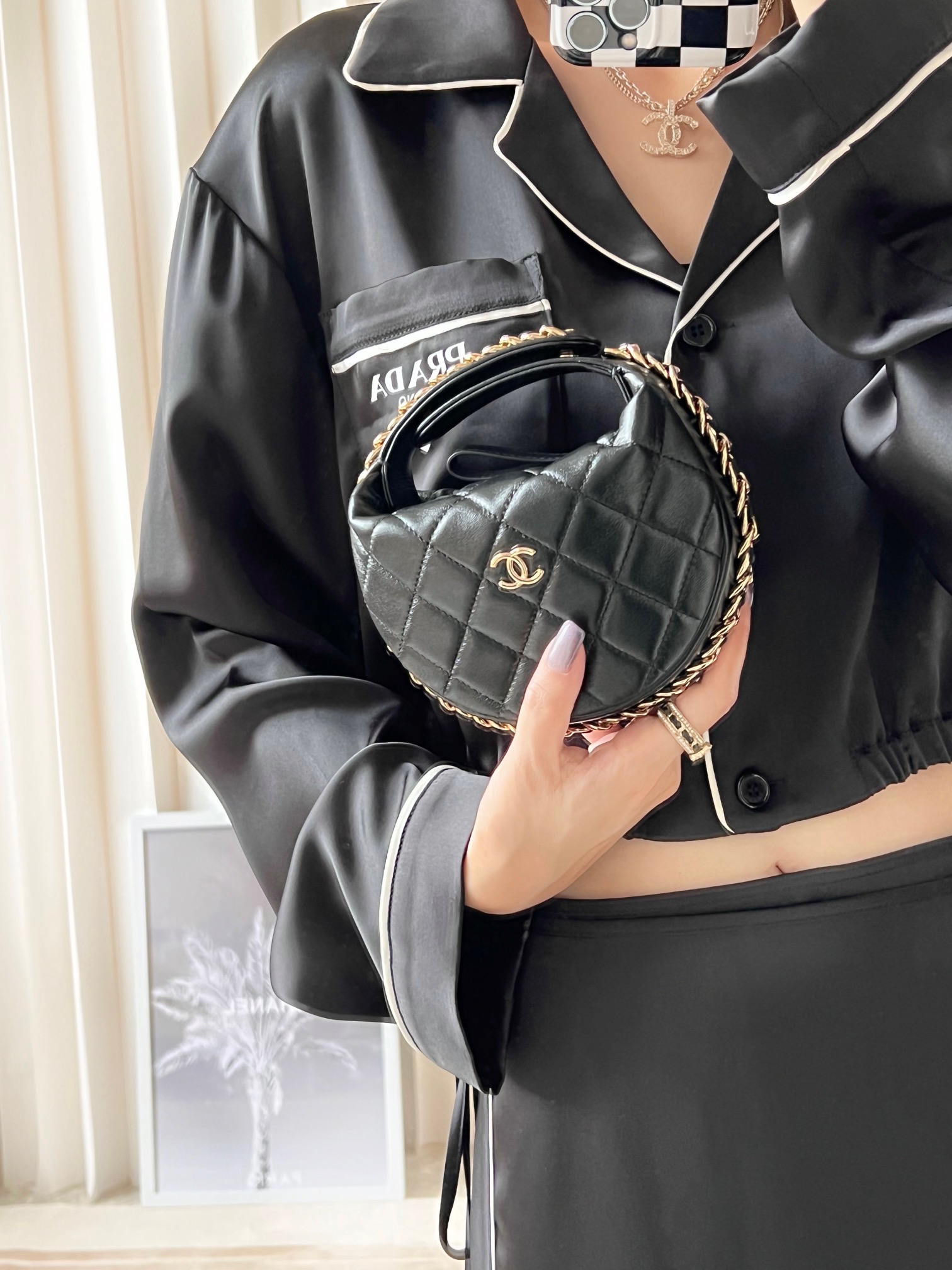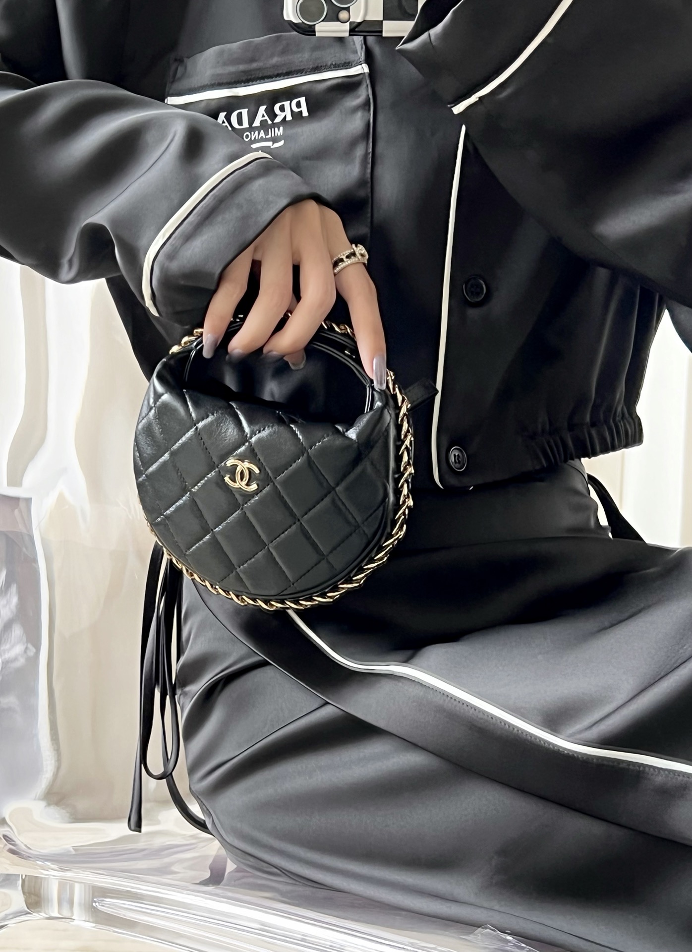𝒑𝒐𝒖𝒄𝒉圆圈链条手拿包 黑色