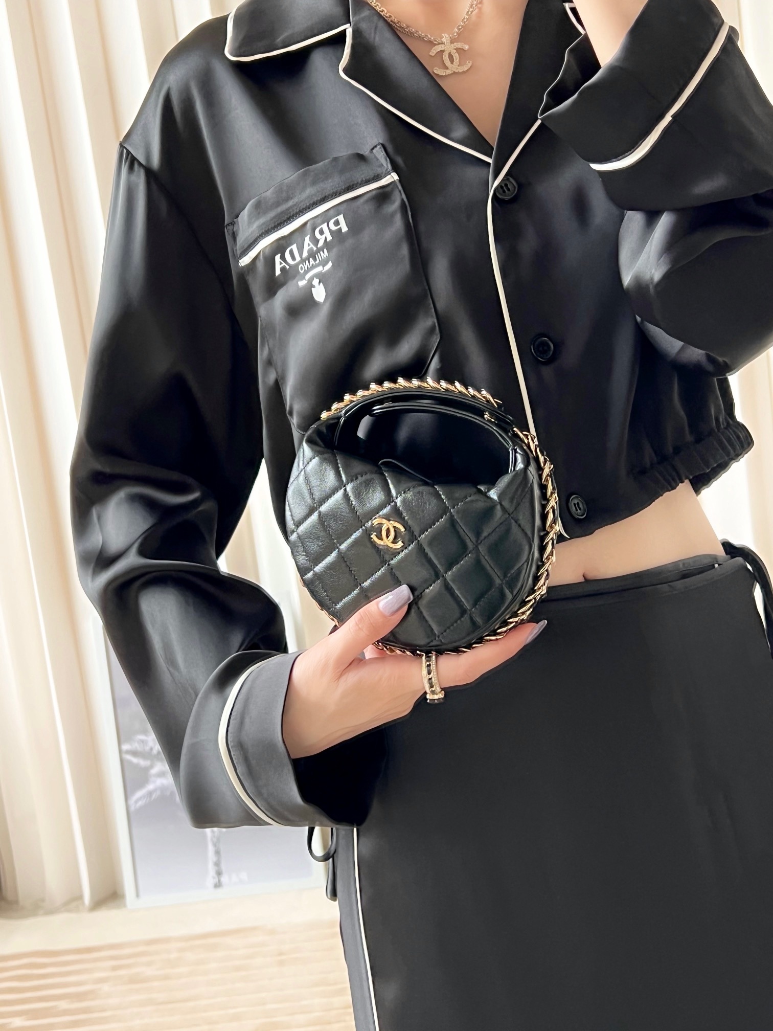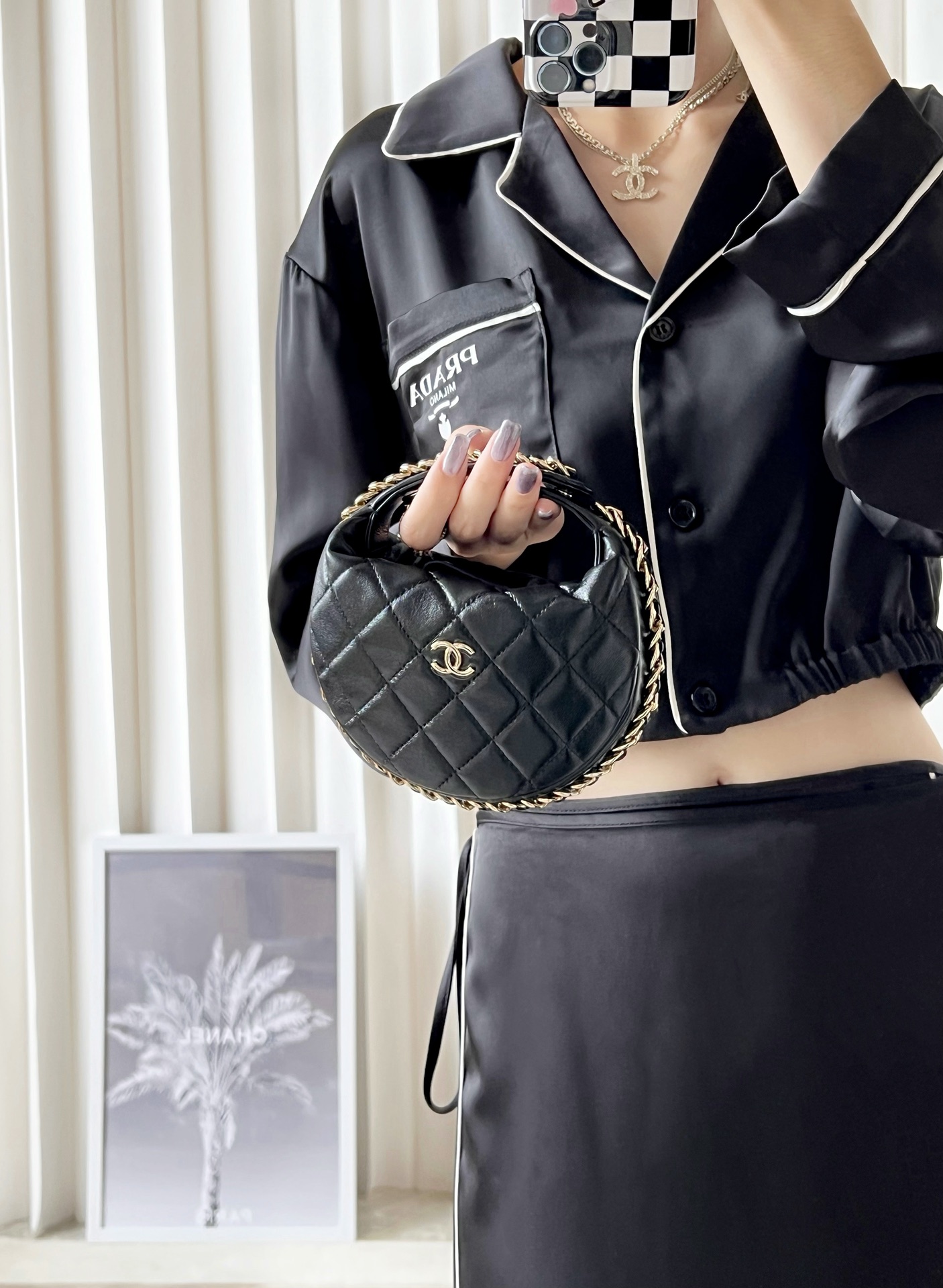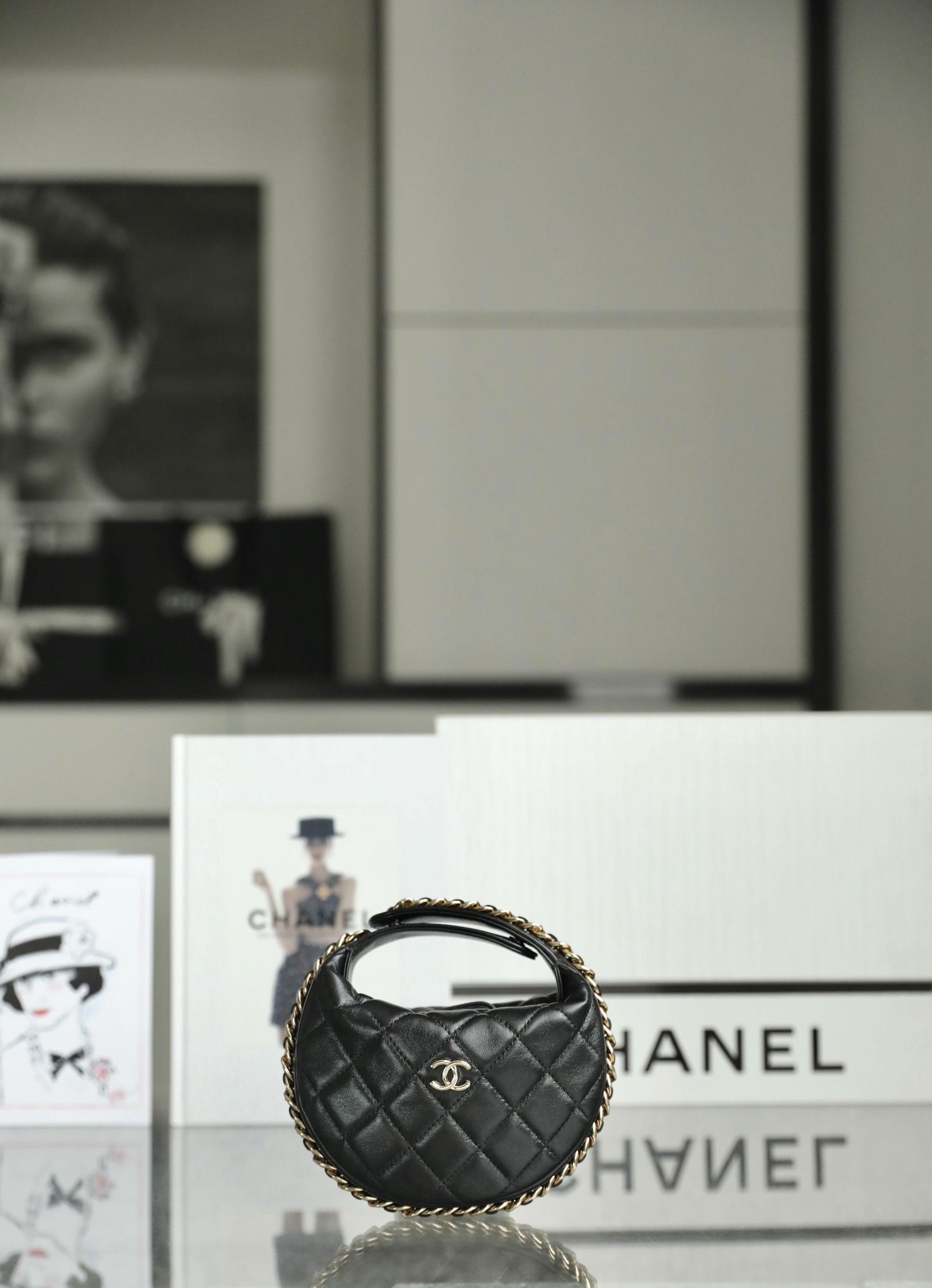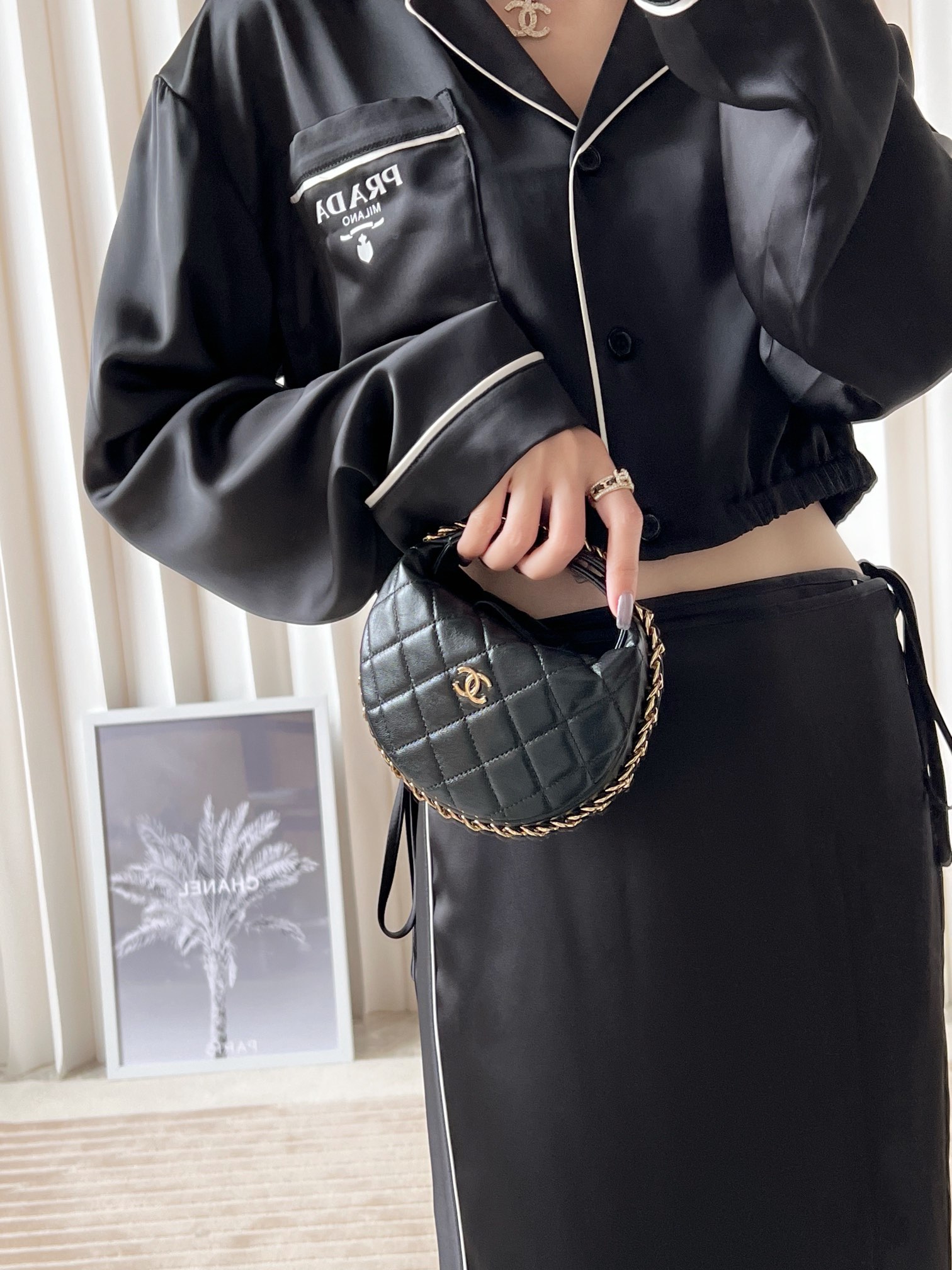 𝒑𝒐𝒖𝒄𝒉圆圈链条手拿包 黑色