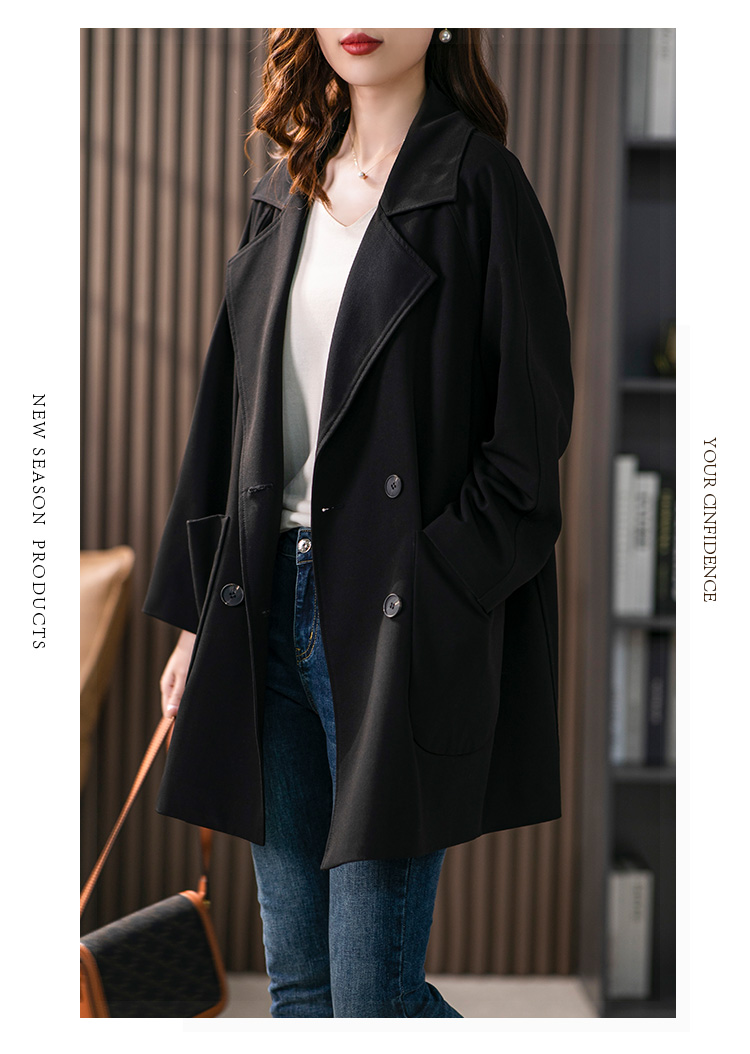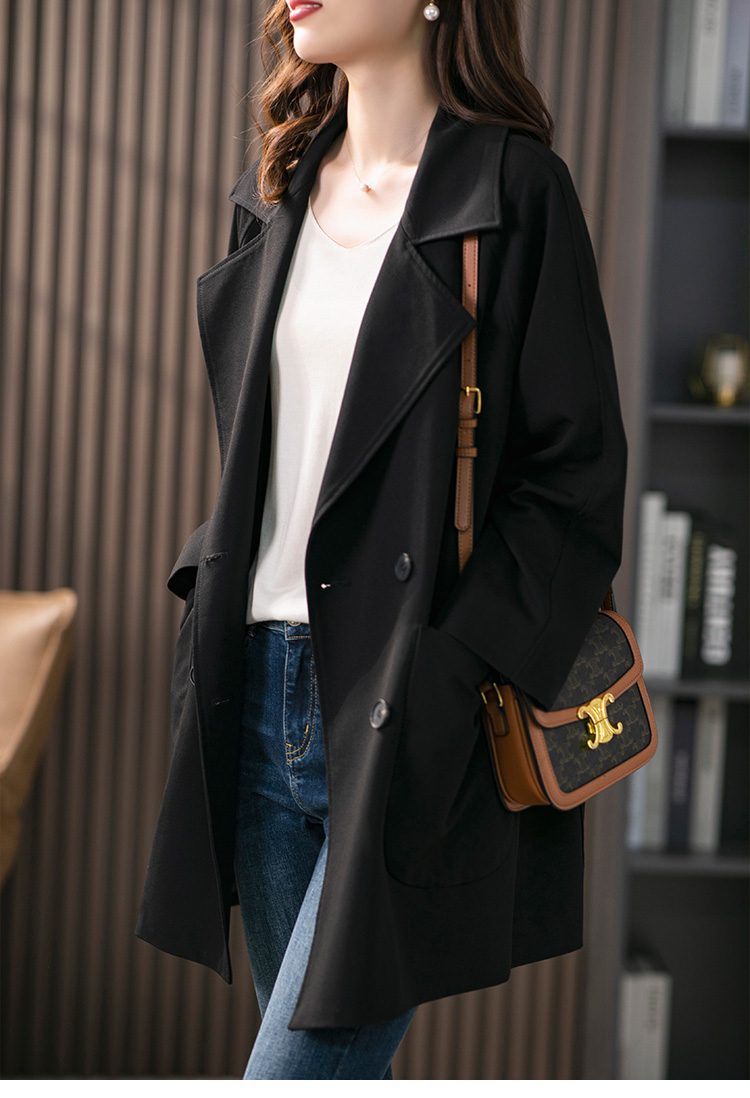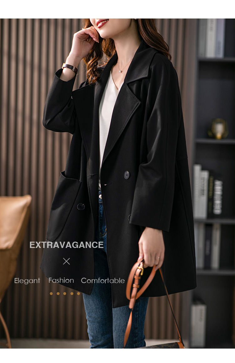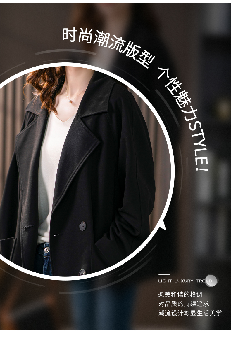 垂感双排扣西装领风衣女中长款2024春季新款韩版宽松气质外套