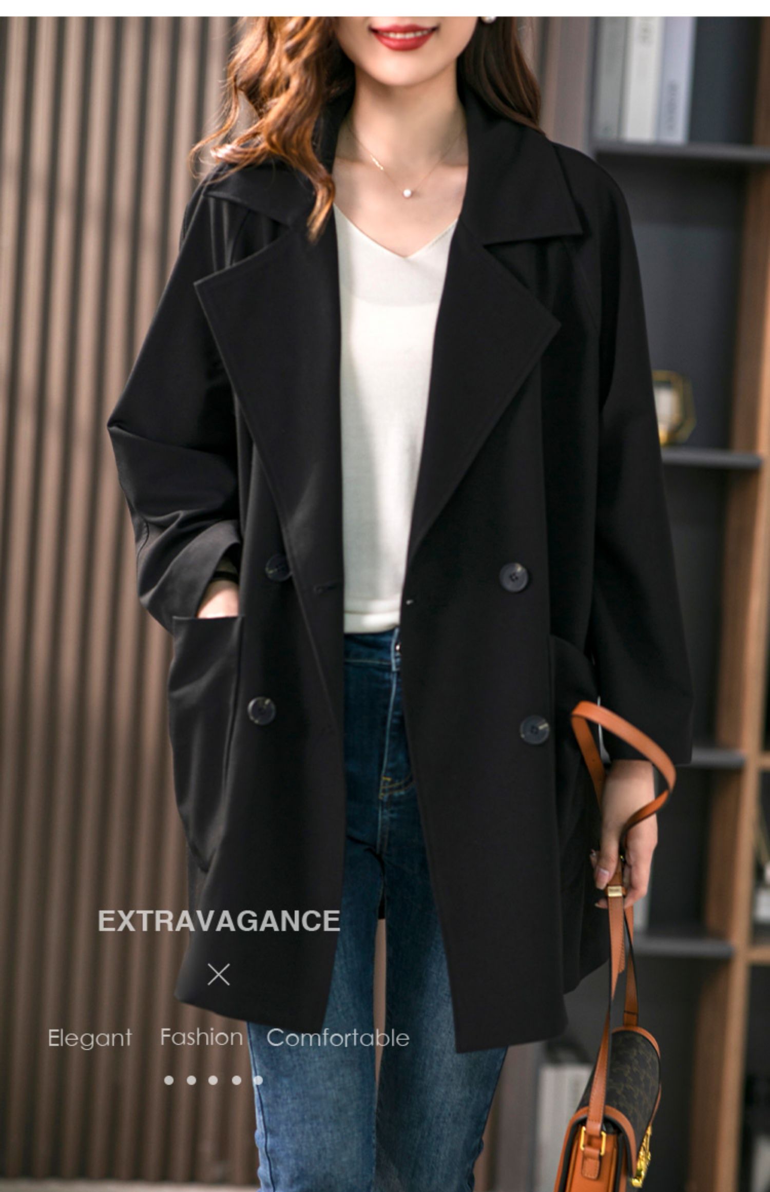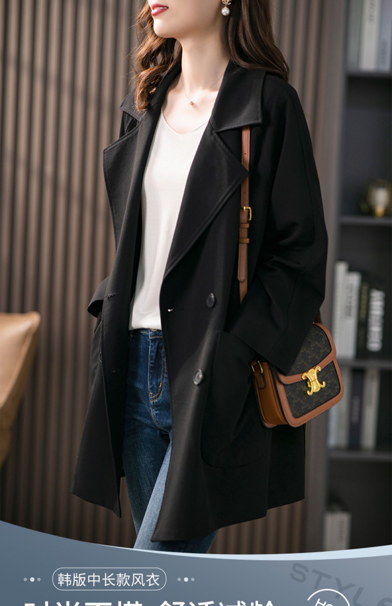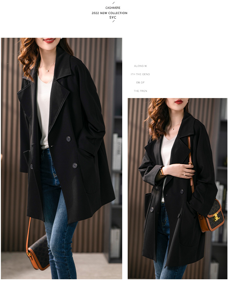 垂感双排扣西装领风衣女中长款2024春季新款韩版宽松气质外套