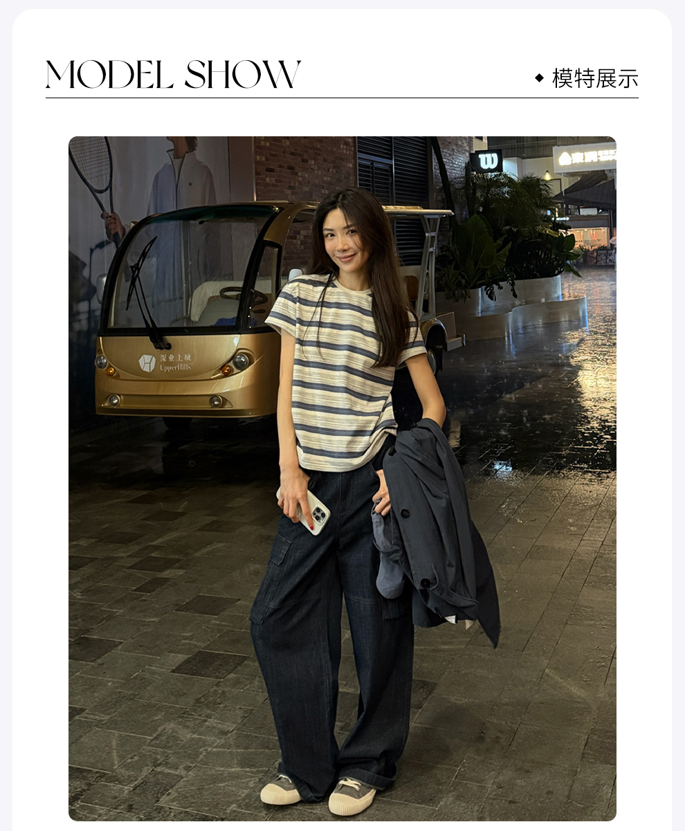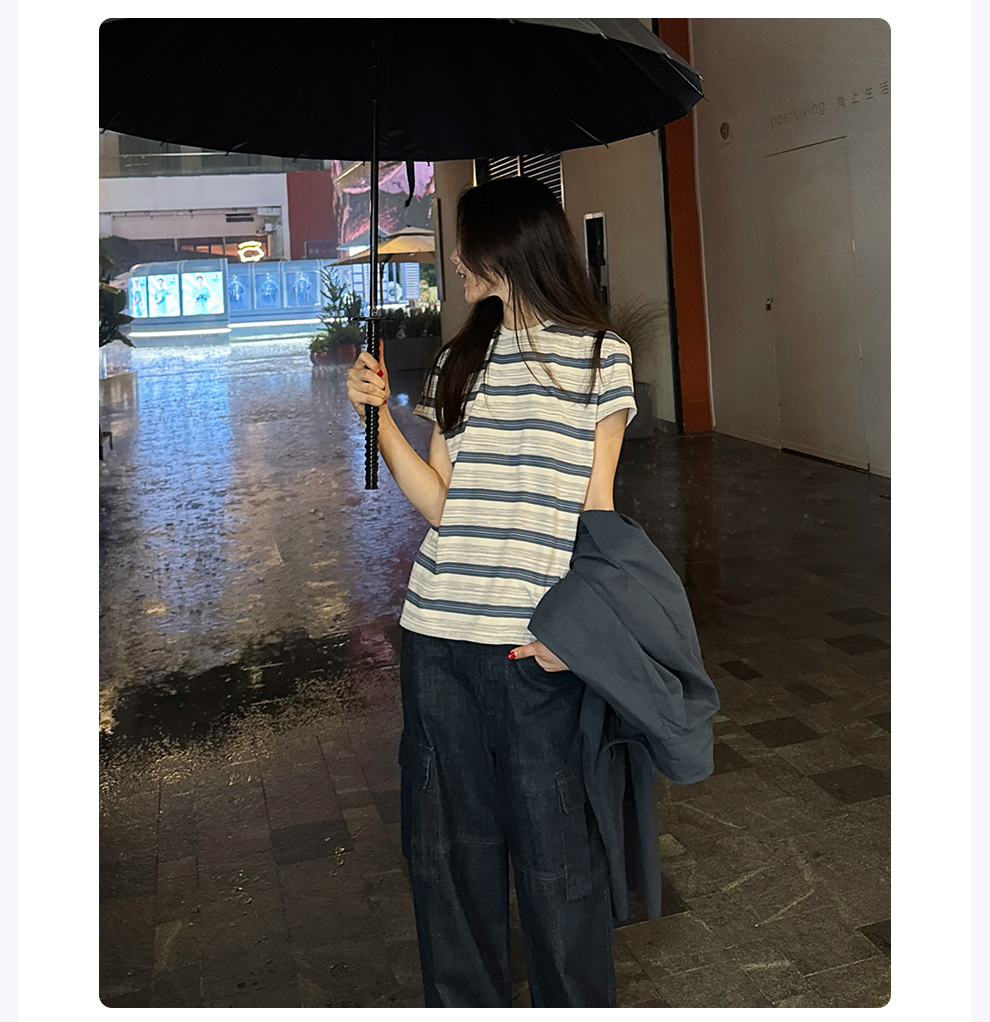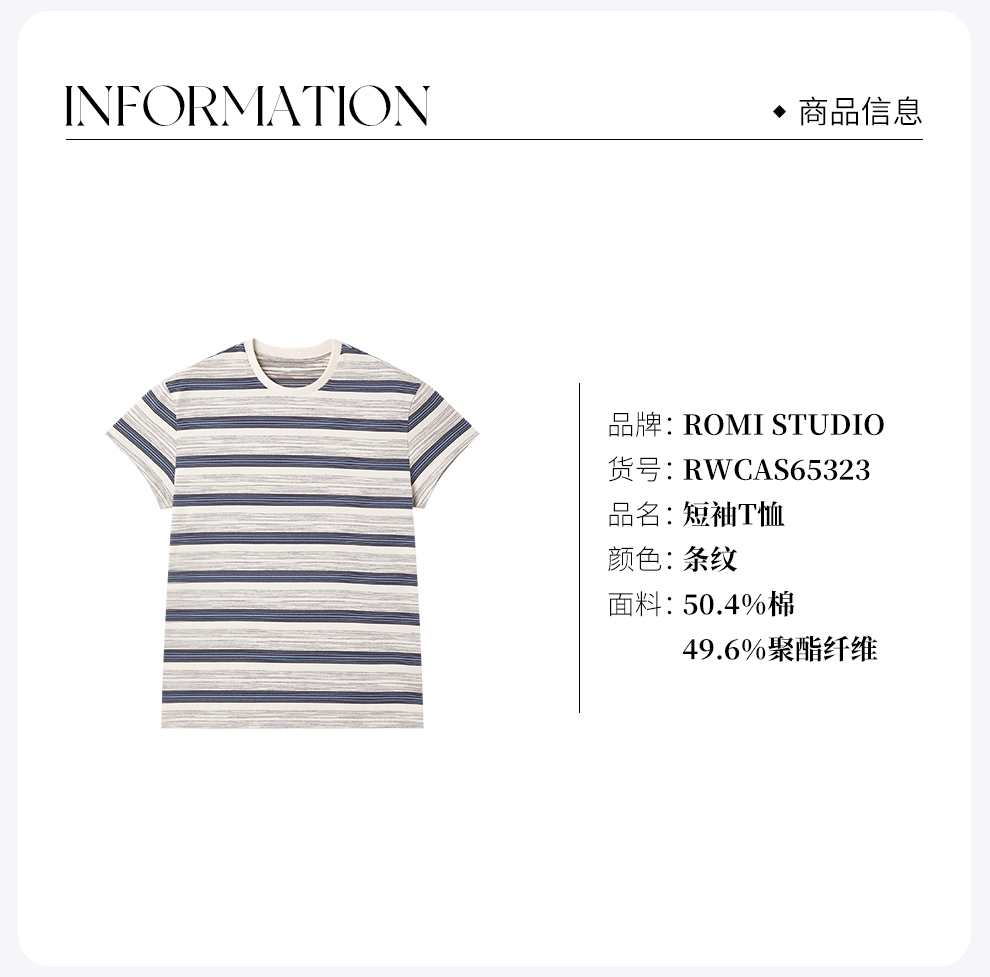 ROMI STUDIO“休闲复古”舒适棉撞色条纹宽松圆领T恤短袖RWCAS65323