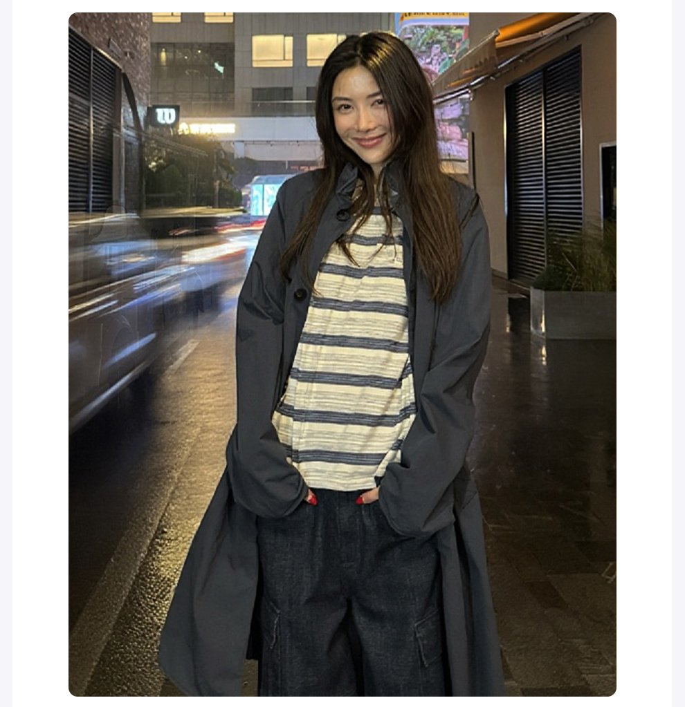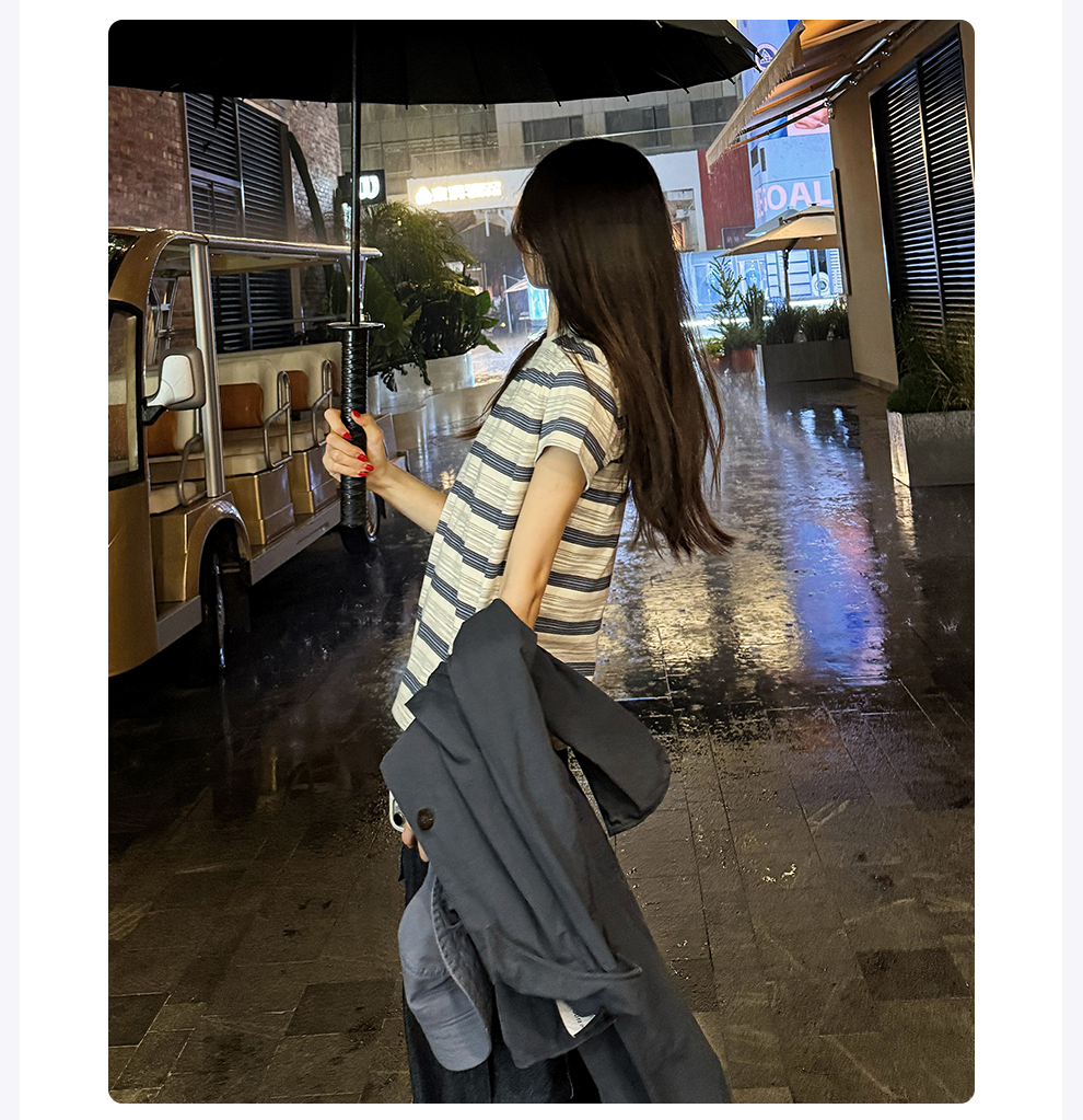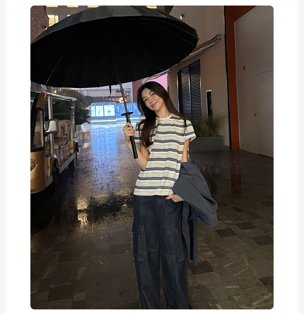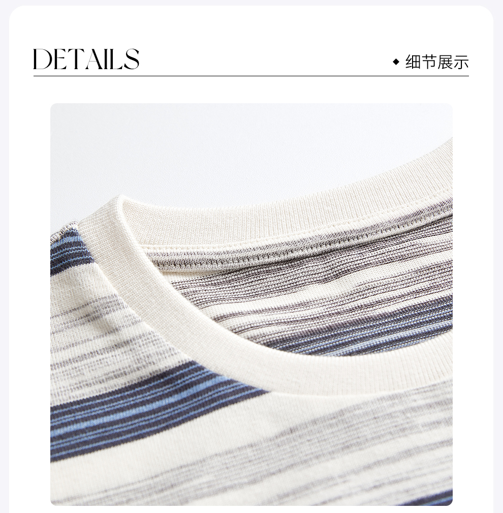 ROMI STUDIO“休闲复古”舒适棉撞色条纹宽松圆领T恤短袖RWCAS65323