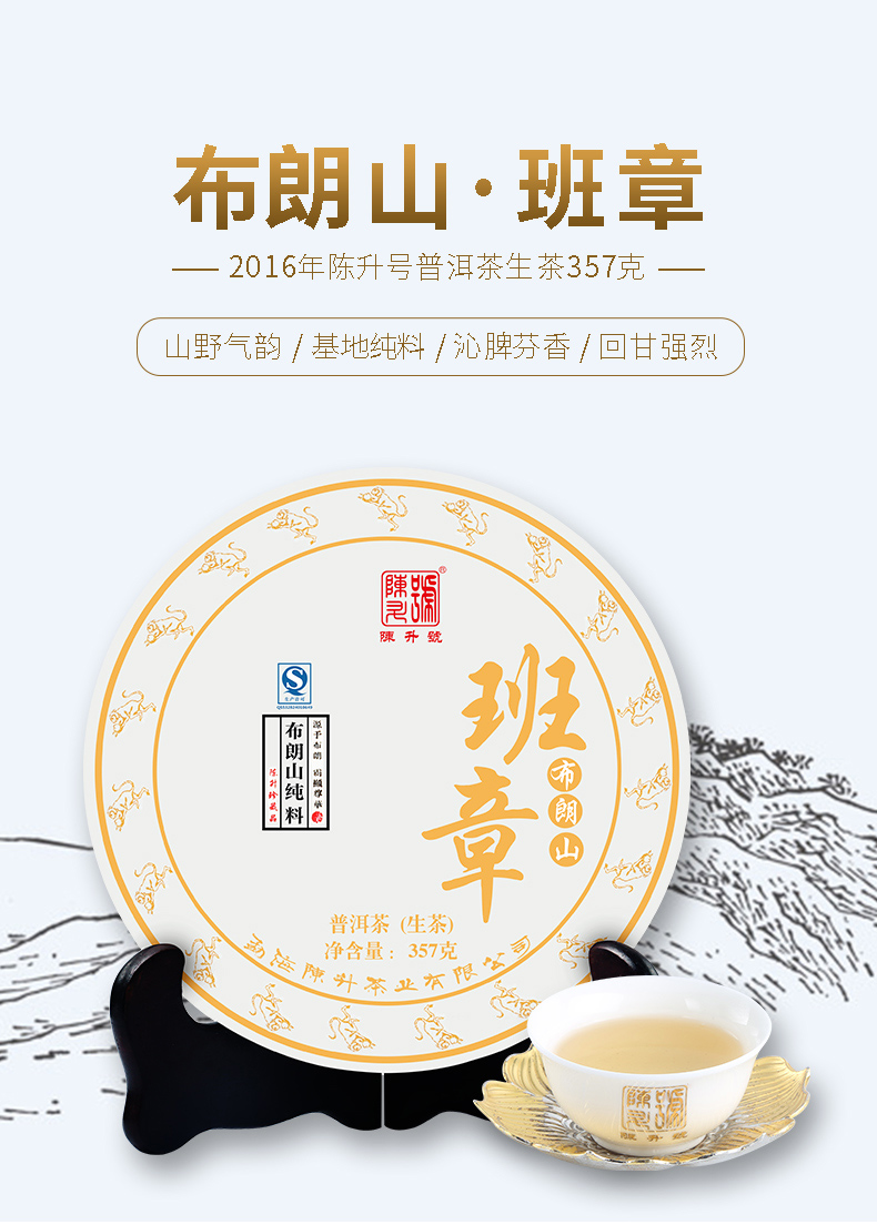 陈升号 2016年布朗山班章357g(生茶)