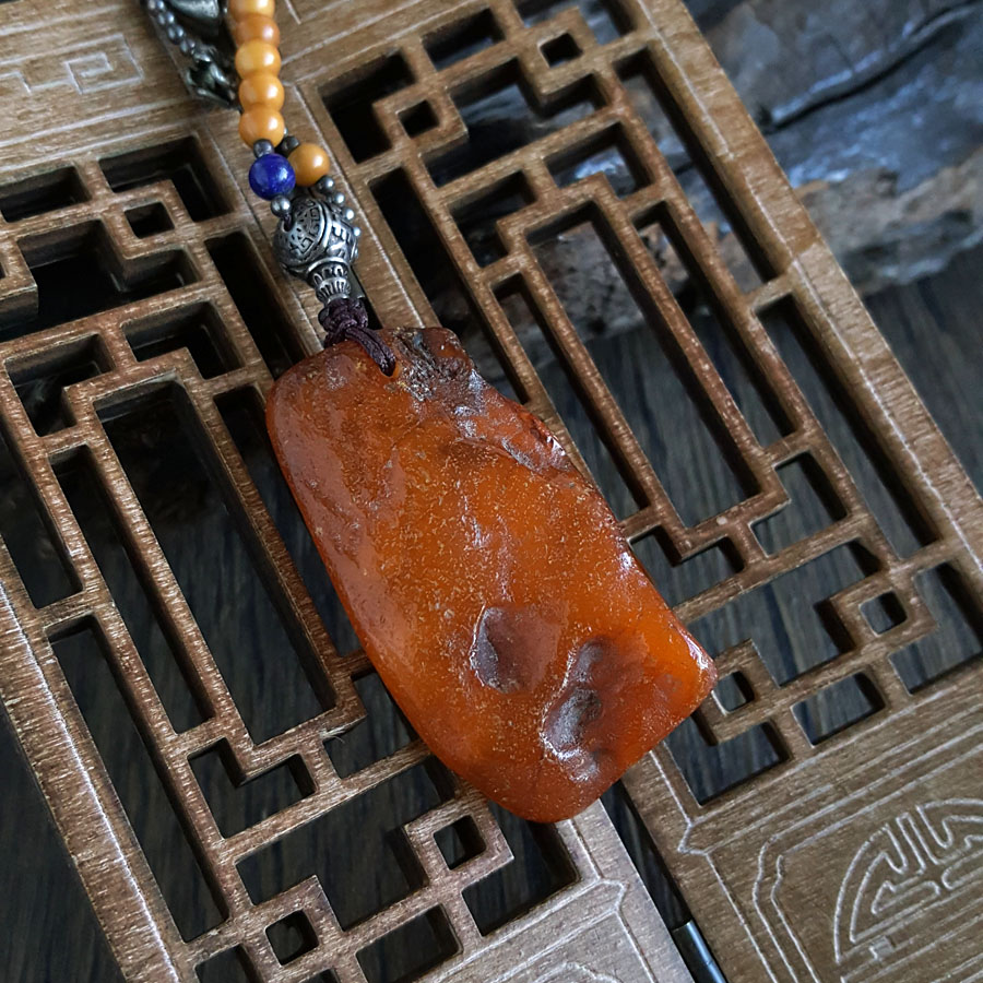 【天然正品】天然无杂裂满蜜鸡油黄随形平安无事牌老蜜蜡珠串项链46.7*24.9*15.5MM(皆取最大值)中性281125NJM06 特价