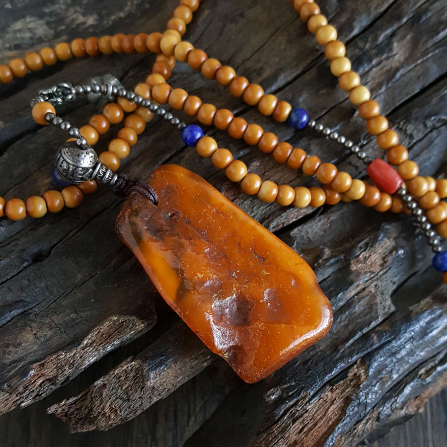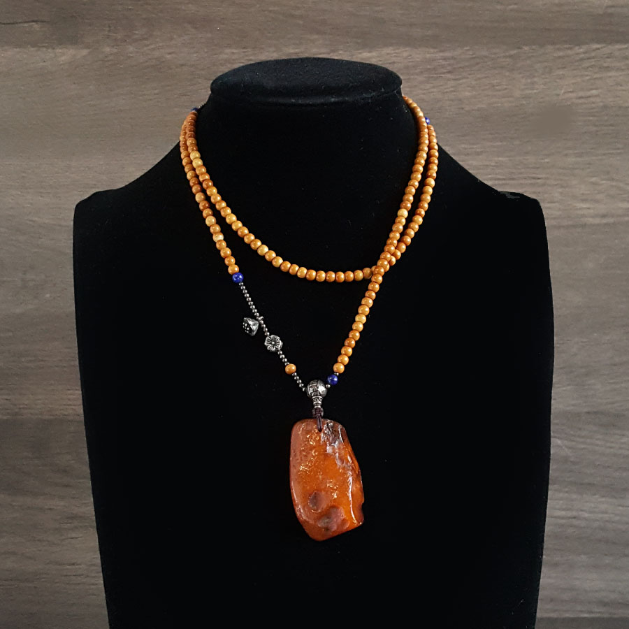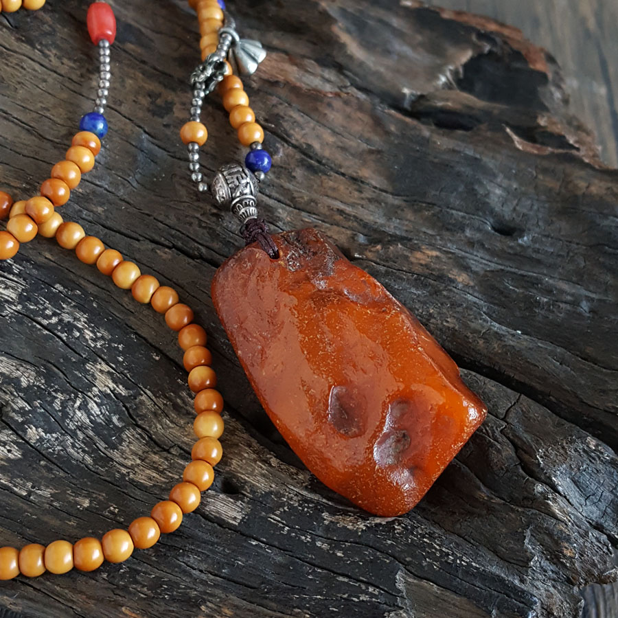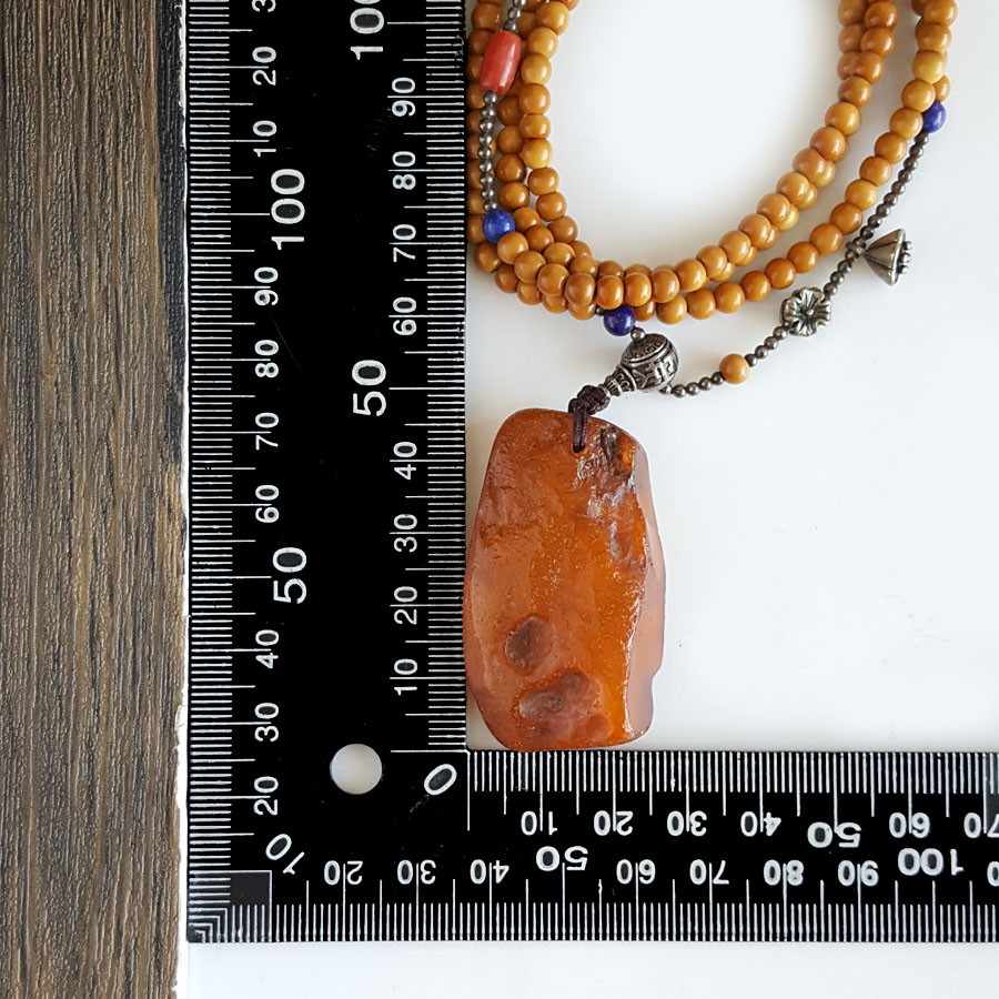 名称 | 天然无杂裂满蜜鸡油黄随形平安无事牌老蜜蜡珠串项链 |
