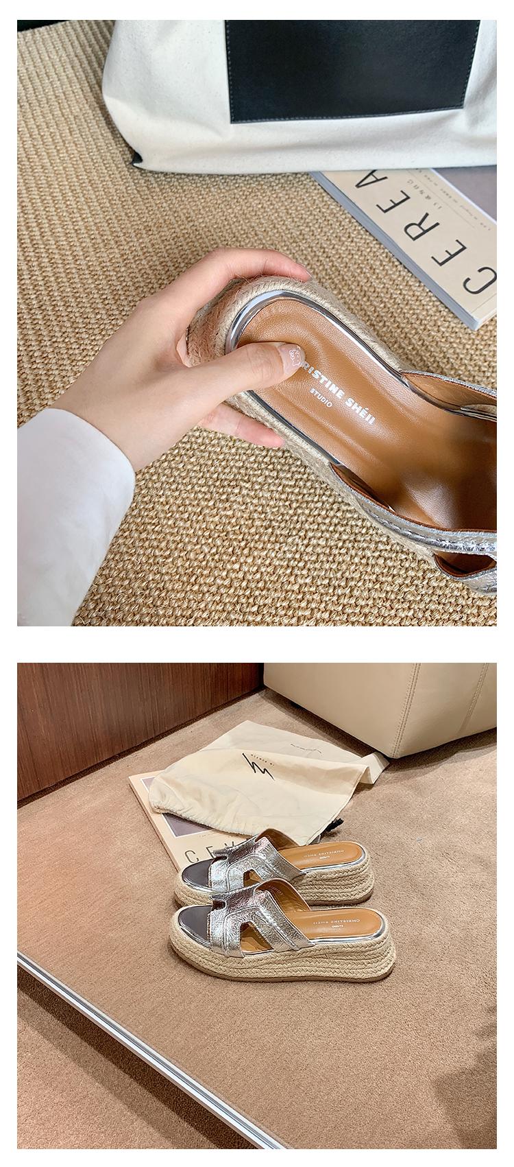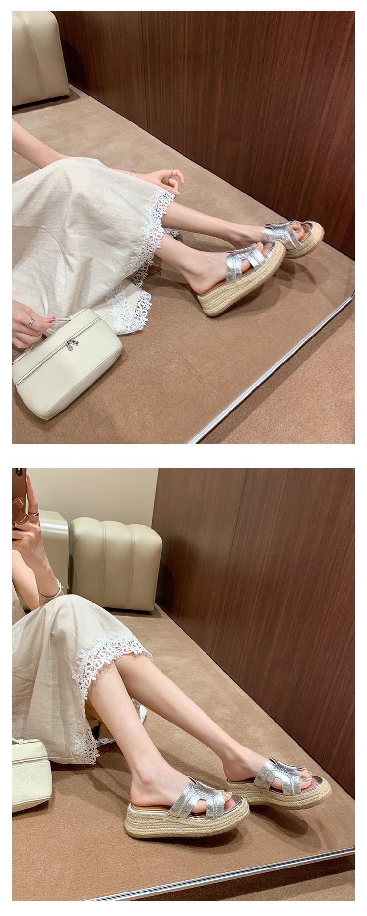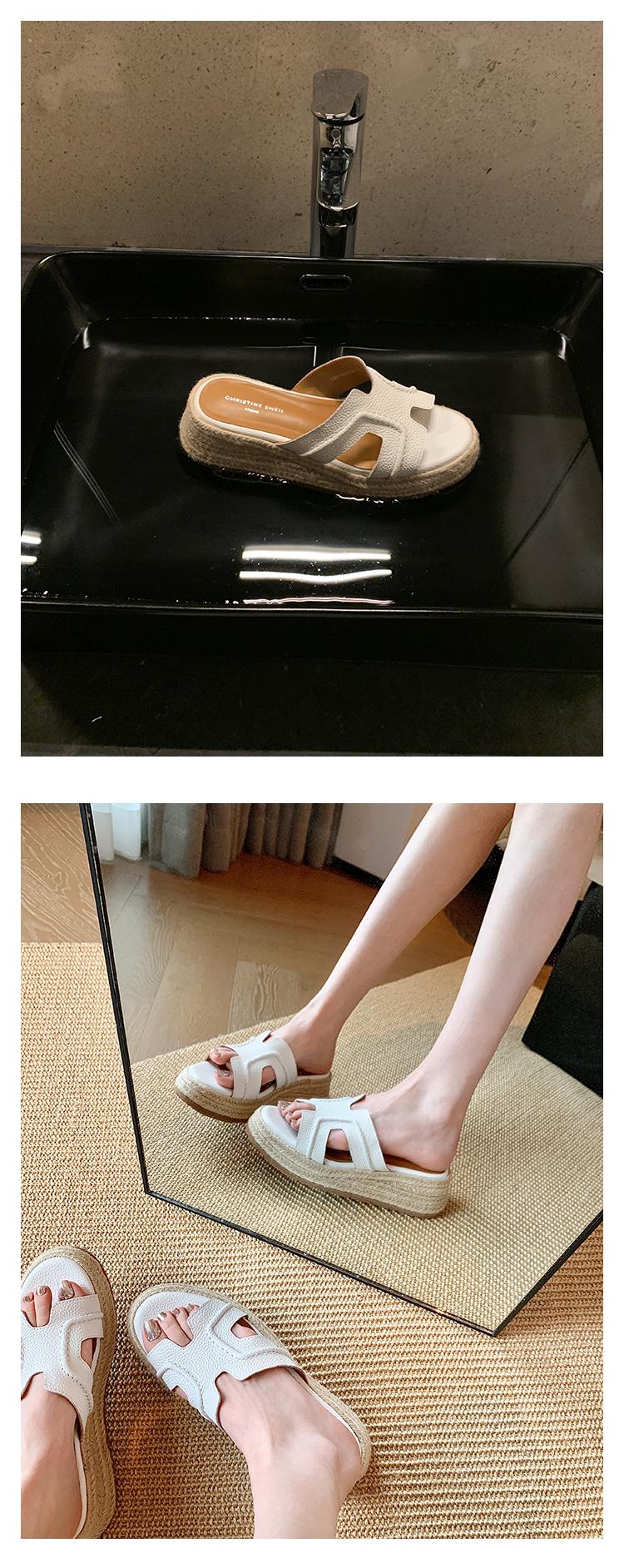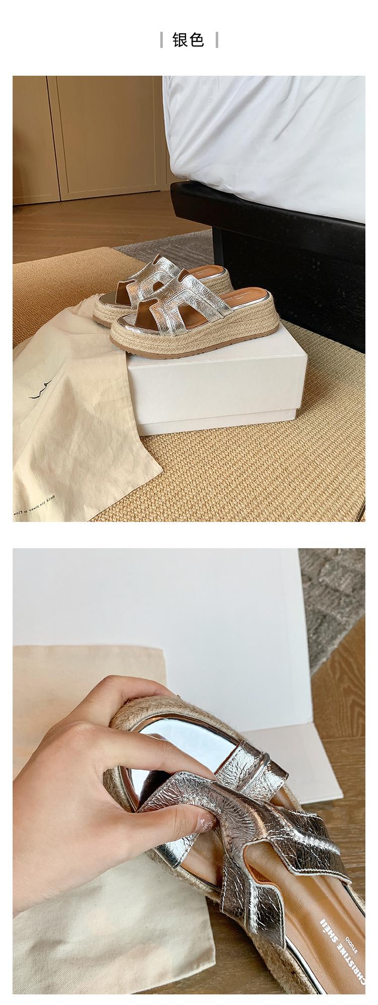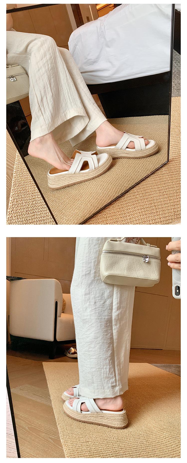 苏茵茵 一字型休闲厚款女拖鞋夏季厚底坡跟小香风沙滩鞋E5215052