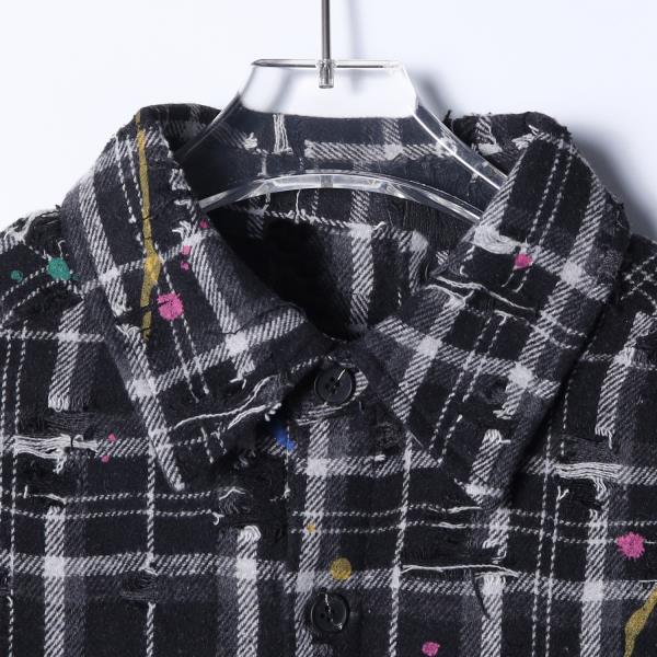 SDSA男士秋冬新款痞帅男装潮牌撞色格纹磨破泼墨翻领衬衫百搭宽松