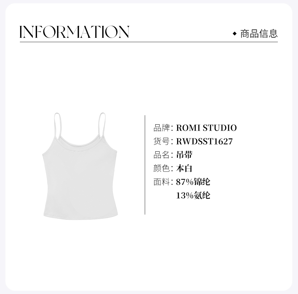 ROMI STUDIO“简约基础”轻薄舒适高弹修身针织吊带背心 RWCSST2536