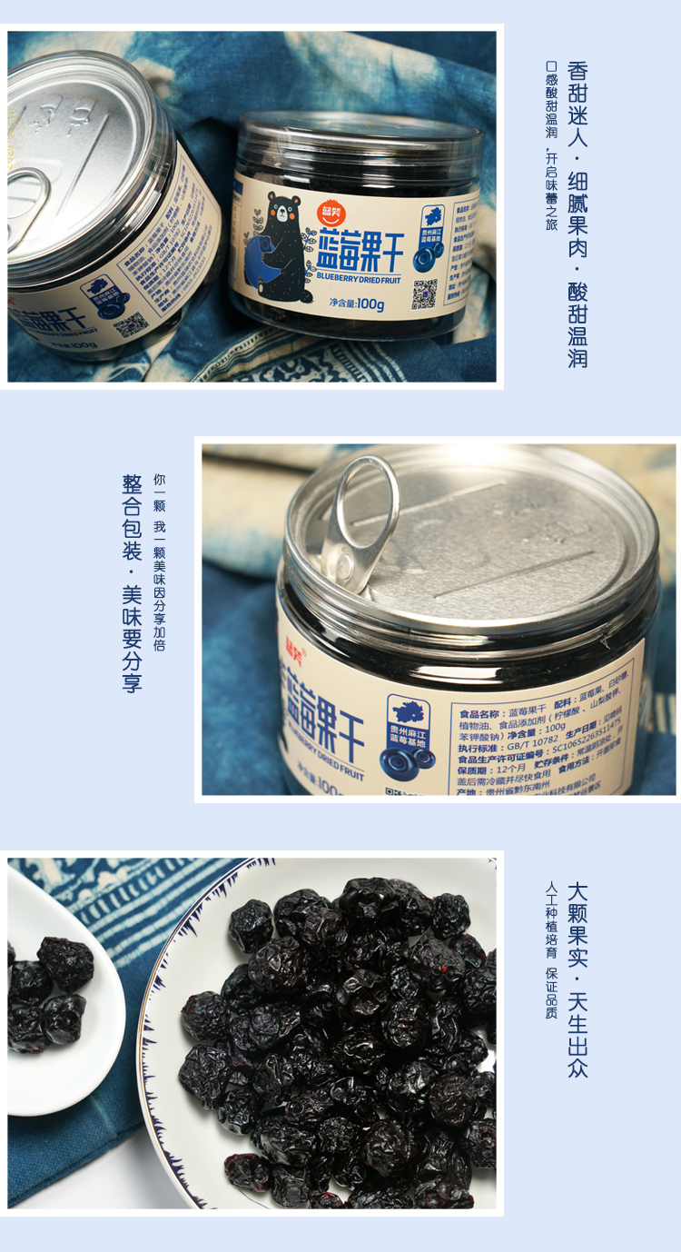 贵州黔东南蓝笑蓝莓果干100g*4罐礼盒装