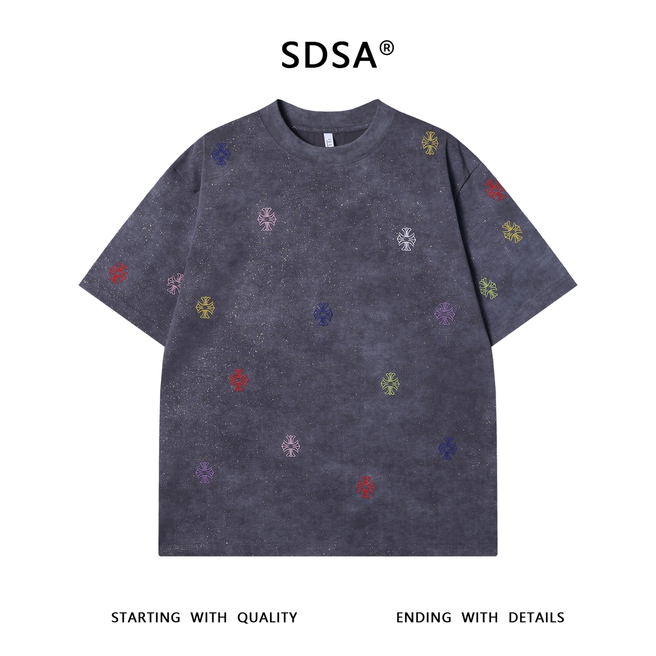 T3214夏季高级感新款韩系细闪彩色十字刺绣圆领短袖T恤百搭简约上衣