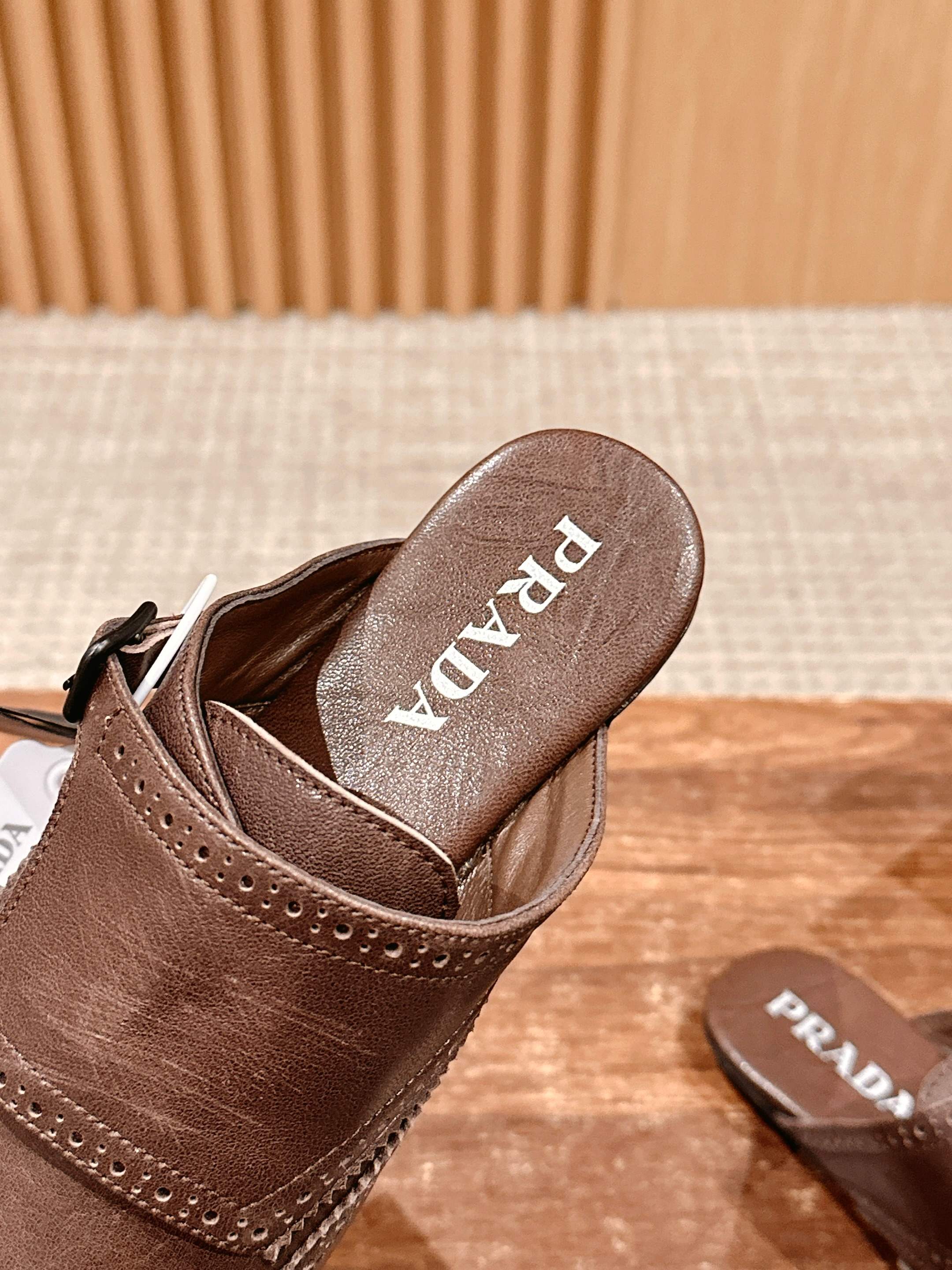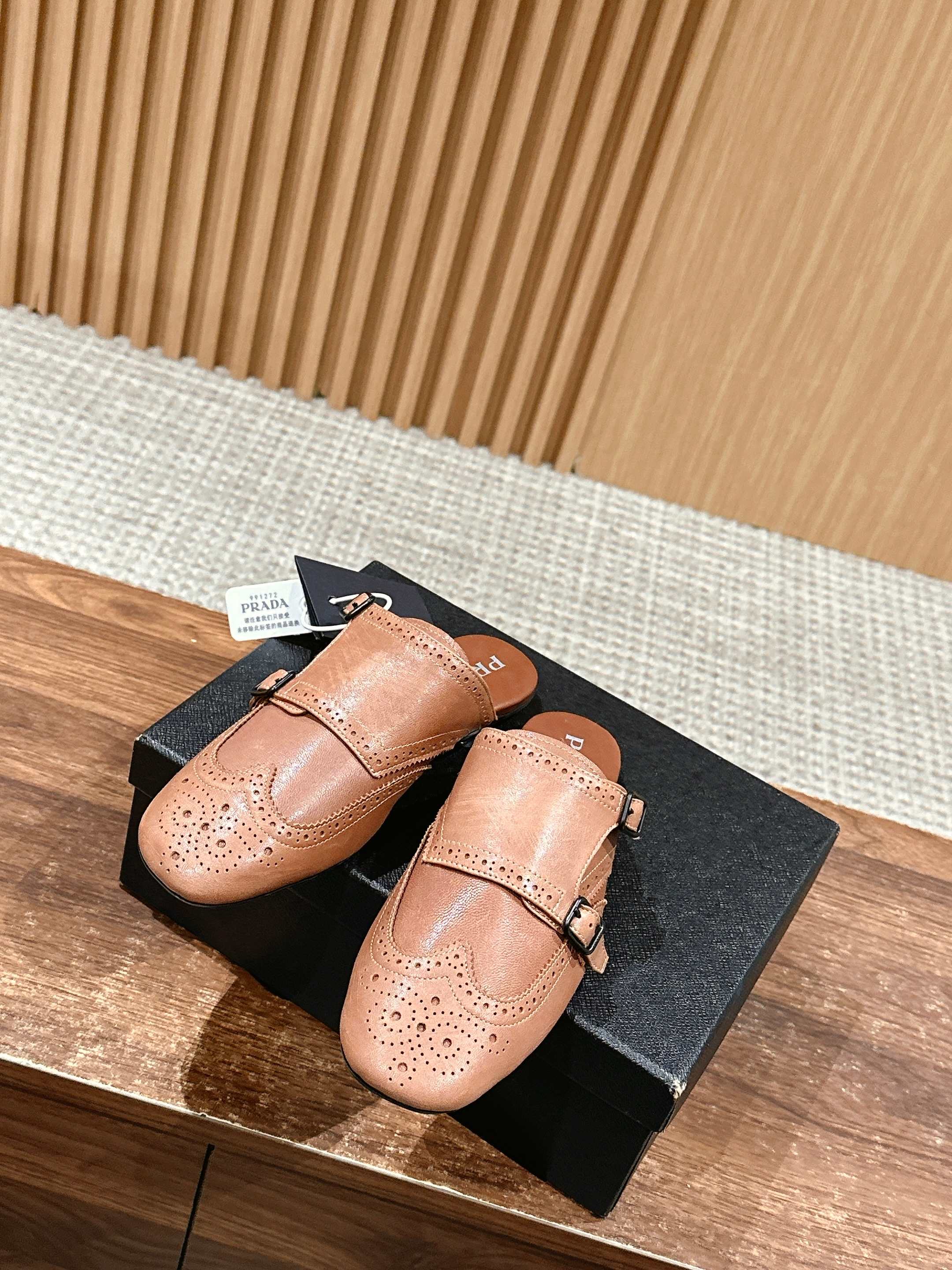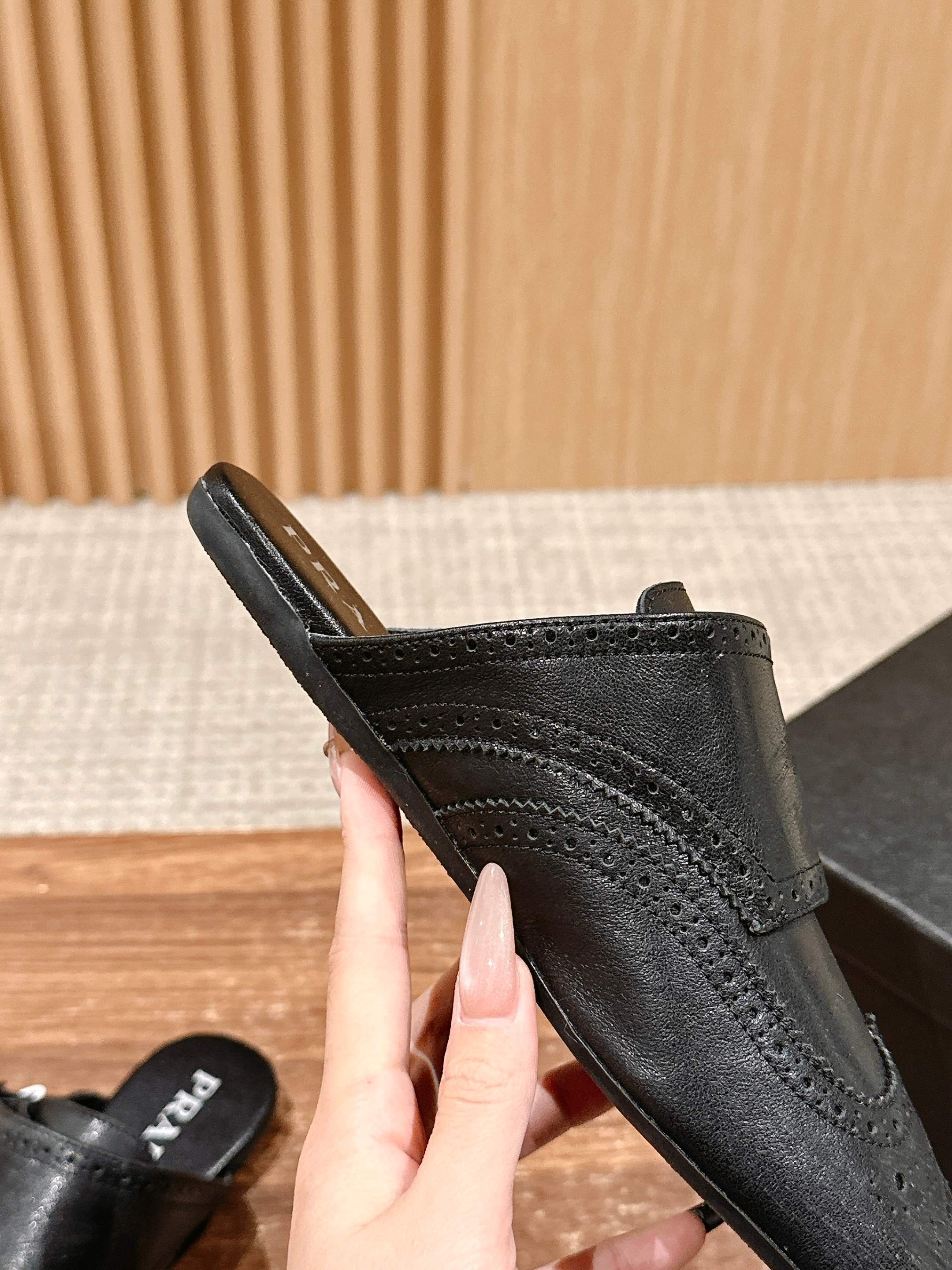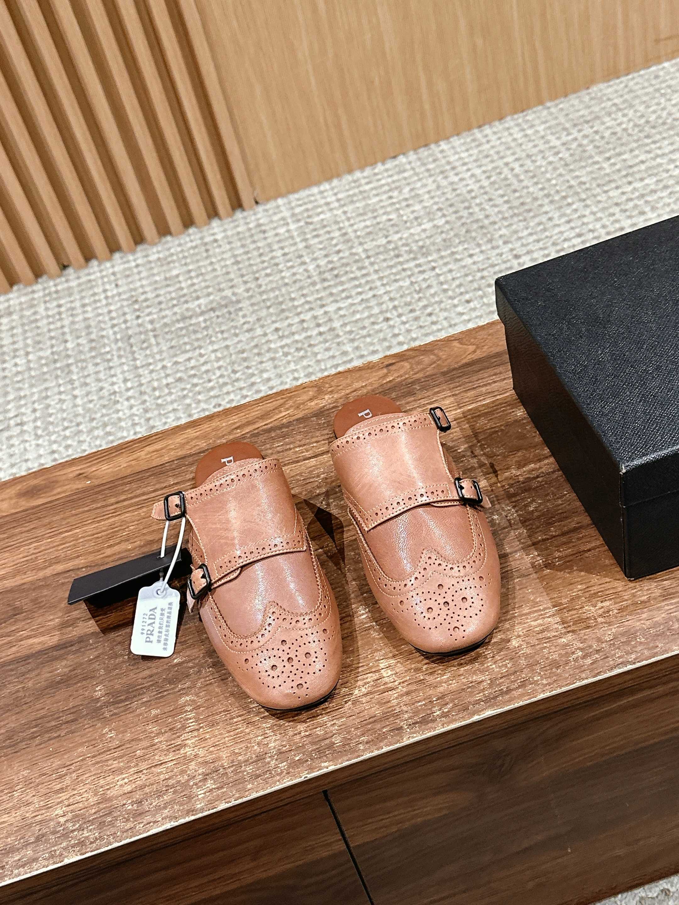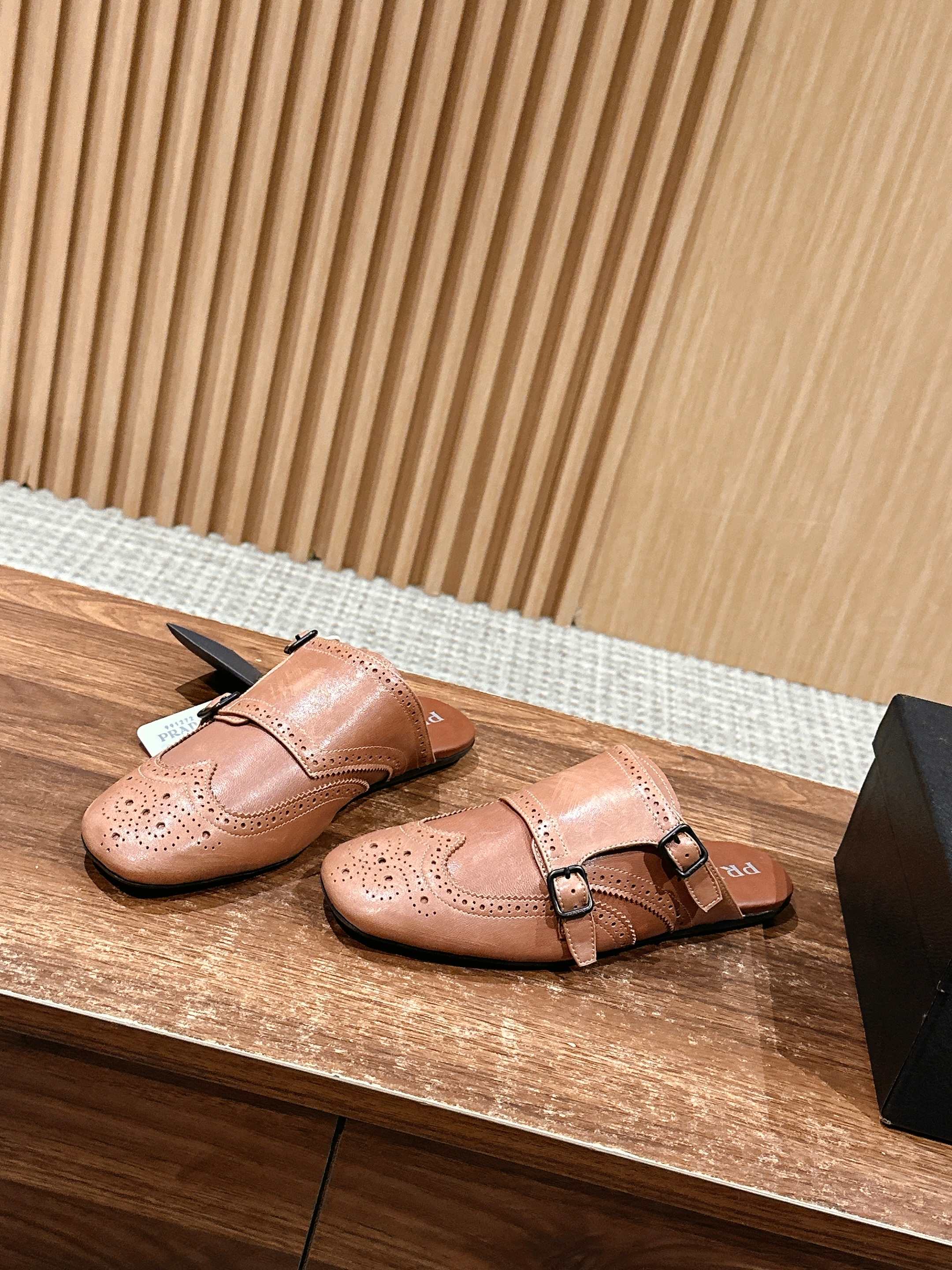 𝐏𝐑𝐀𝐃𝐀 𝟮𝟬𝟮𝟱/𝐬𝐬普拉达走秀款复古流苏鞋布洛克雕花一脚蹬半拖