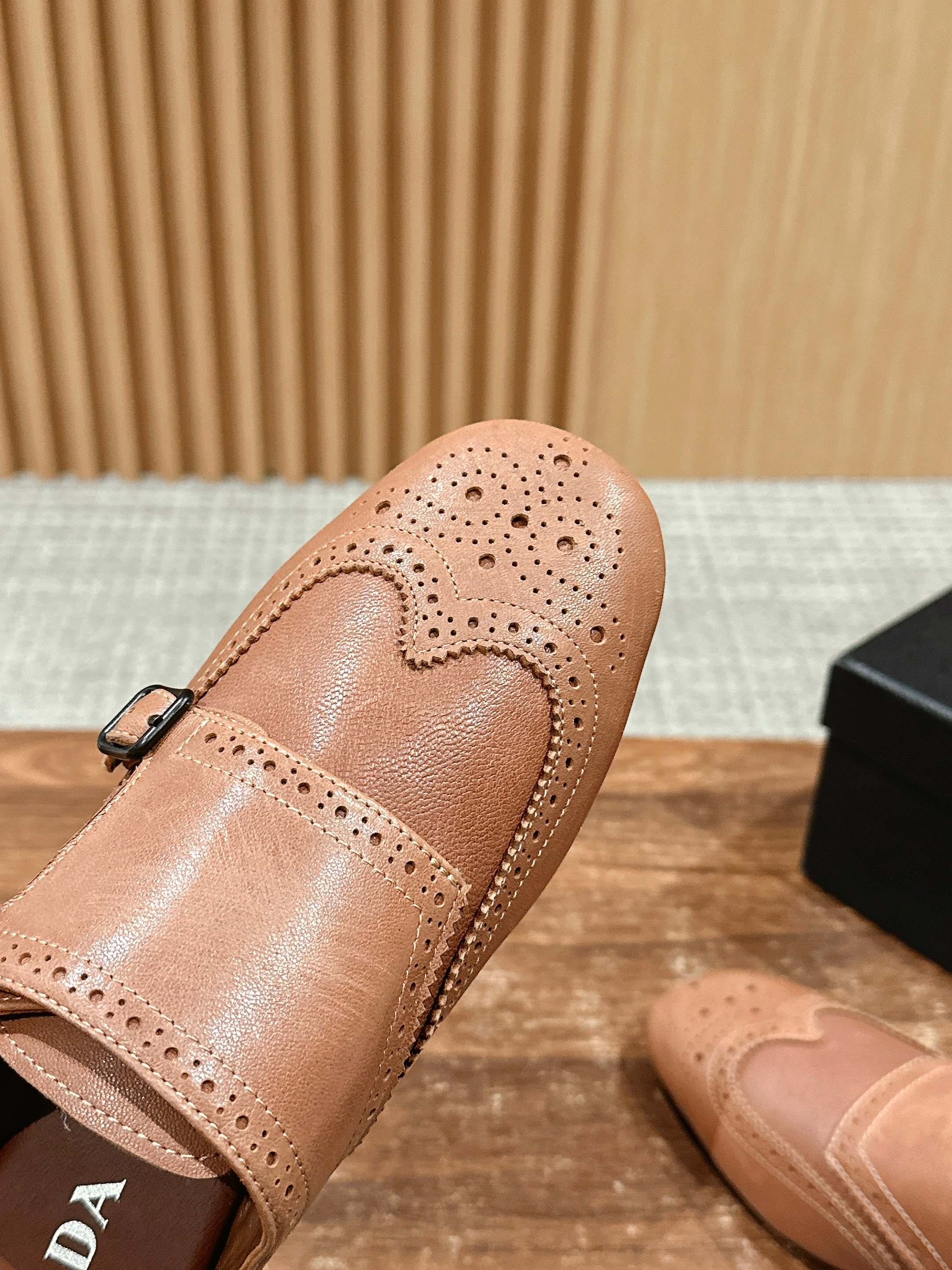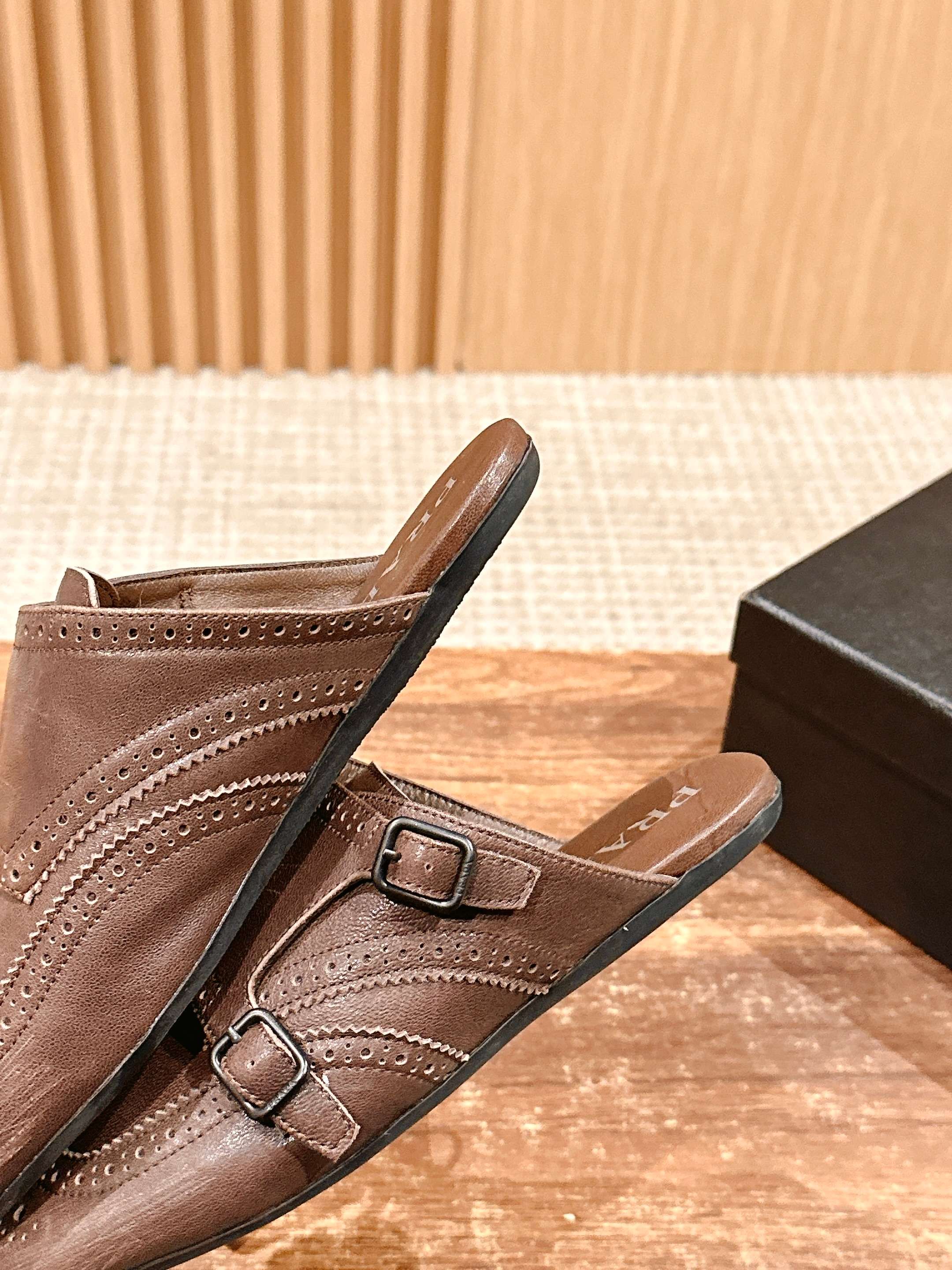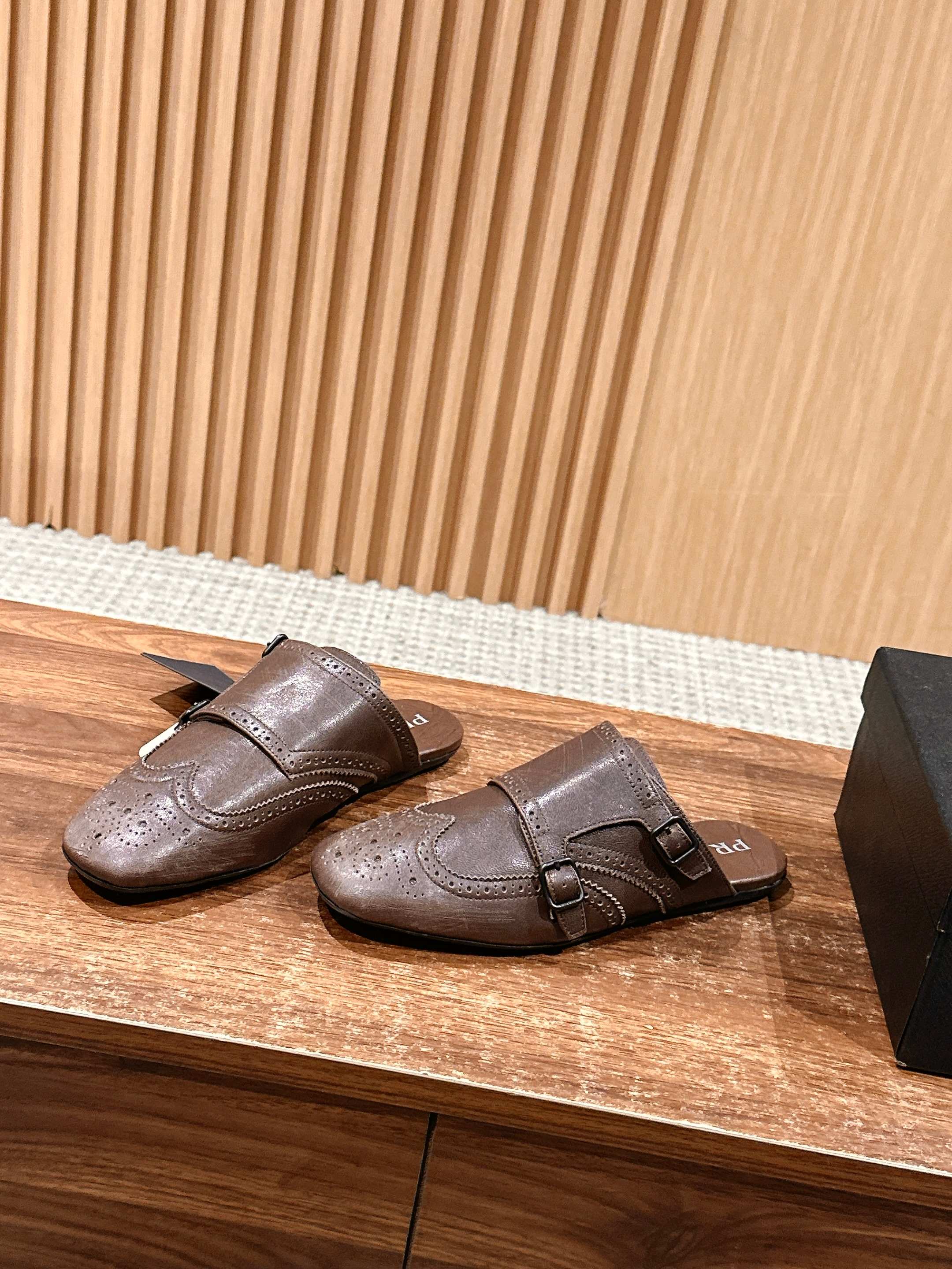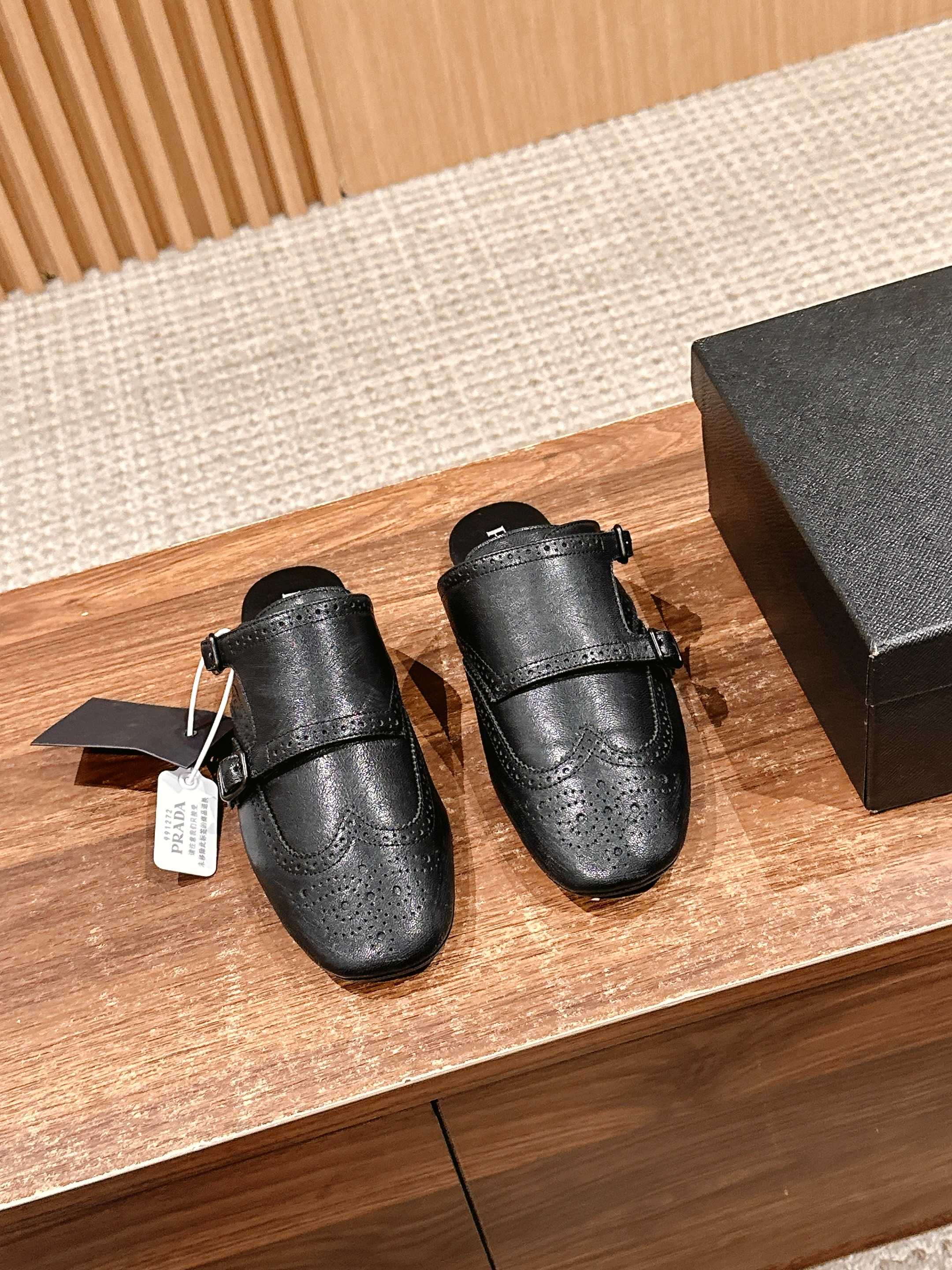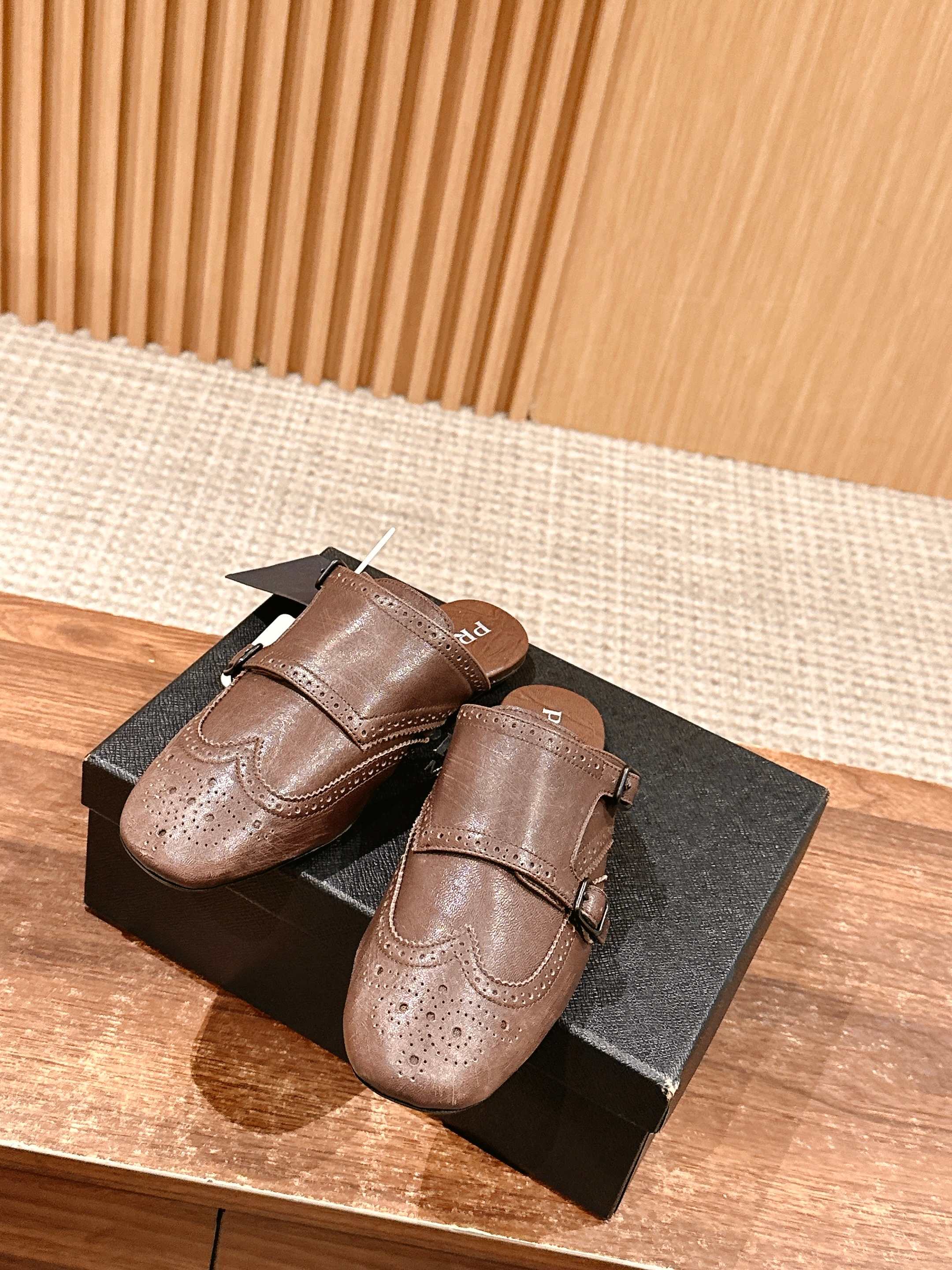 𝐏𝐑𝐀𝐃𝐀 𝟮𝟬𝟮𝟱/𝐬𝐬普拉达走秀款复古流苏鞋布洛克雕花一脚蹬半拖