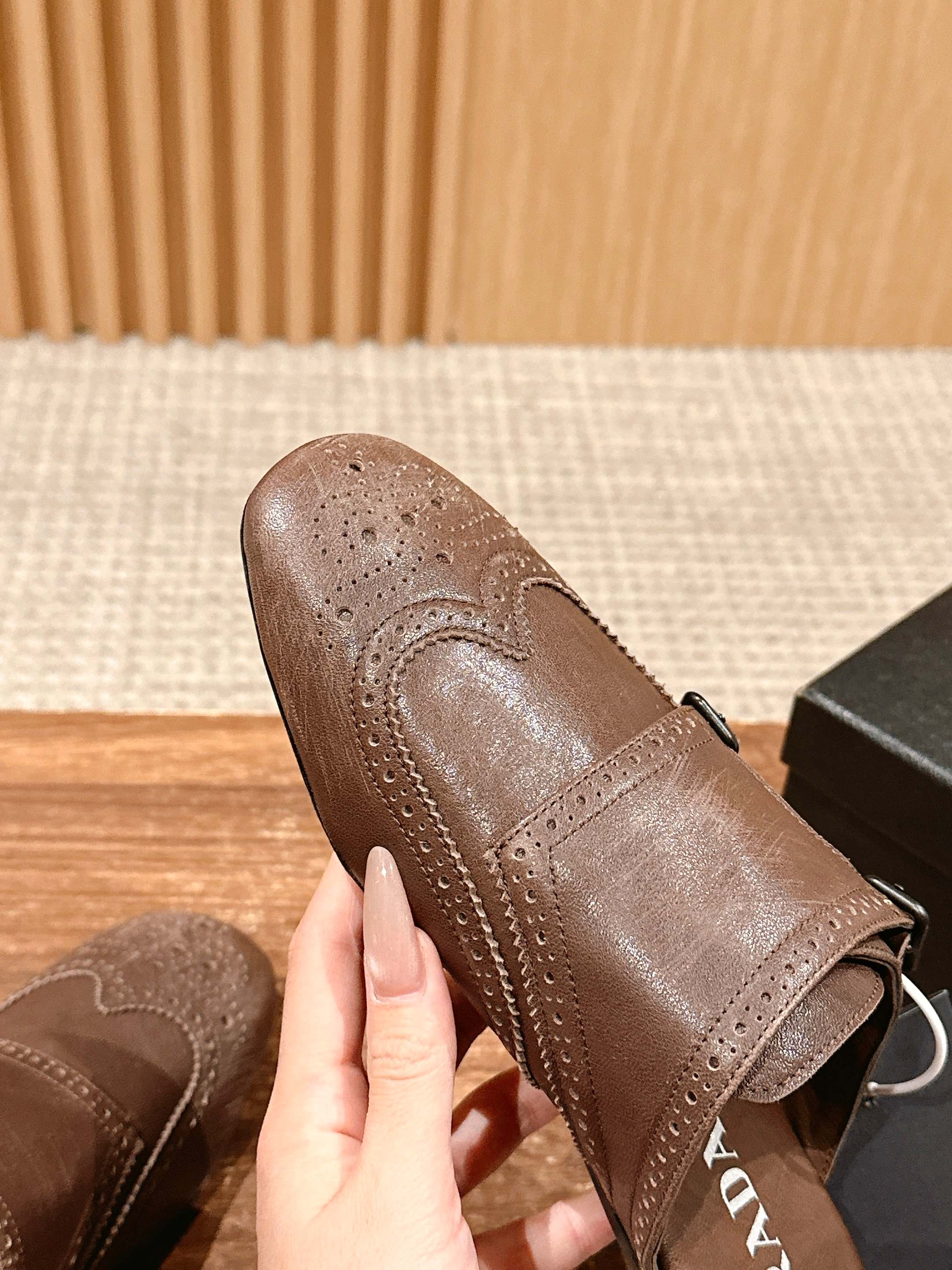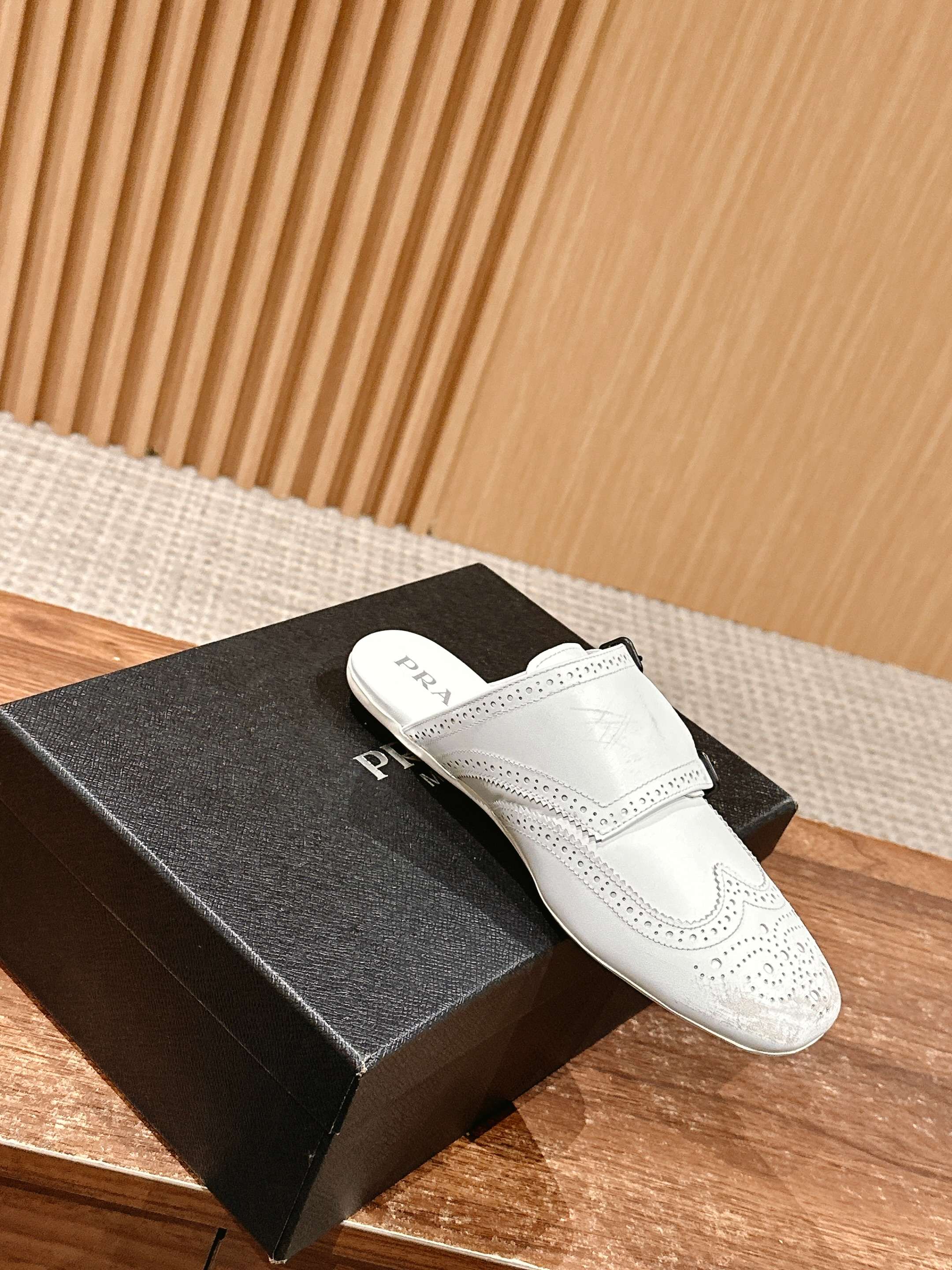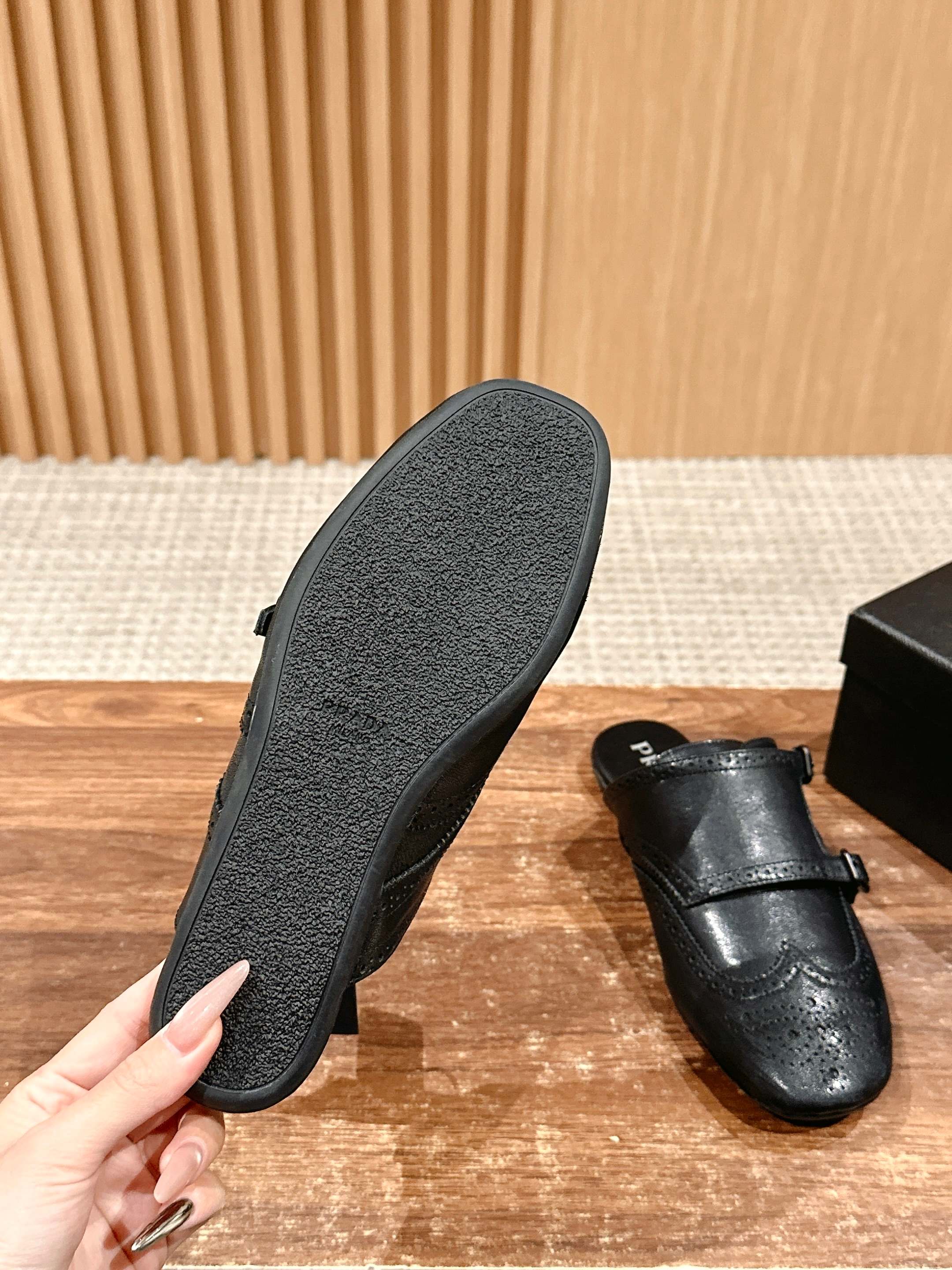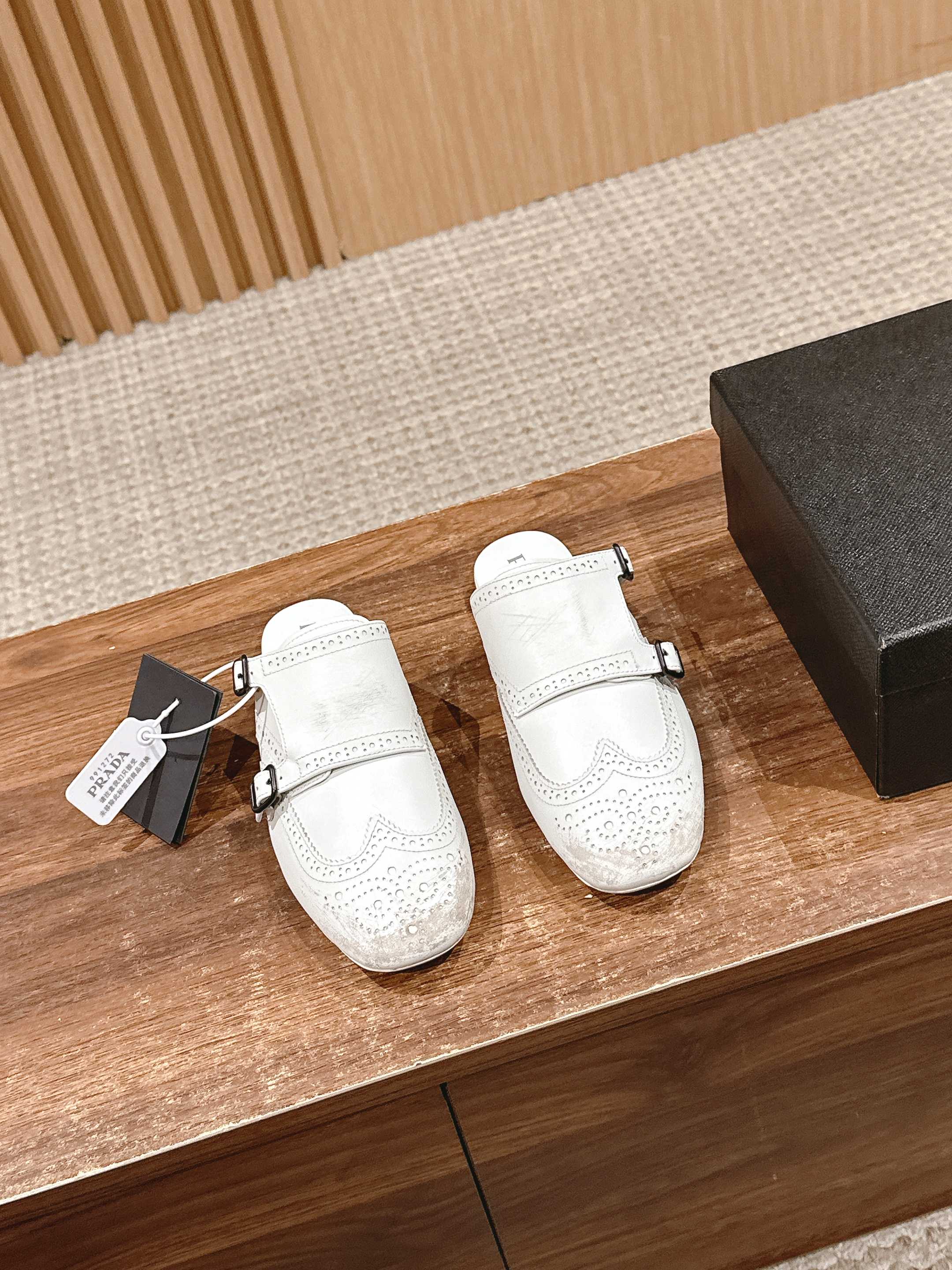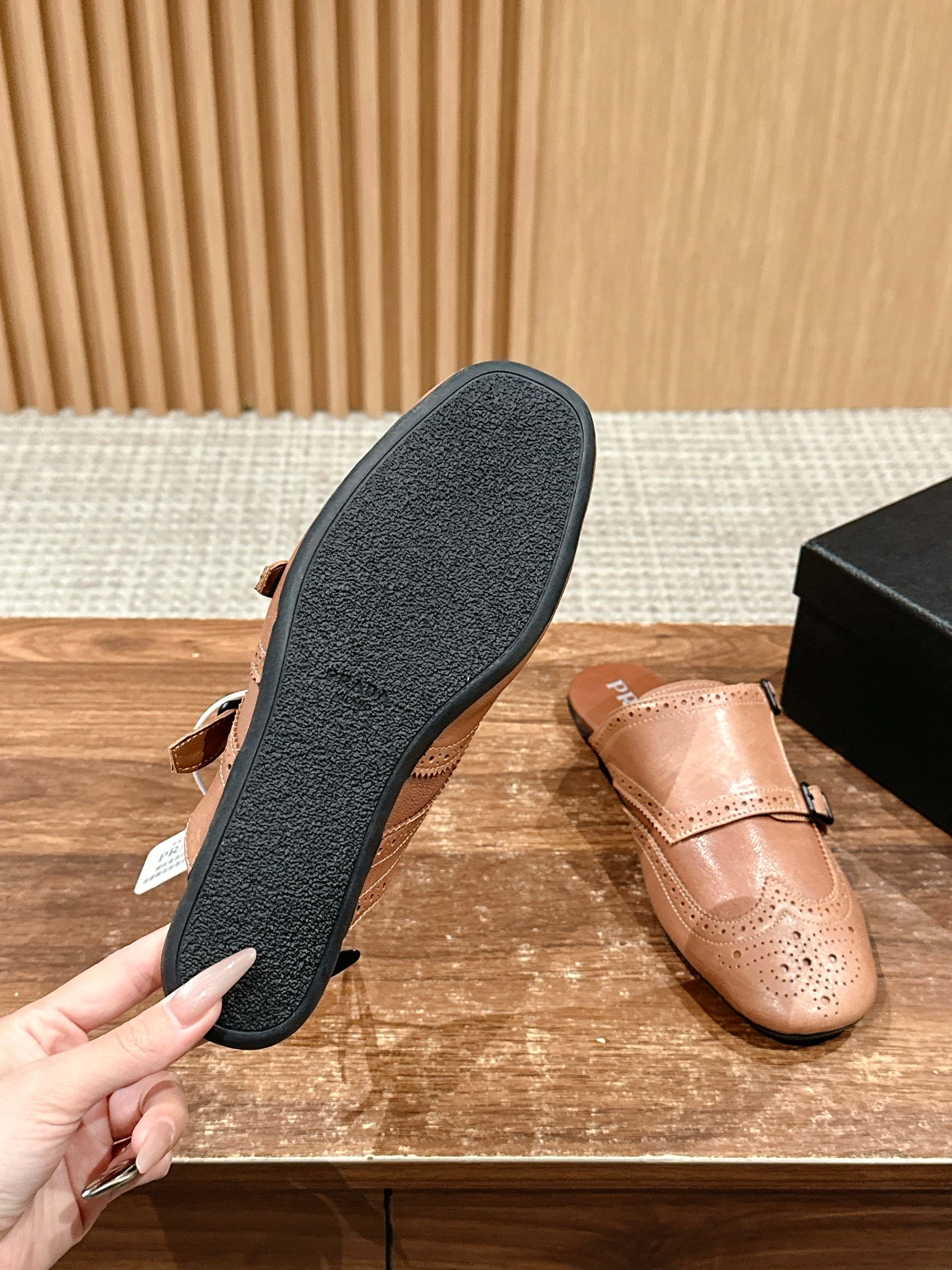 𝐏𝐑𝐀𝐃𝐀 𝟮𝟬𝟮𝟱/𝐬𝐬普拉达走秀款复古流苏鞋布洛克雕花一脚蹬半拖